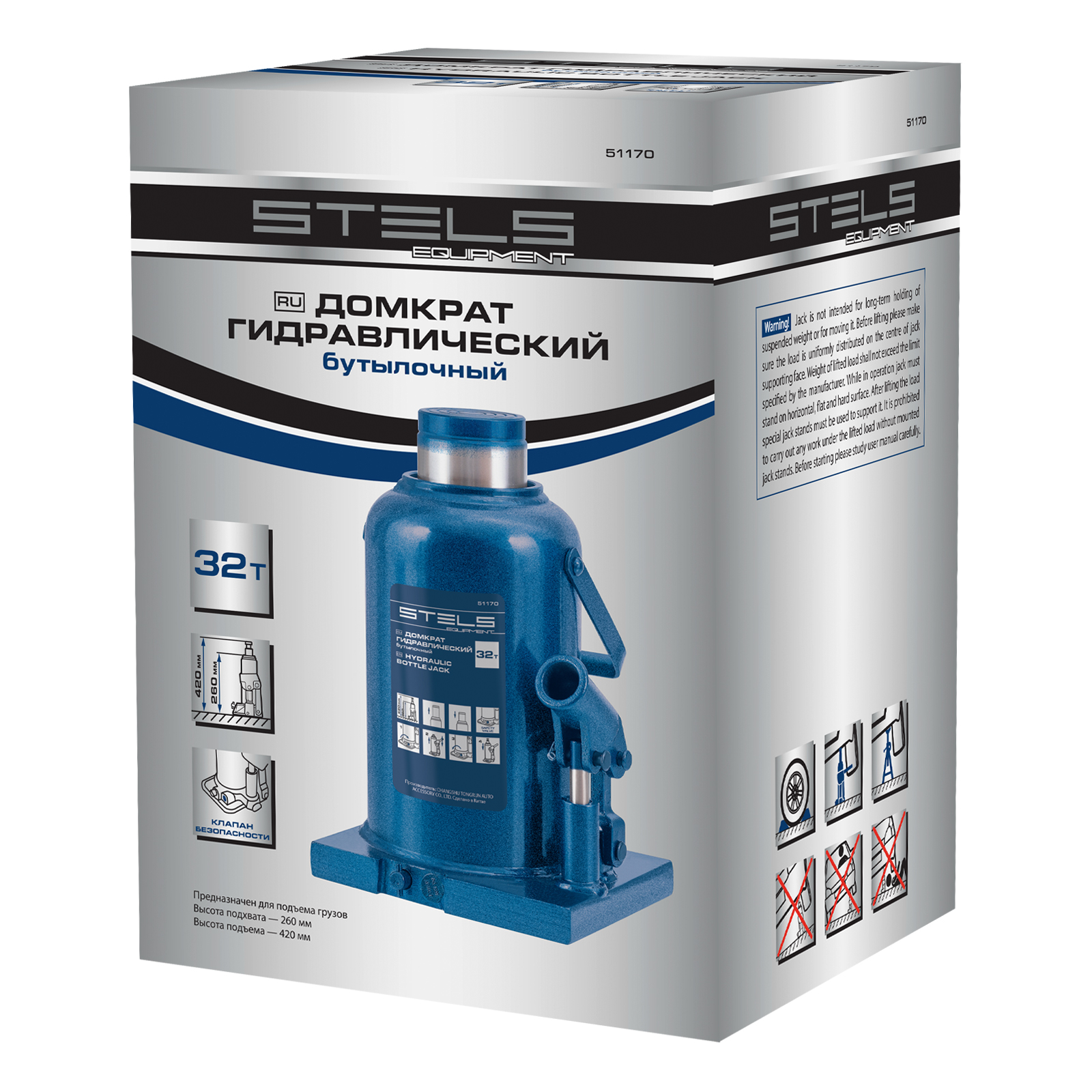 Гидравлический бутылочный домкрат Stels 51170 применяется для быстрого поднятия грузов весом до 32 т на высоту 260-3420 мм. Оптимален для автомобилей с большим клиренсом. Домкрат будет полезен автолюбителям и профессионалам для ремонта транспортного средства.