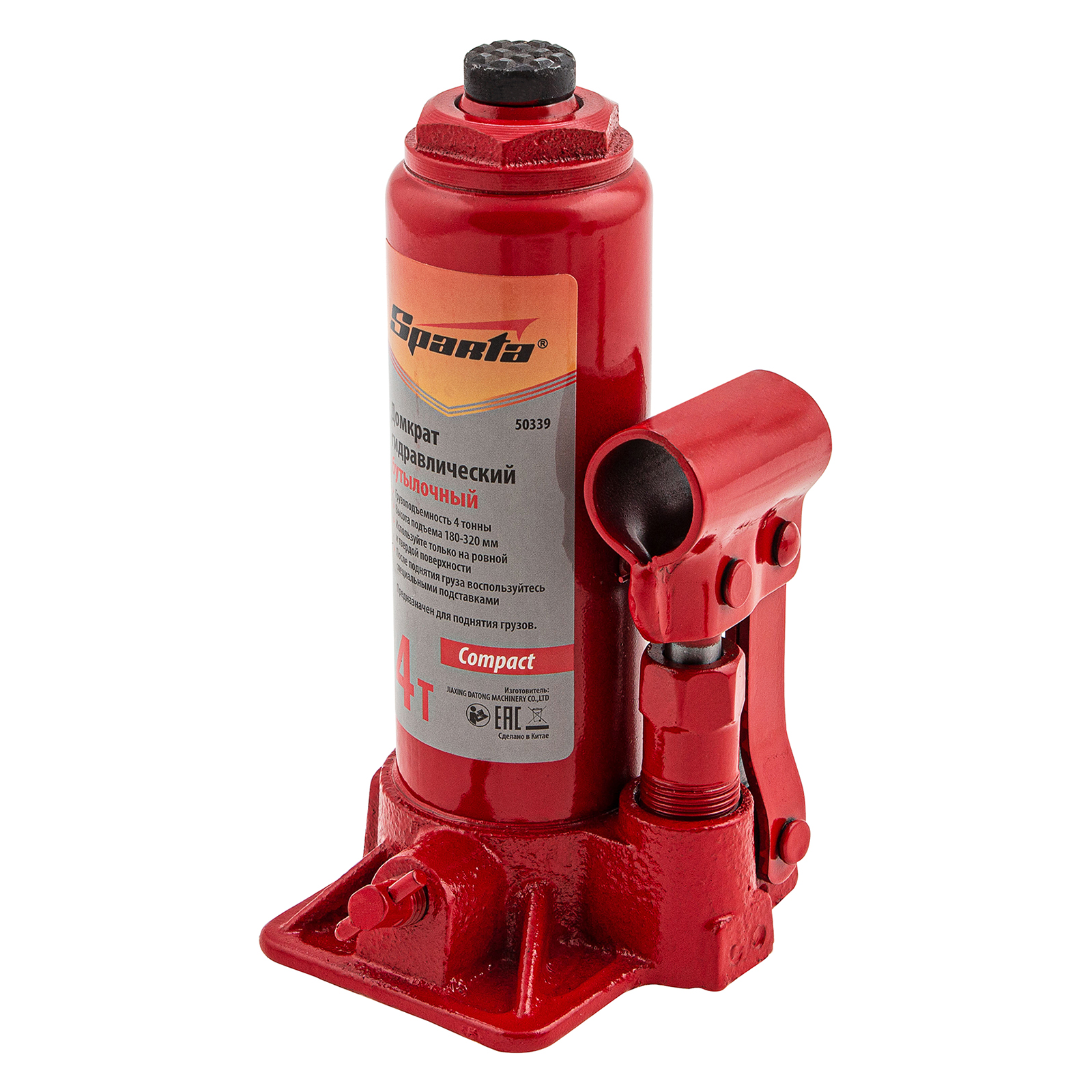 Домкрат гидравлический бутылочный, 4 т, h подъема 180–320 мм Sparta Compact в Воронеже