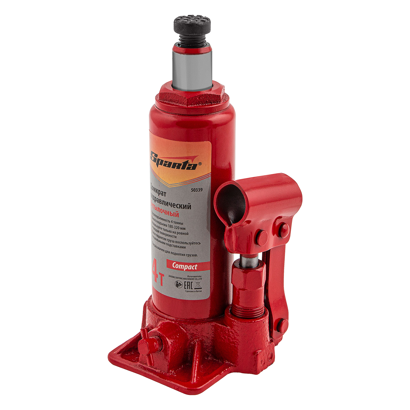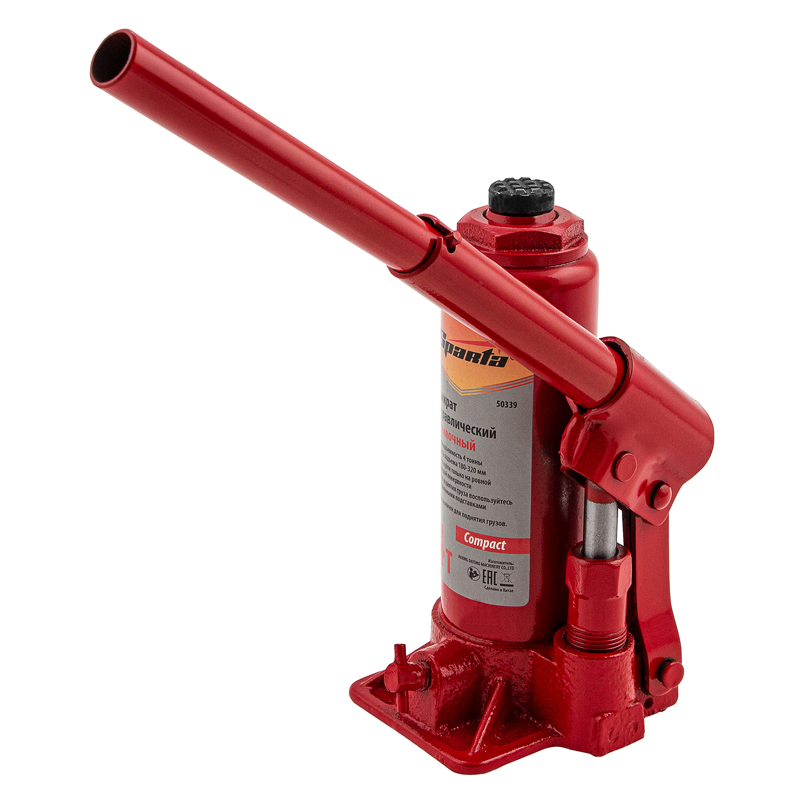 Гидравлический бутылочный домкрат Sparta Compact 50339 предназначен для подъема грузов весом до 4 т на высоту от 180 до 320 мм. Не требует больших усилий от пользователя и значительно облегчает рабочий процесс. Домкрат будет полезен при техобслуживании машины в автосервисе или в гараже.