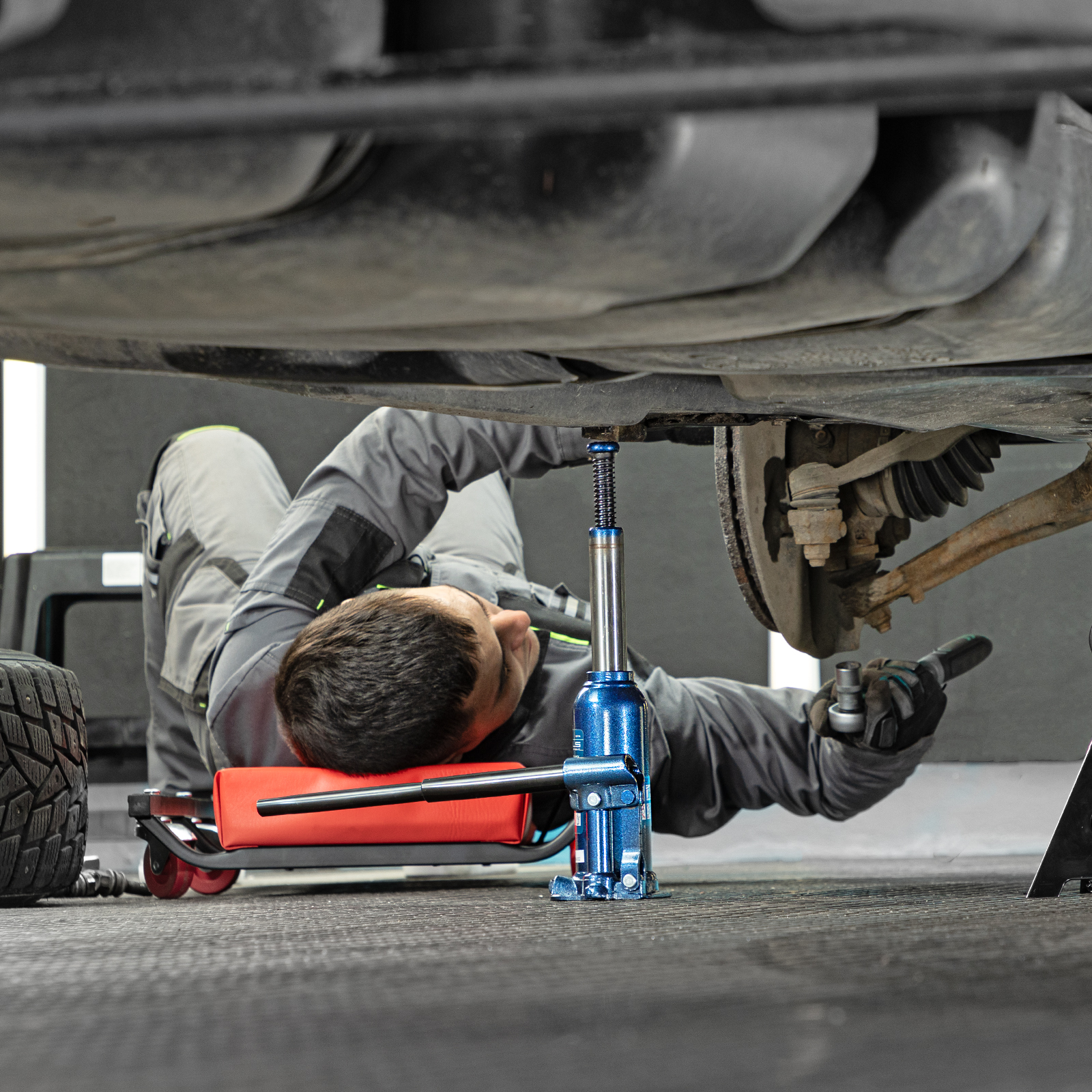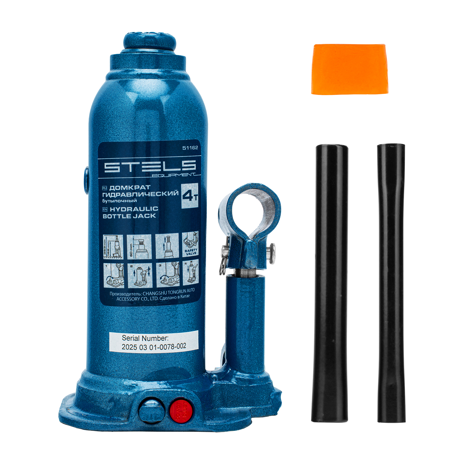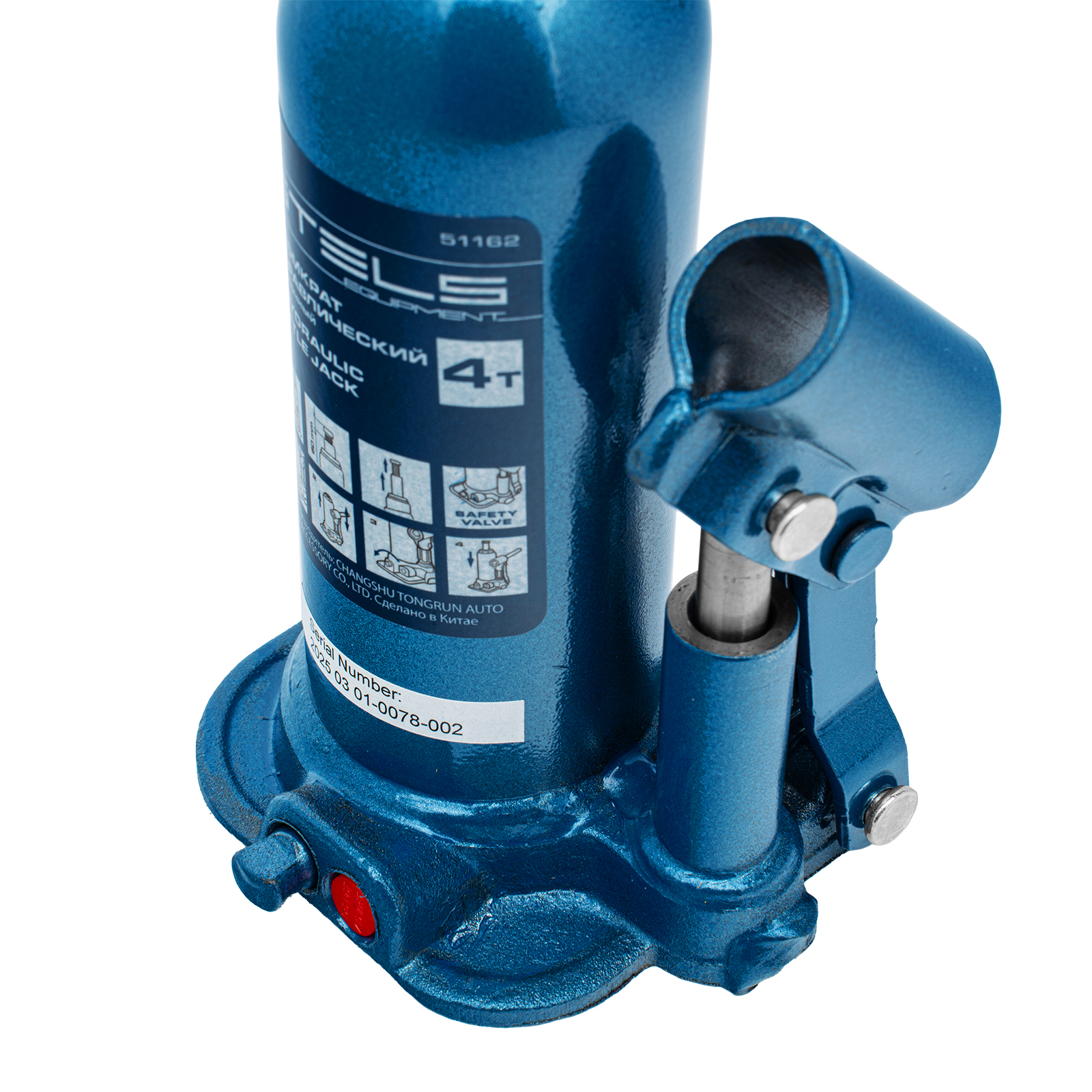 - Безопасная эксплуатация — благодаря предохранительному клапану домкрат не поднимает грузы тяжелее 4000 кг.