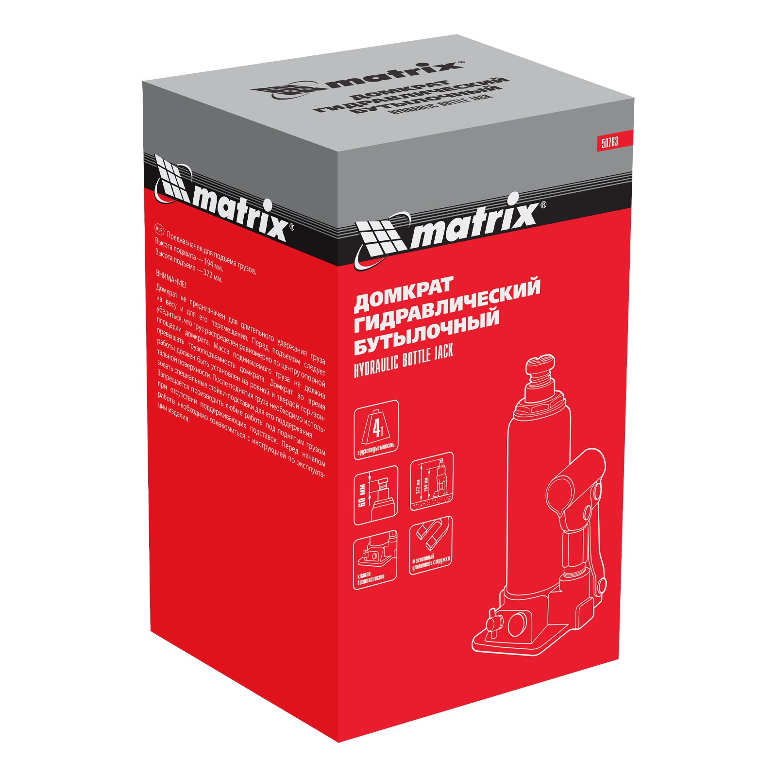 Домкрат гидравлический бутылочный, 4 т, h подъема 194-372 мм Matrix в Воронеже