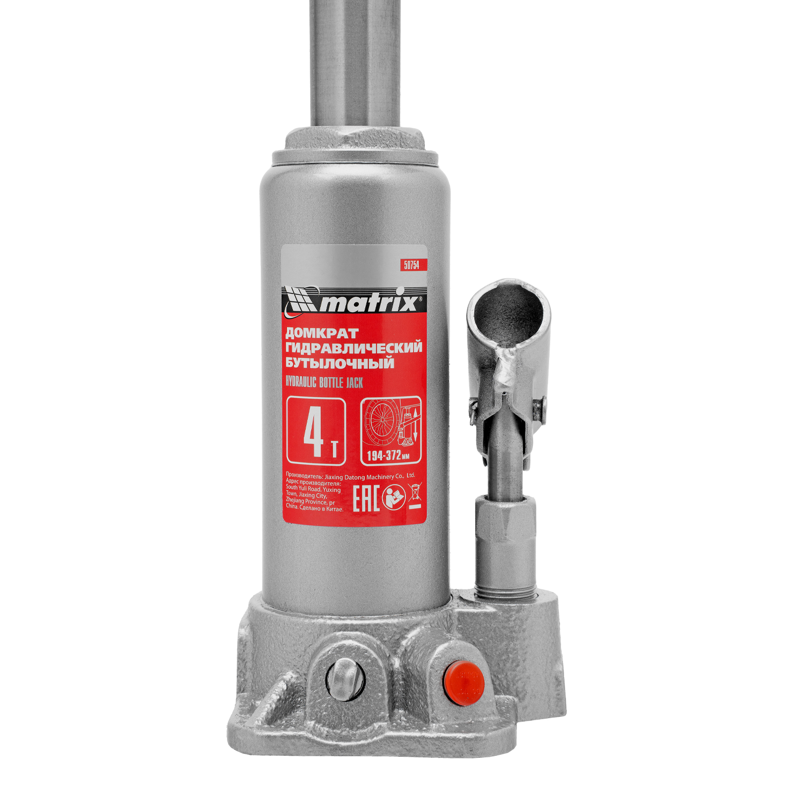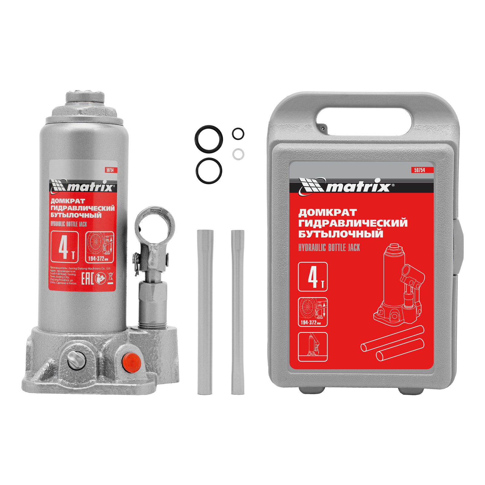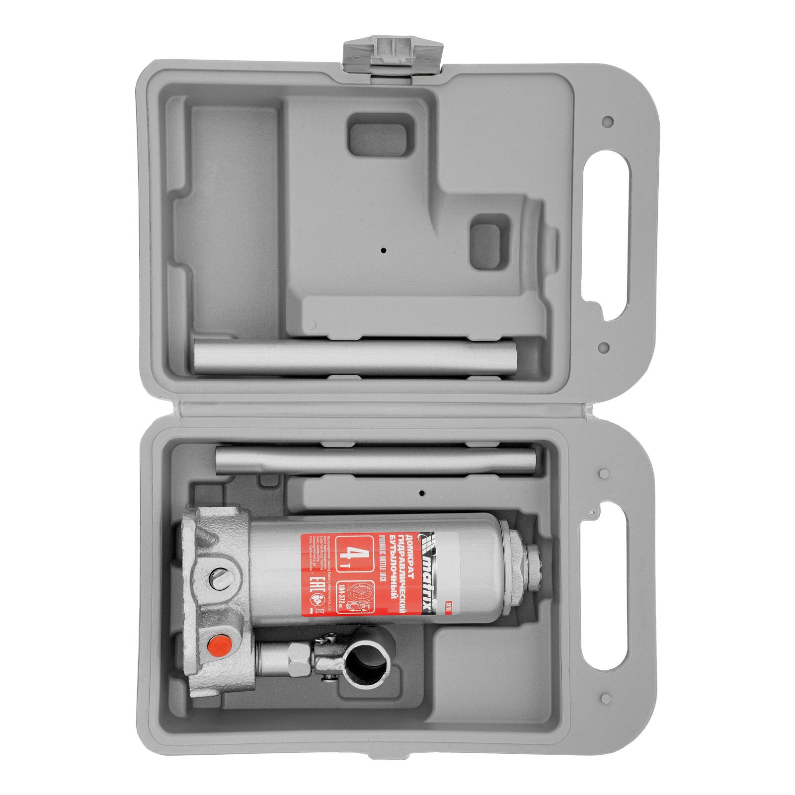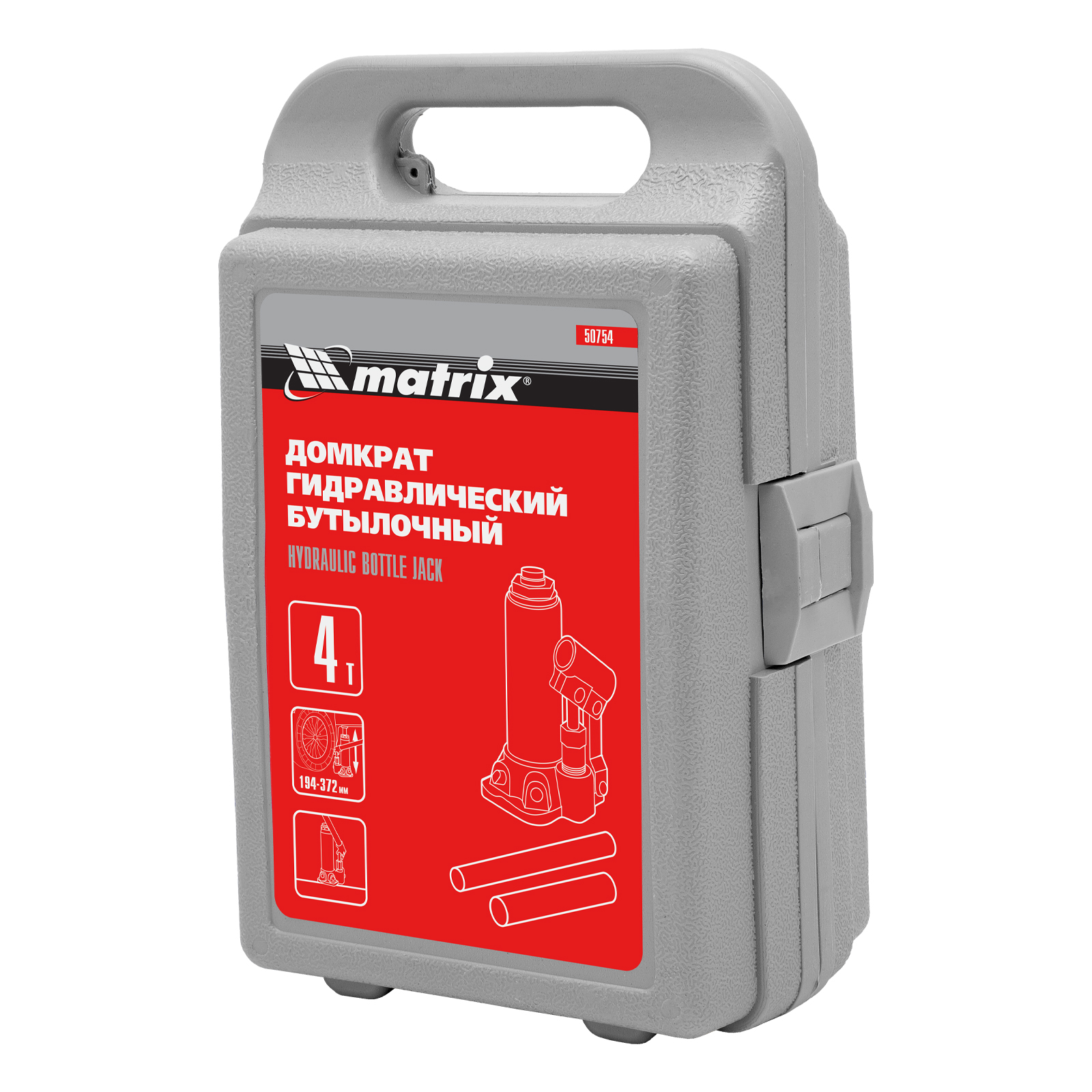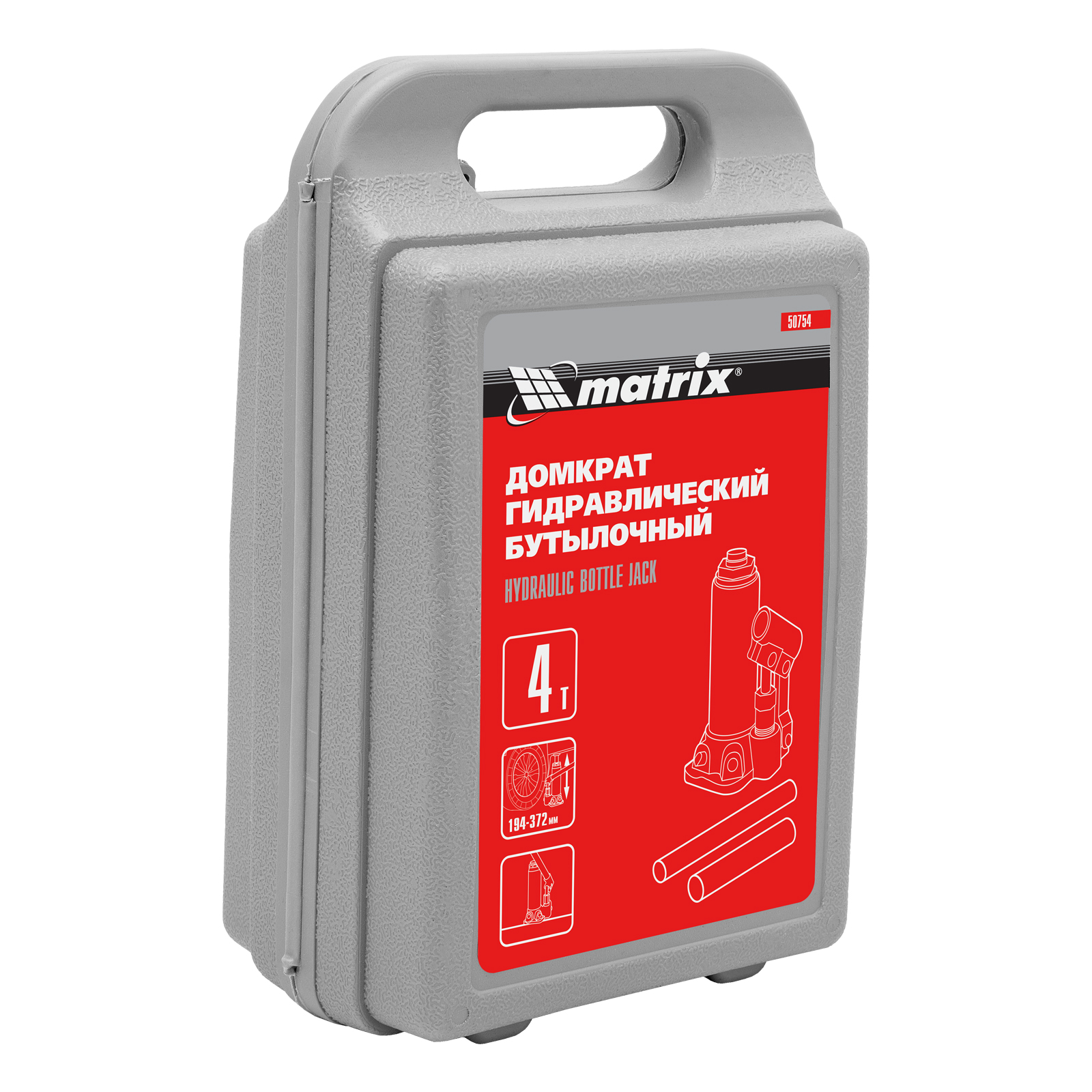Домкрат гидравлический бутылочный, 4 т, высота подъема 194-372 мм, в пластиковый кейсе Matrix в Воронеже