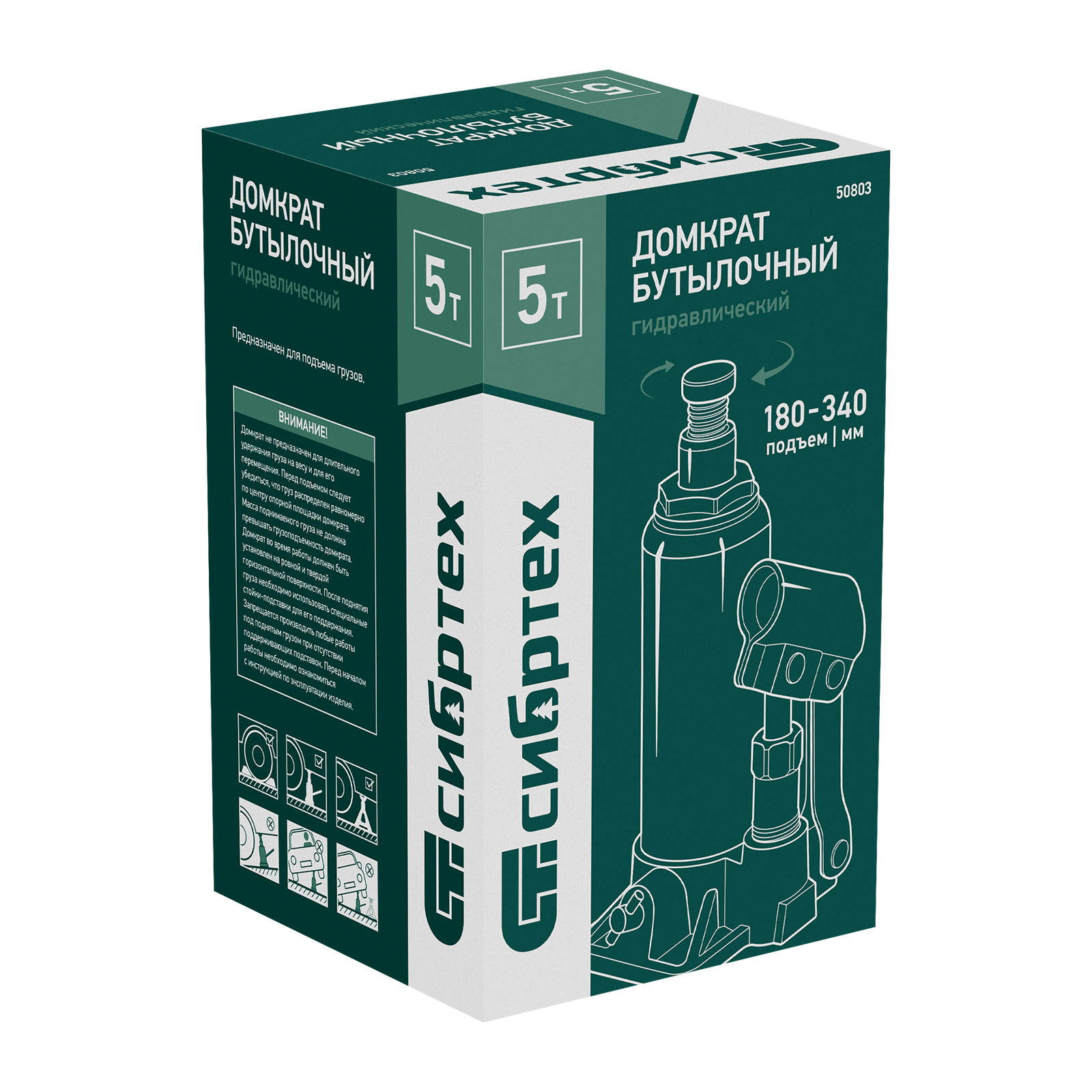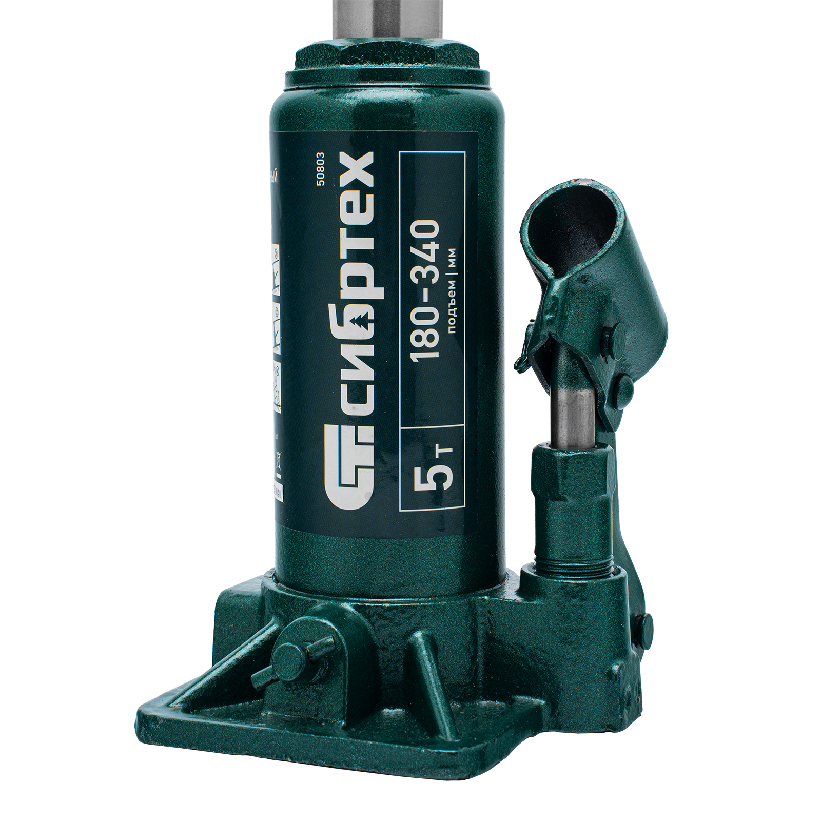 Домкрат гидравлический бутылочный Сибртех 50803 предназначен для подъема грузов массой до 5 т на высоту от 180 до 340 мм. Не требует больших усилий от пользователя и значительно облегчает рабочий процесс. Домкрат будет полезен при проведении техобслуживания машины в автосервисе или гараже.
