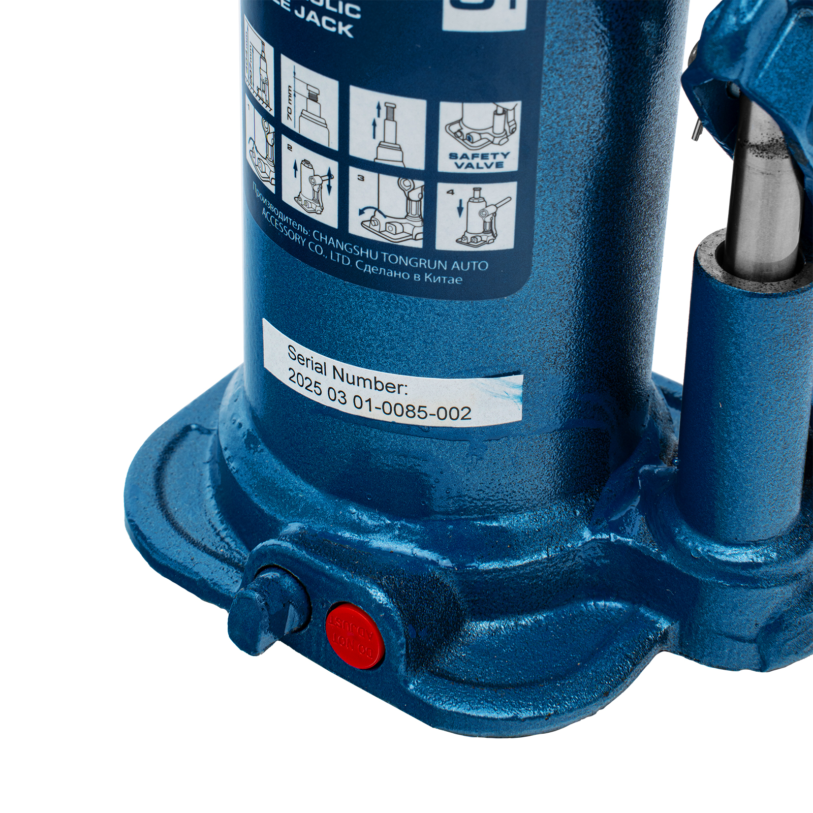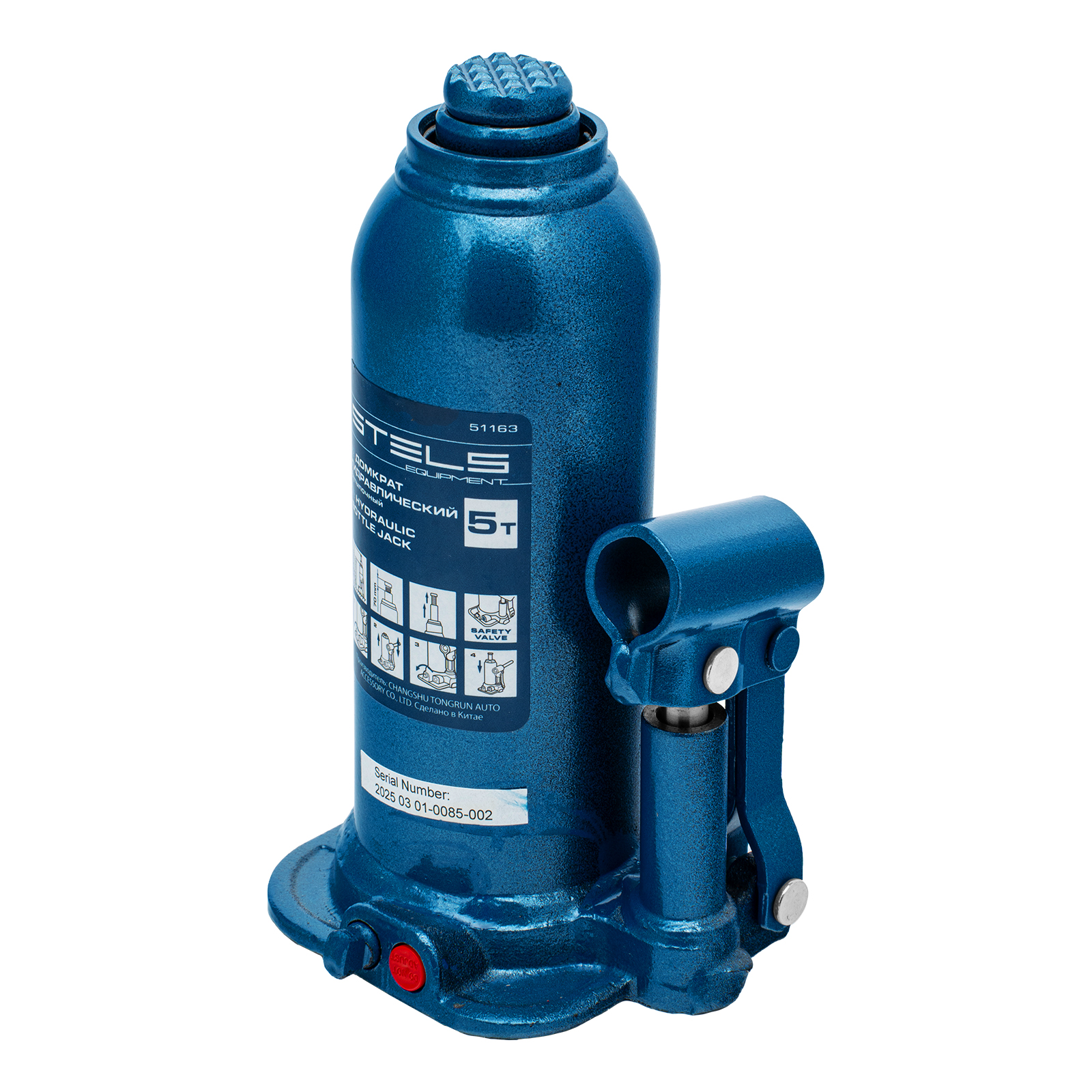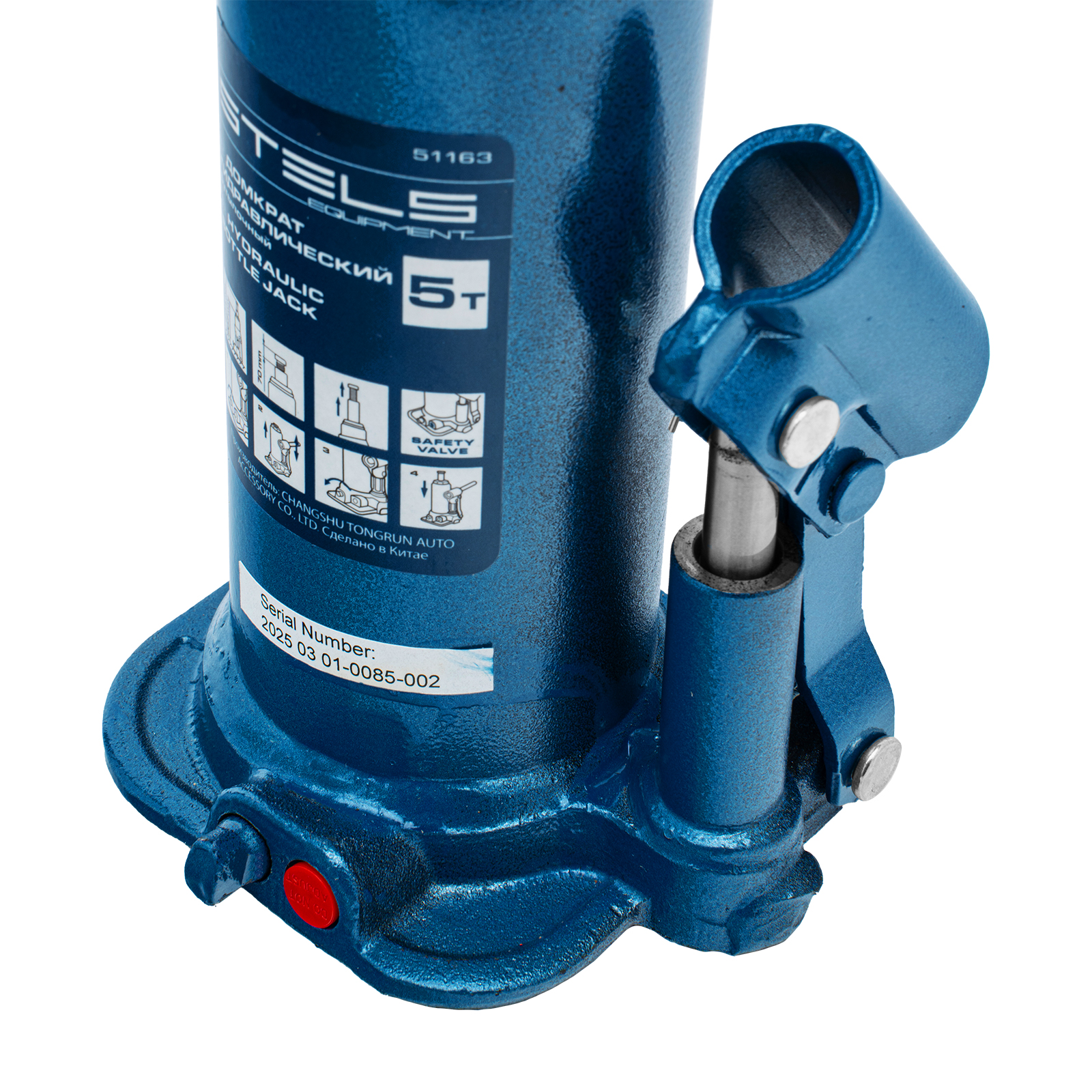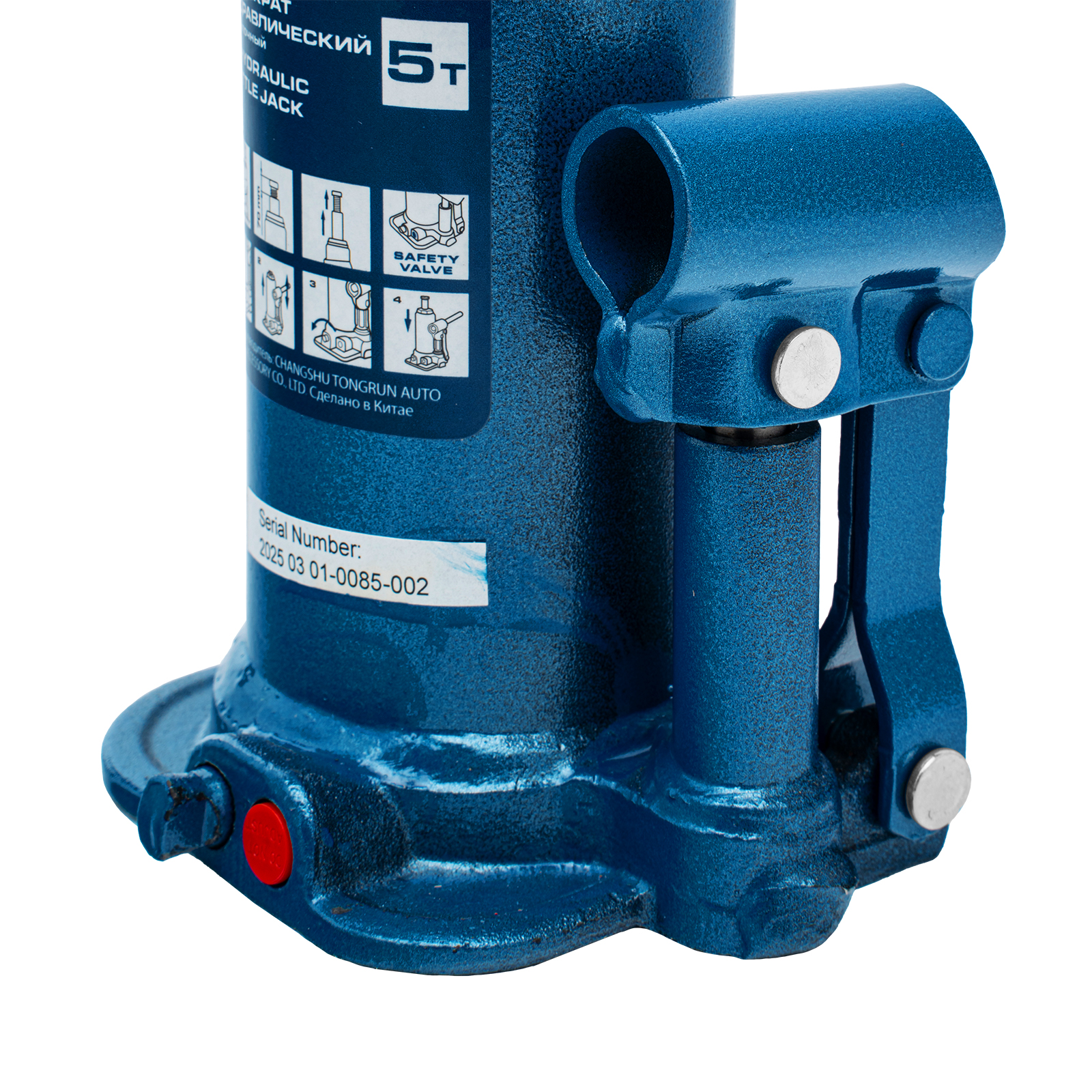 - Безопасная эксплуатация — благодаря предохранительному клапану домкрат не поднимает грузы тяжелее 5000 кг.