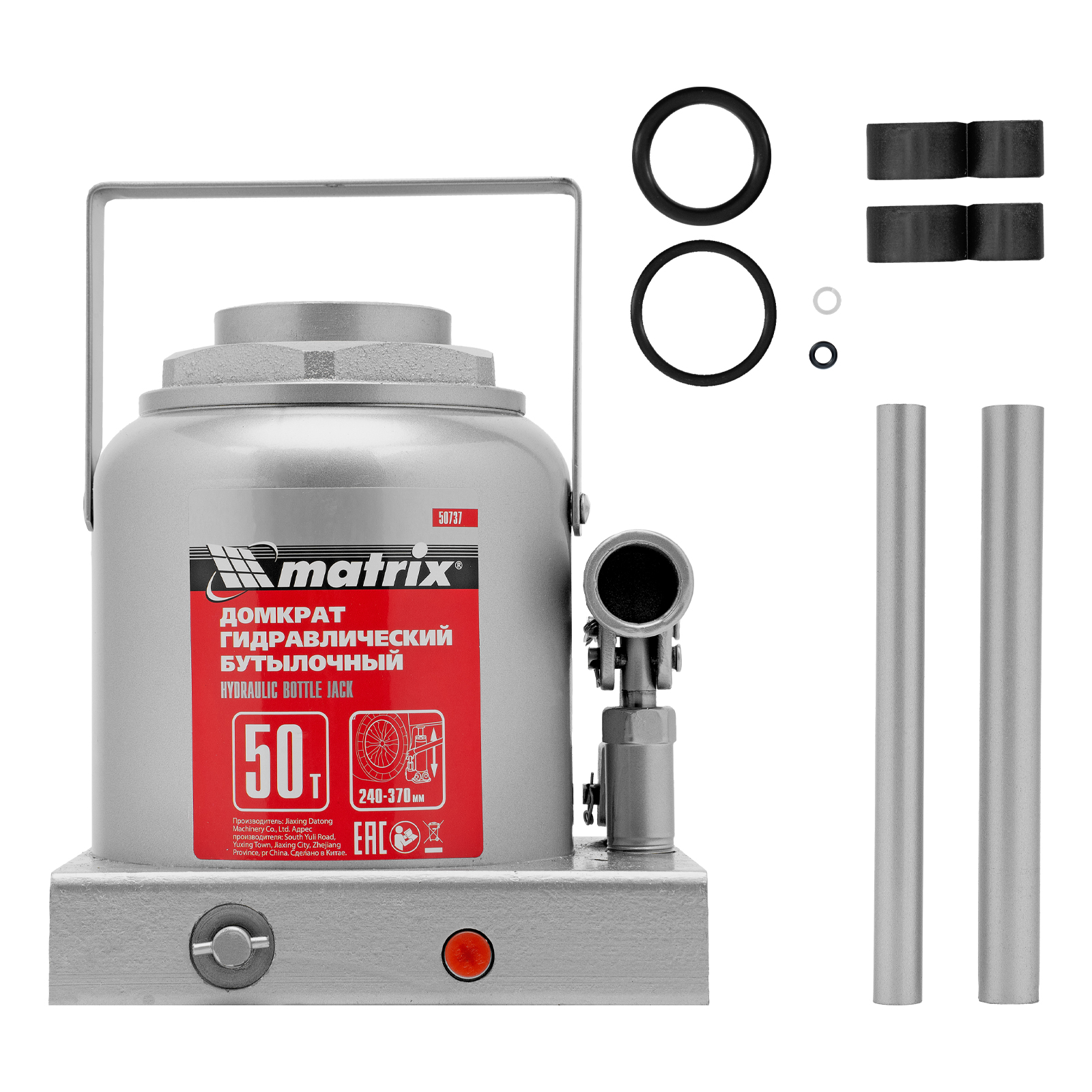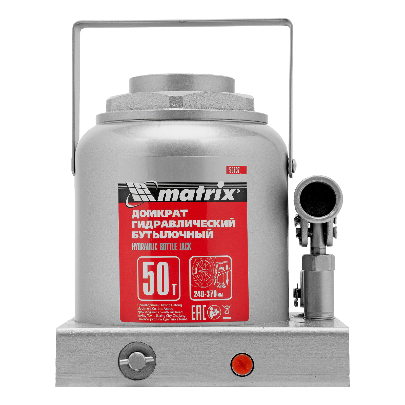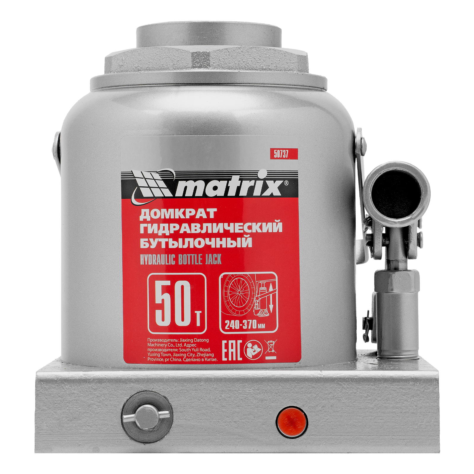 Домкрат гидравлический бутылочный, 50 т, высота подъема 240-370 мм Matrix в Воронеже