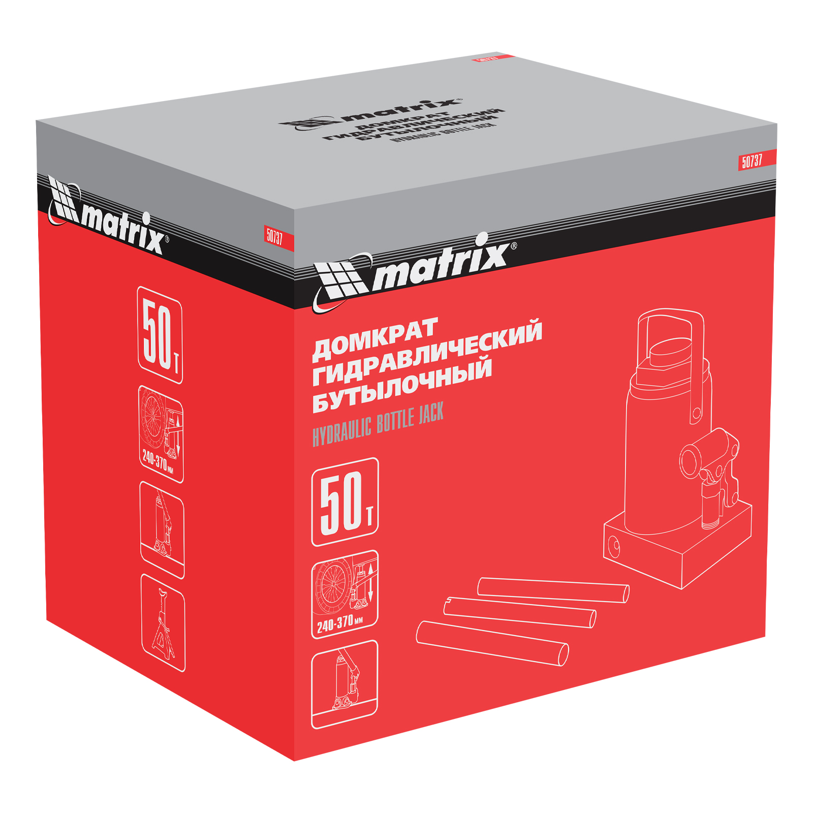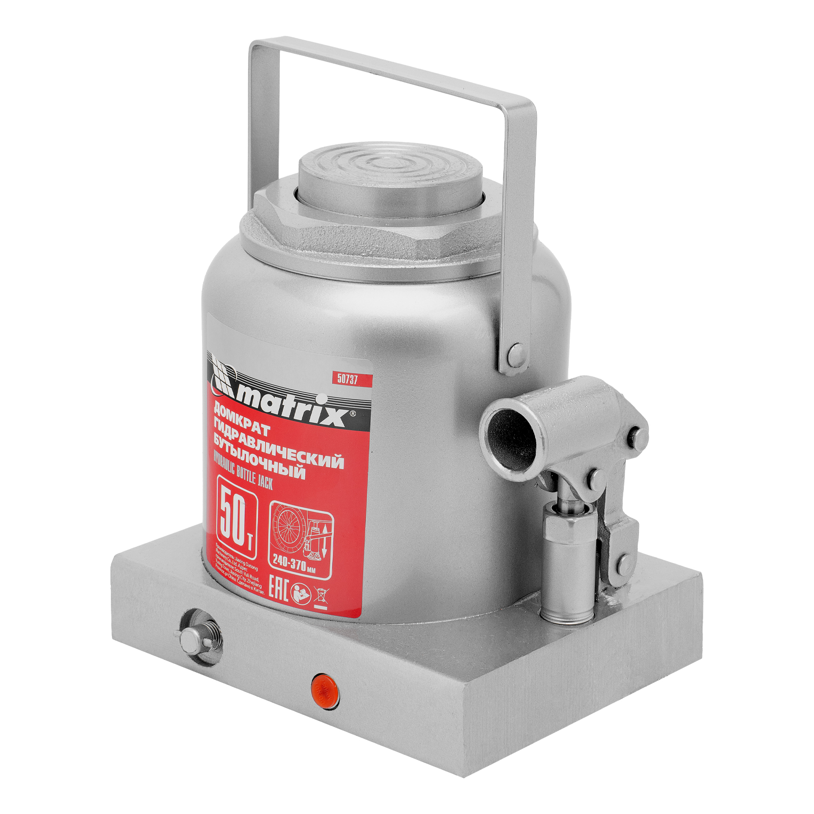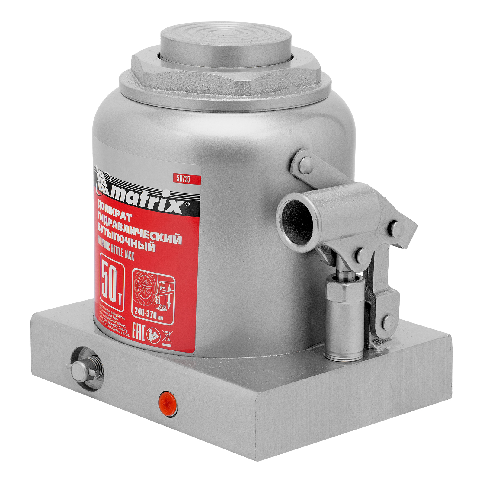 Домкрат гидравлический бутылочный Matrix 50737 используется для поднятия грузов массой до 50 т на высоту 240-370 мм. Подходит для автомобилей с высоким клиренсом. Домкрат будет полезен автолюбителям в гараже и дороге, а также сотрудникам СТО.