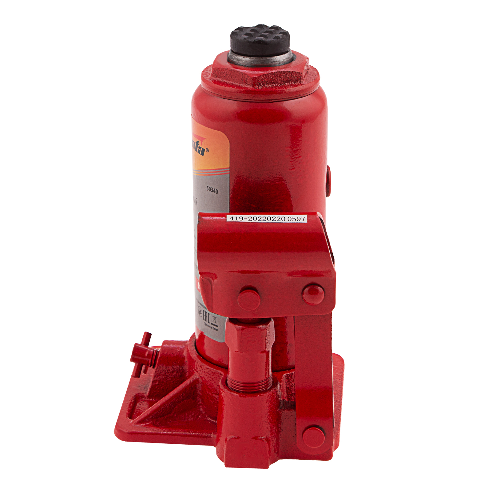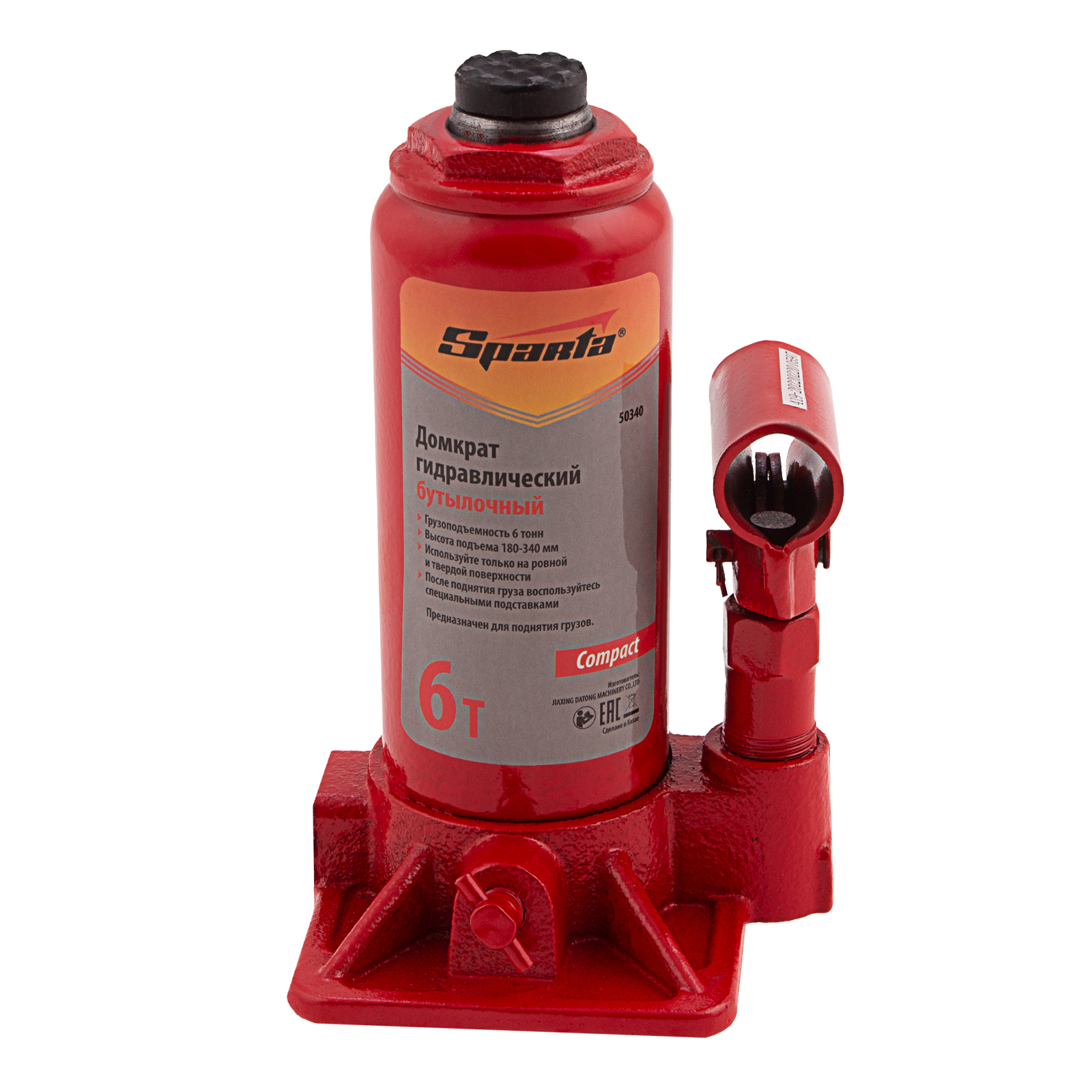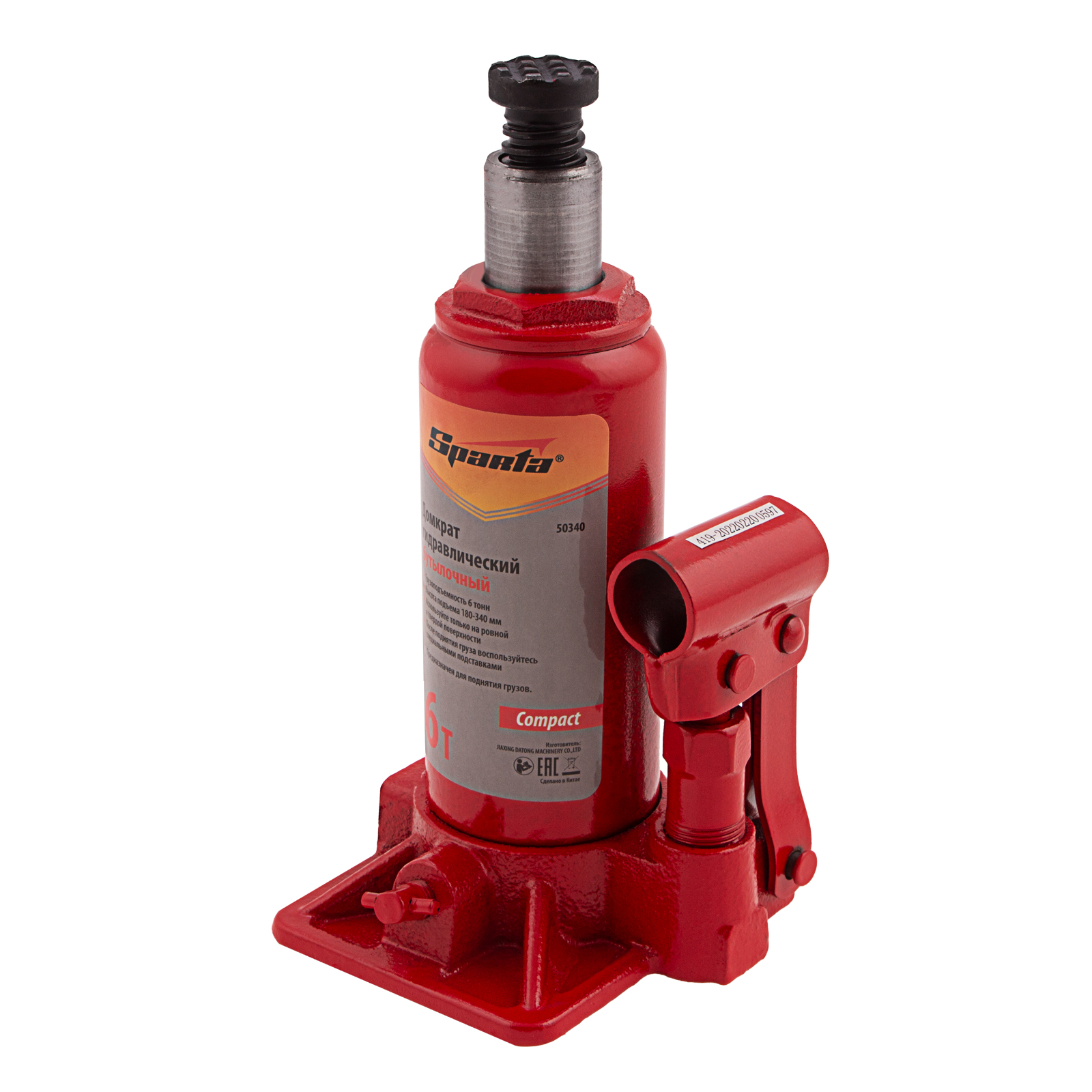 Гидравлический бутылочный домкрат Sparta Compact 50340 предназначен для подъема грузов массой до 6 т на высоту от 180 до 340 мм. Не требует больших усилий от пользователя и значительно облегчает рабочий процесс. Домкрат будет полезен при техобслуживании машины в автосервисе или в гараже.