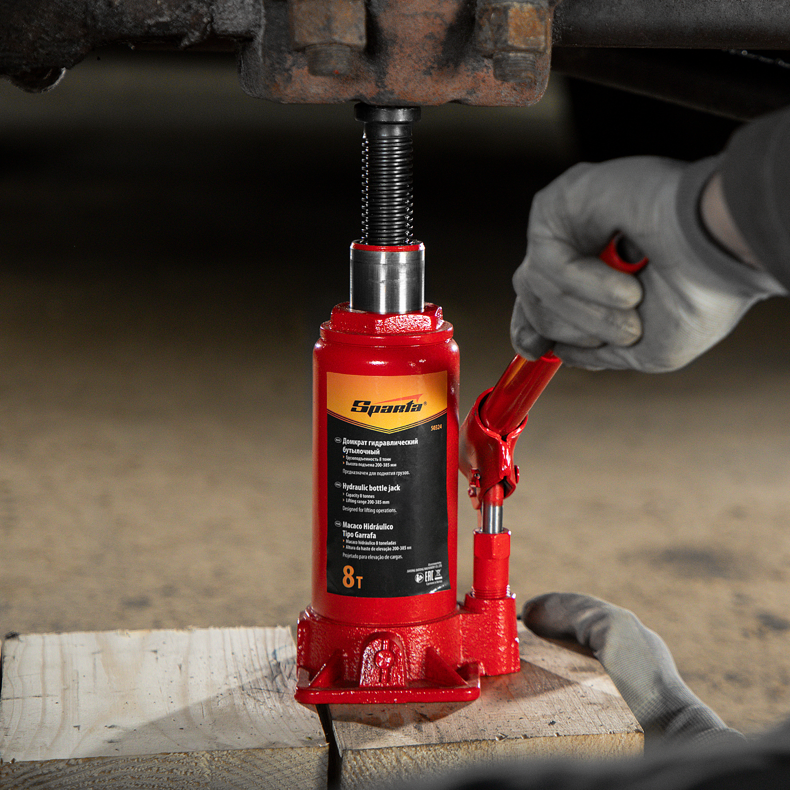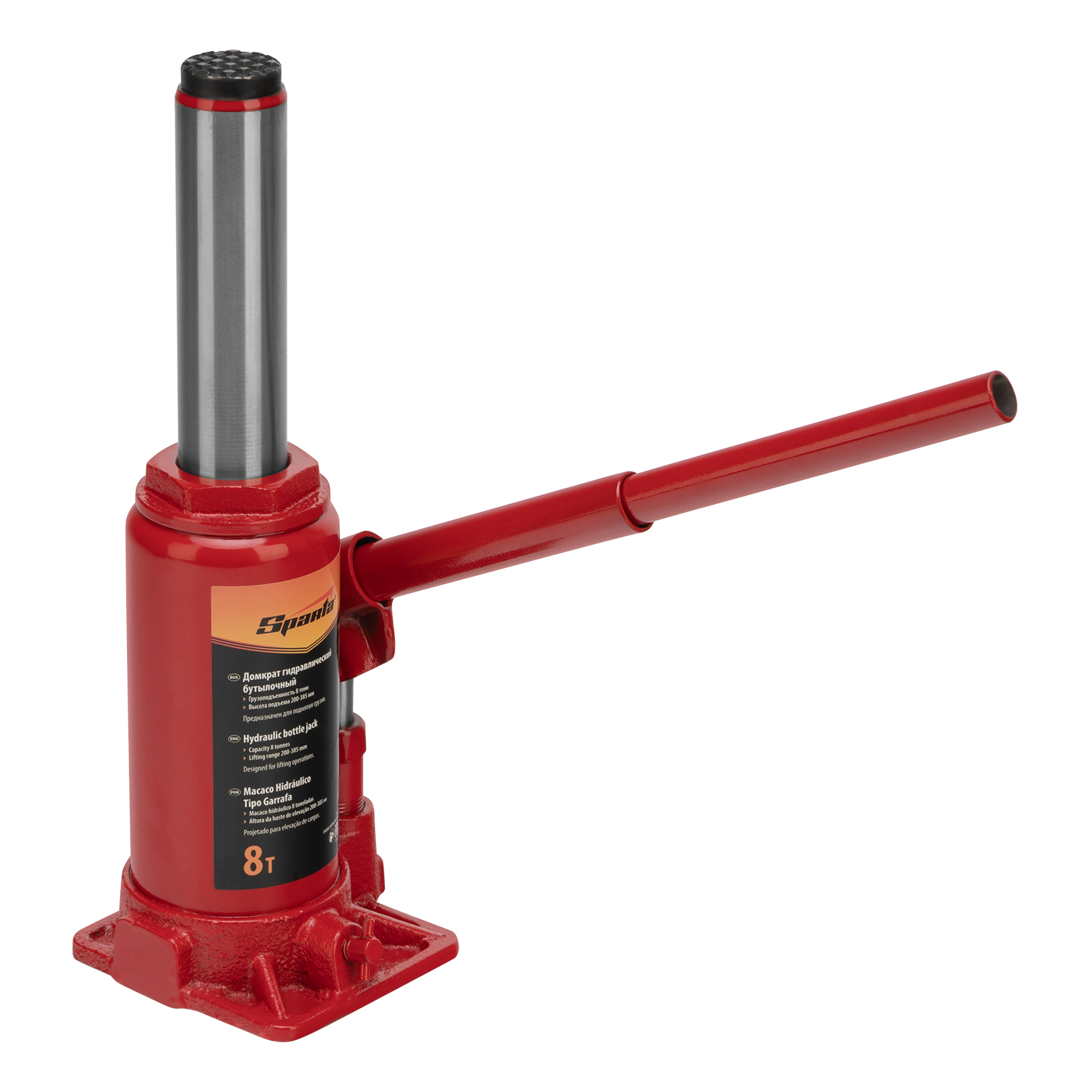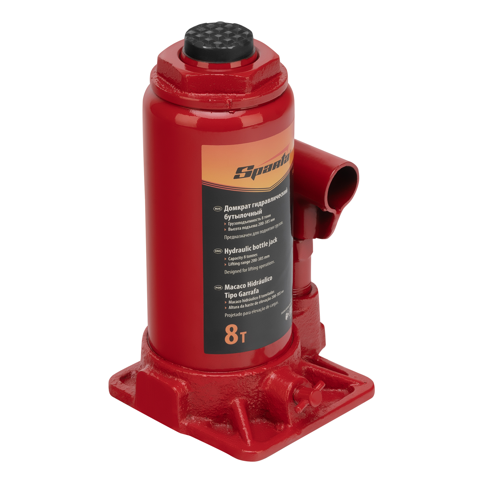 Гидравлический бутылочный домкрат Sparta 50324 рассчитан на подъем грузов весом до 8 т на высоту от 200 до 385 мм. Он пригодится как автолюбителям в гараже, так и профессиональным мастерам в автосервисах. Домкрат обеспечивает плавный подъем груза без особых усилий со стороны пользователя.