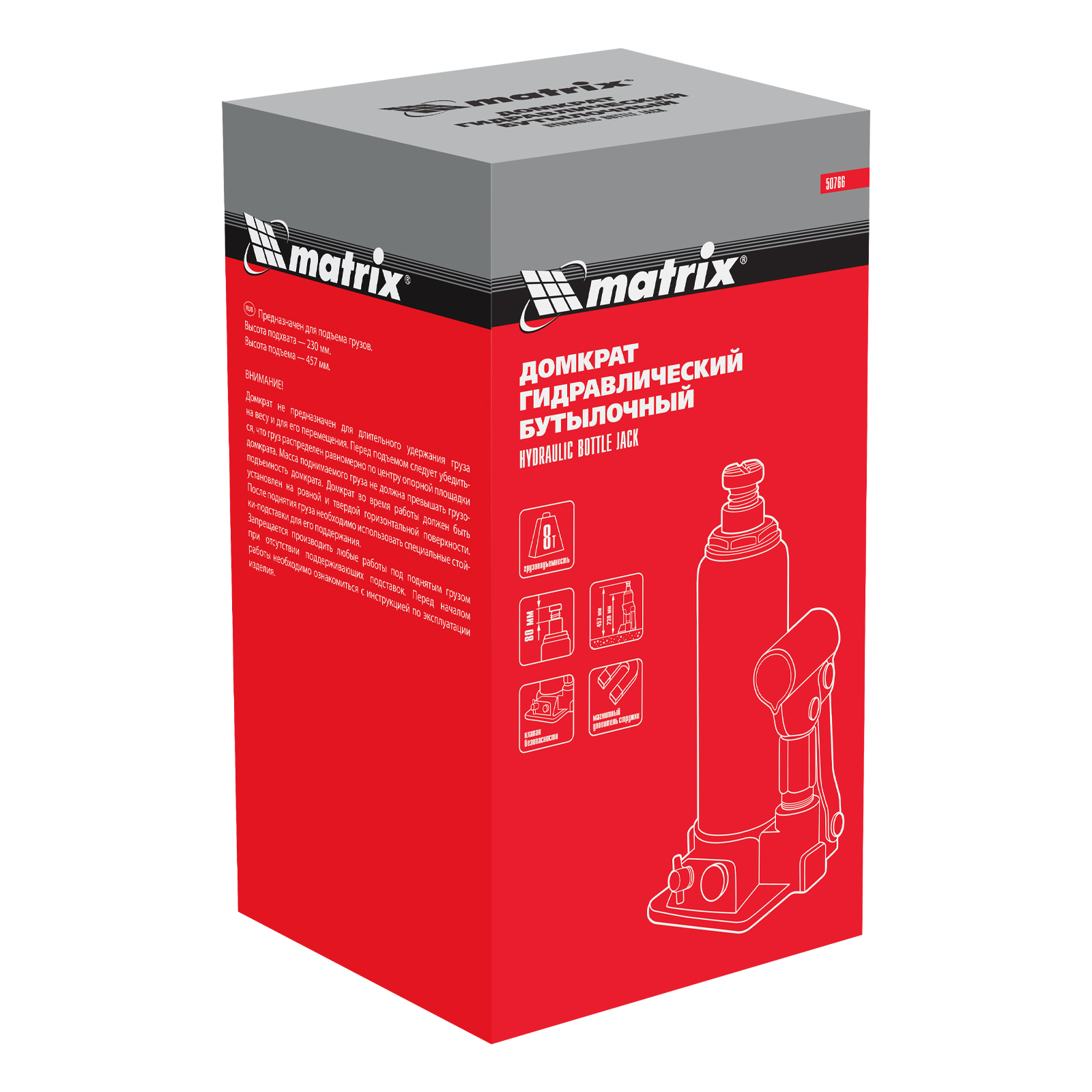 Домкрат гидравлический бутылочный, 8 т, h подъема 230-457 мм Matrix в Воронеже