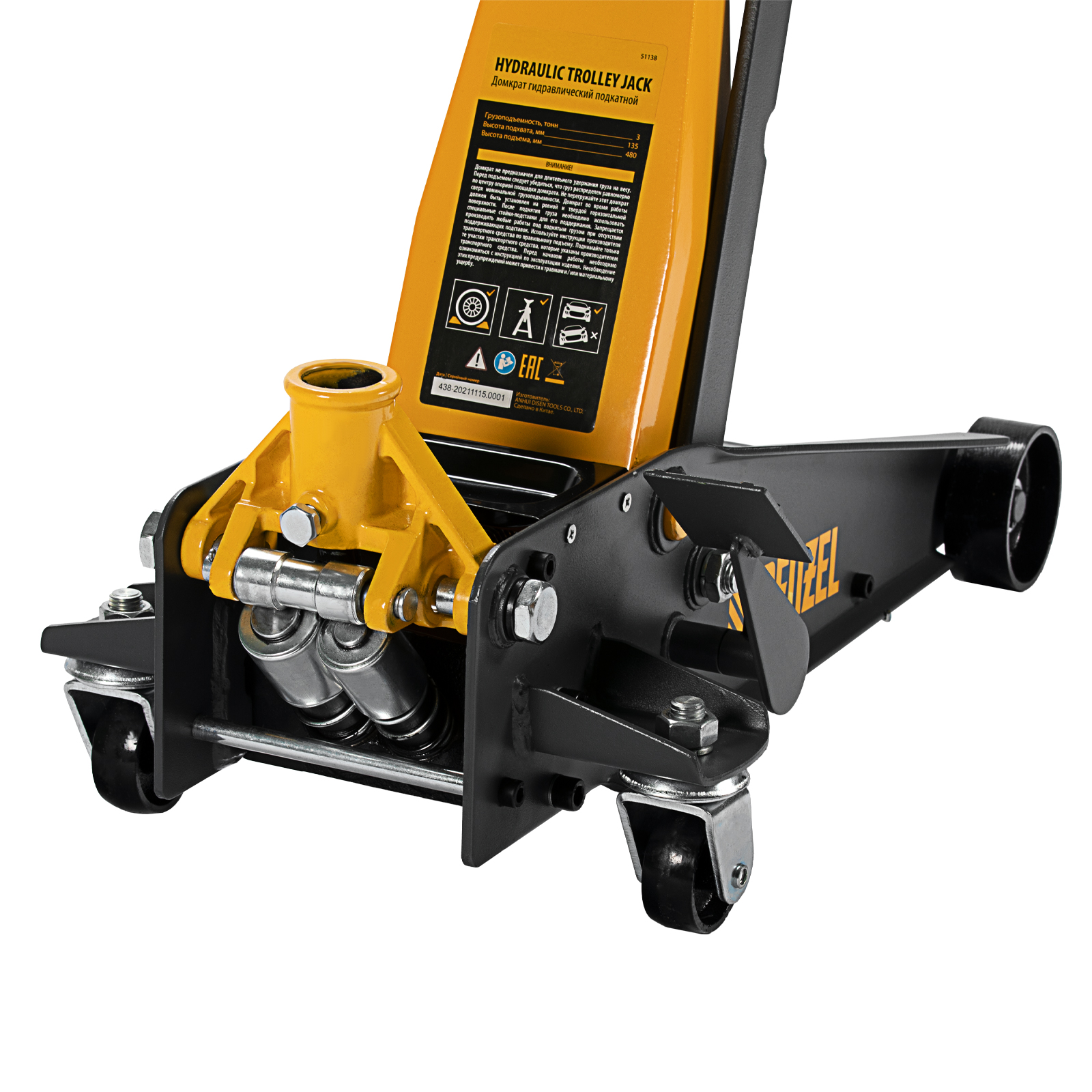 Домкрат гидравлический подкатной 3 т, с фиксатором, быстрый подъем, 135-480 мм, профессиональный Denzel в Воронеже