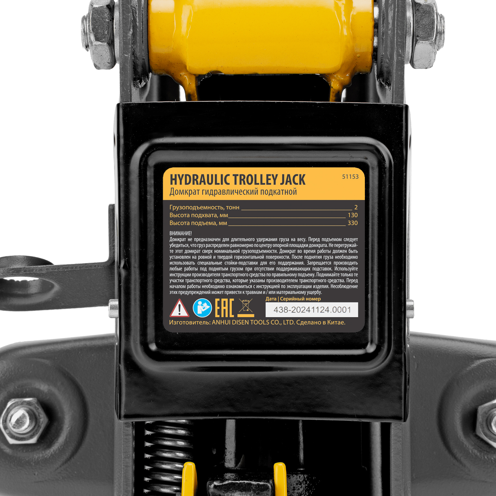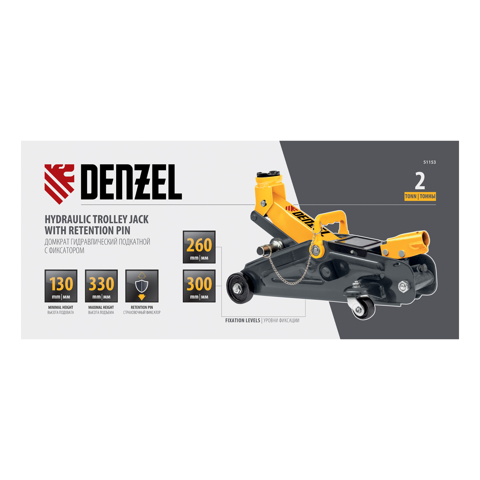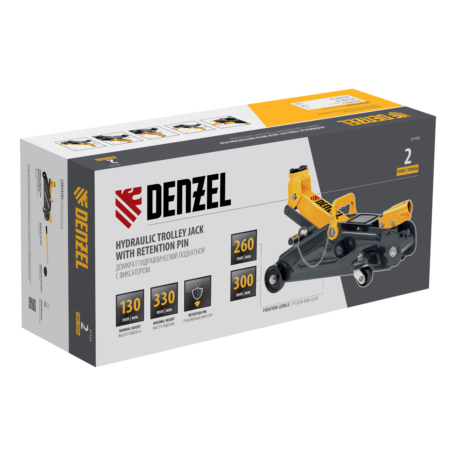 Домкрат гидравлический подкатной с фиксатором, 2 т, 130-330 мм Denzel в Воронеже