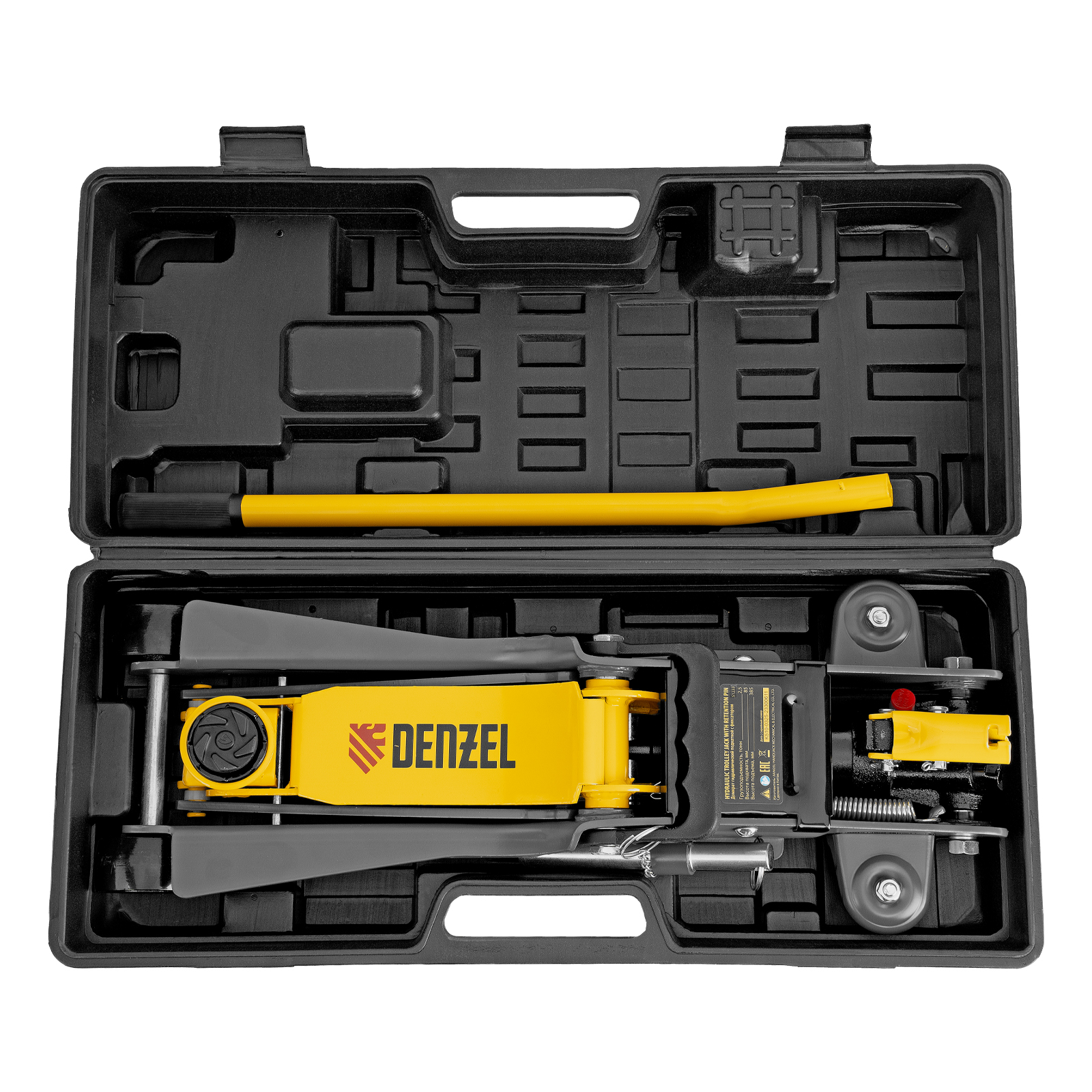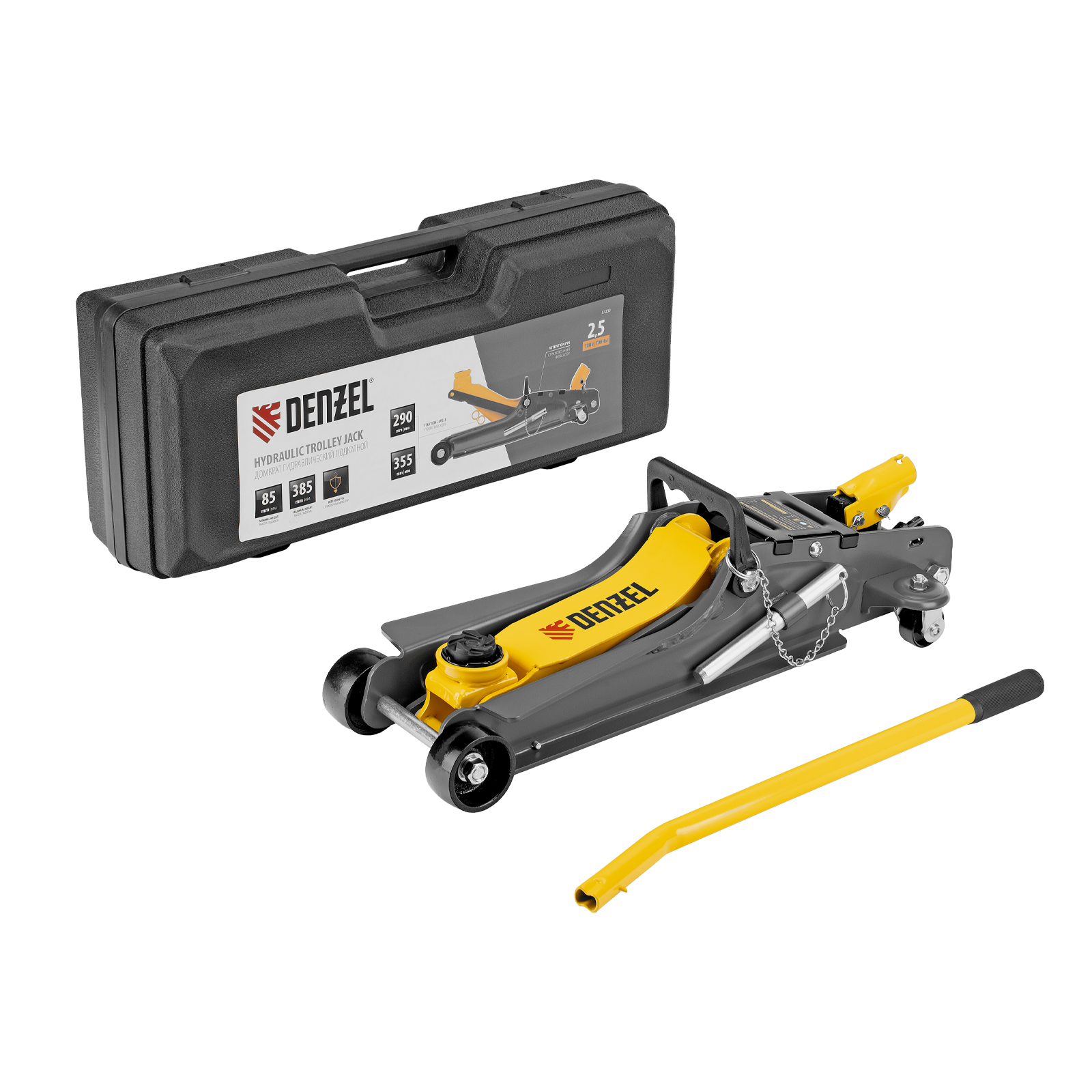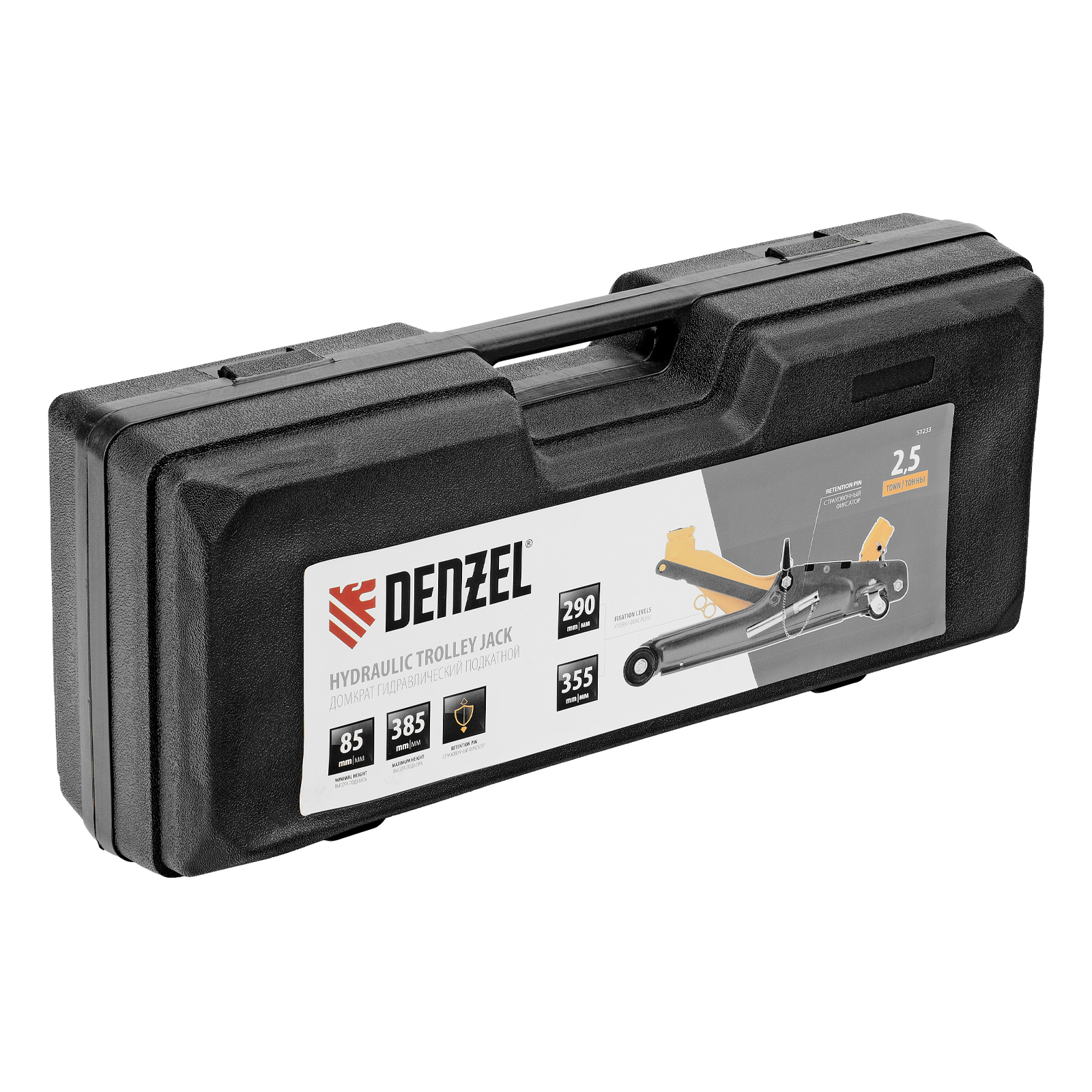 Домкрат гидравлический подкатной с фиксатором, 2,5 т, 85-385 мм, в пласт. кейсе Denzel в Воронеже