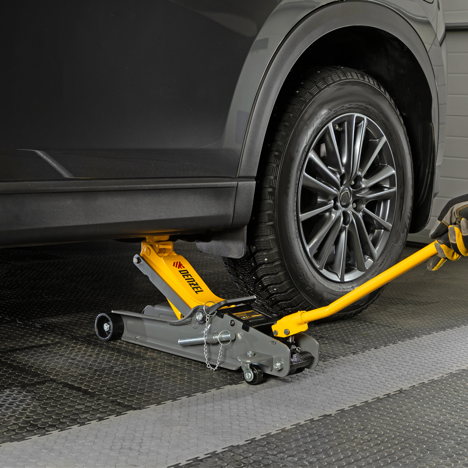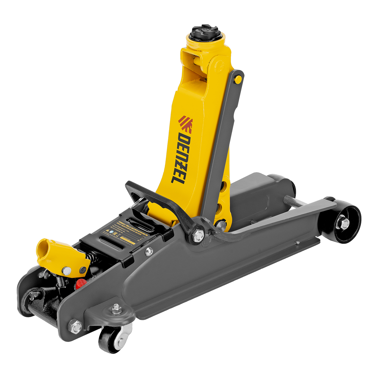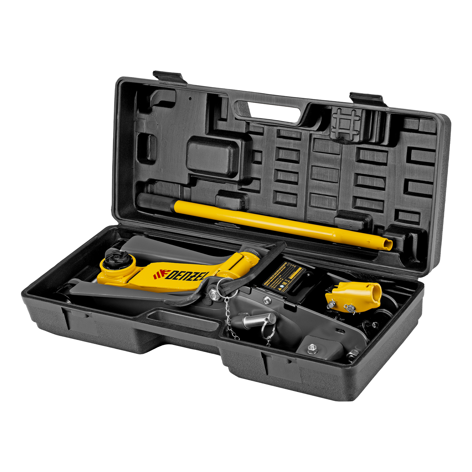 Домкрат гидравлический подкатной с фиксатором, 2,5 т, 85-385 мм, в пласт. кейсе Denzel в Воронеже