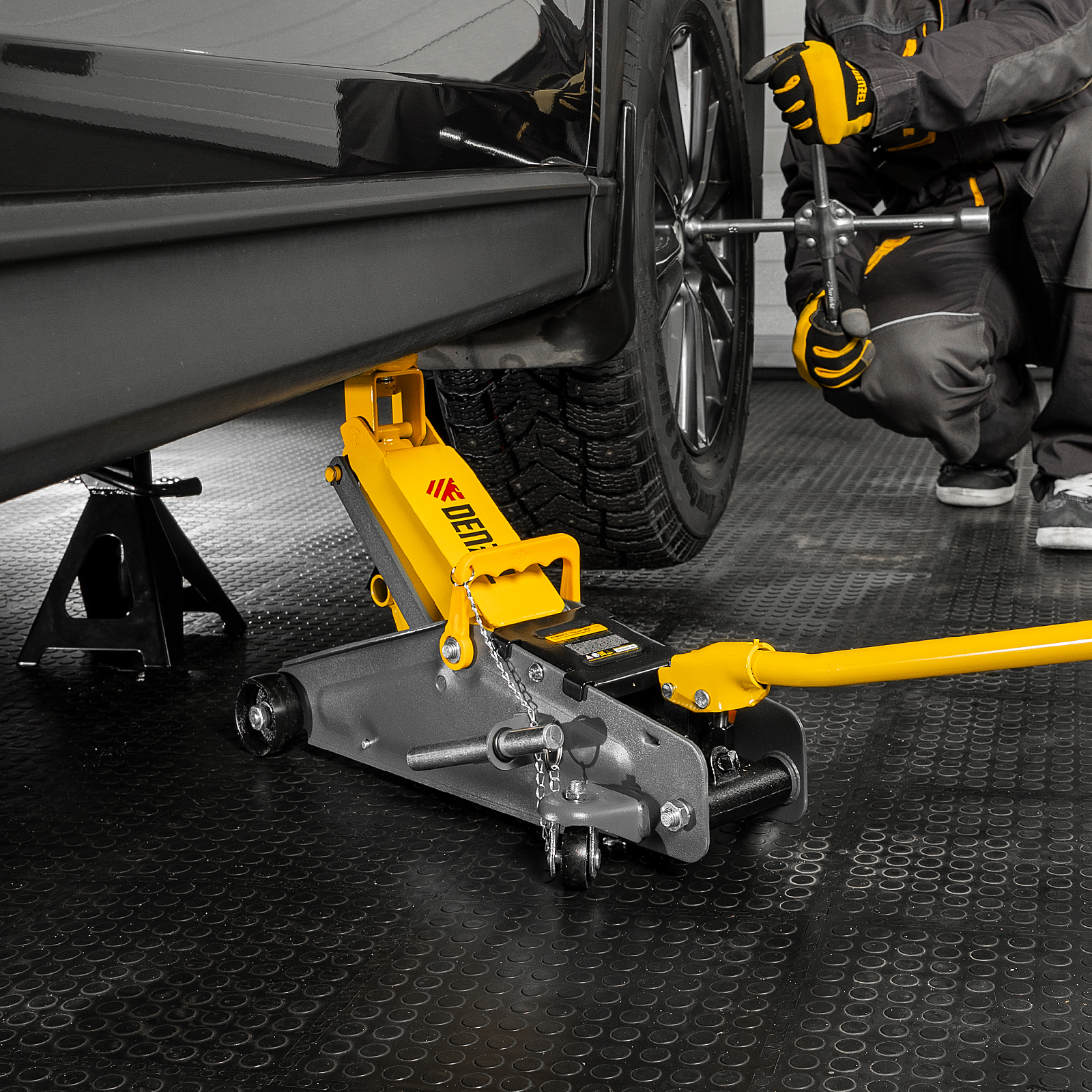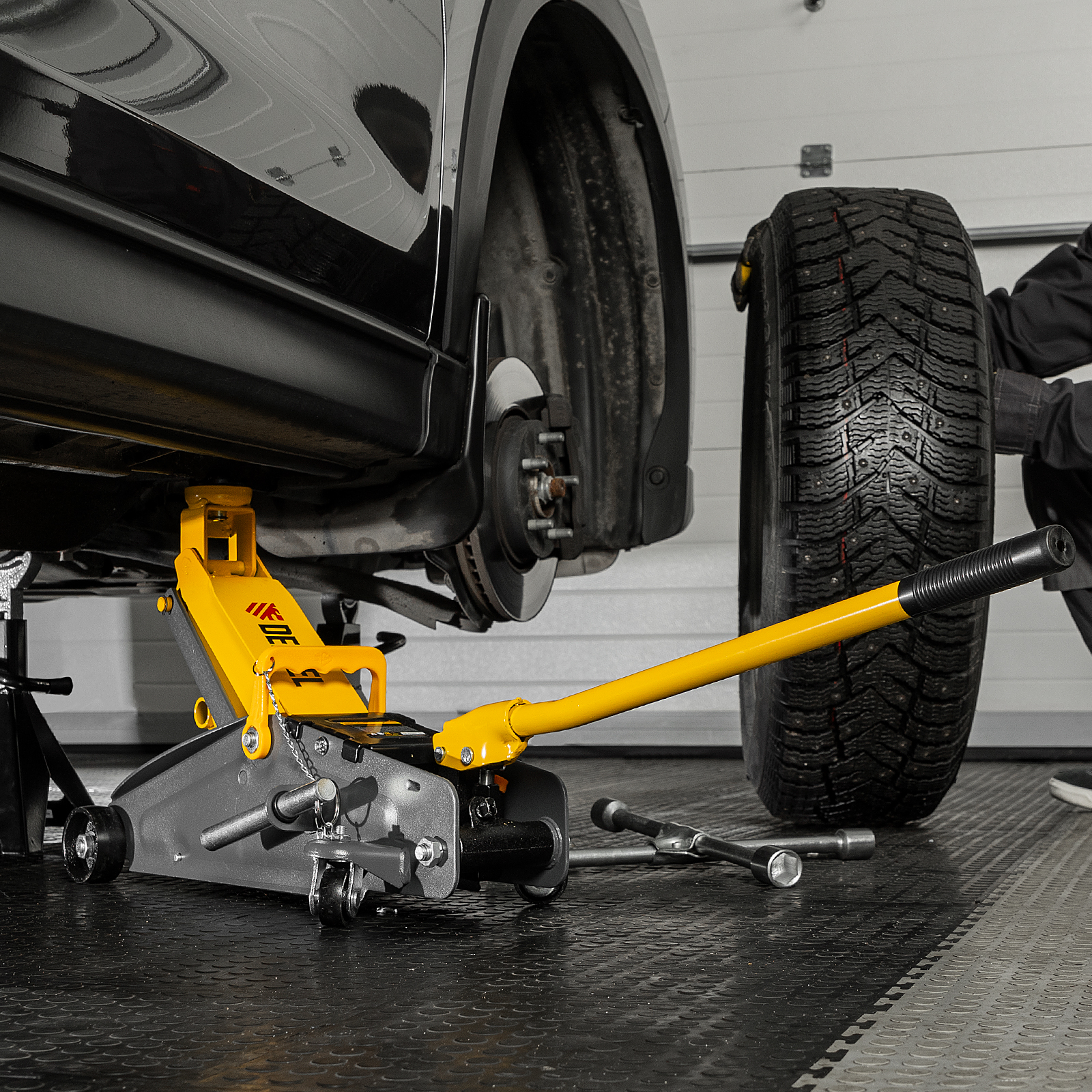 - Эргономичность — домкрат имеет переставную рукоятку для комфортного перемещения и извлечения из-под автомобиля.