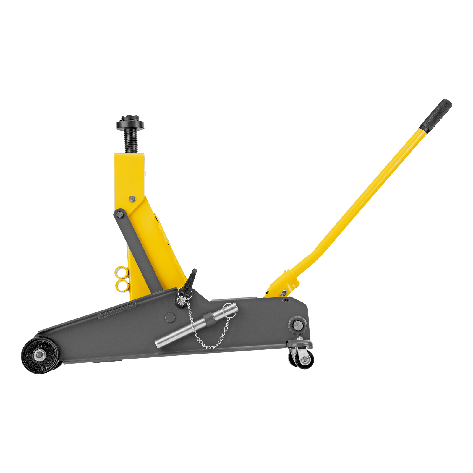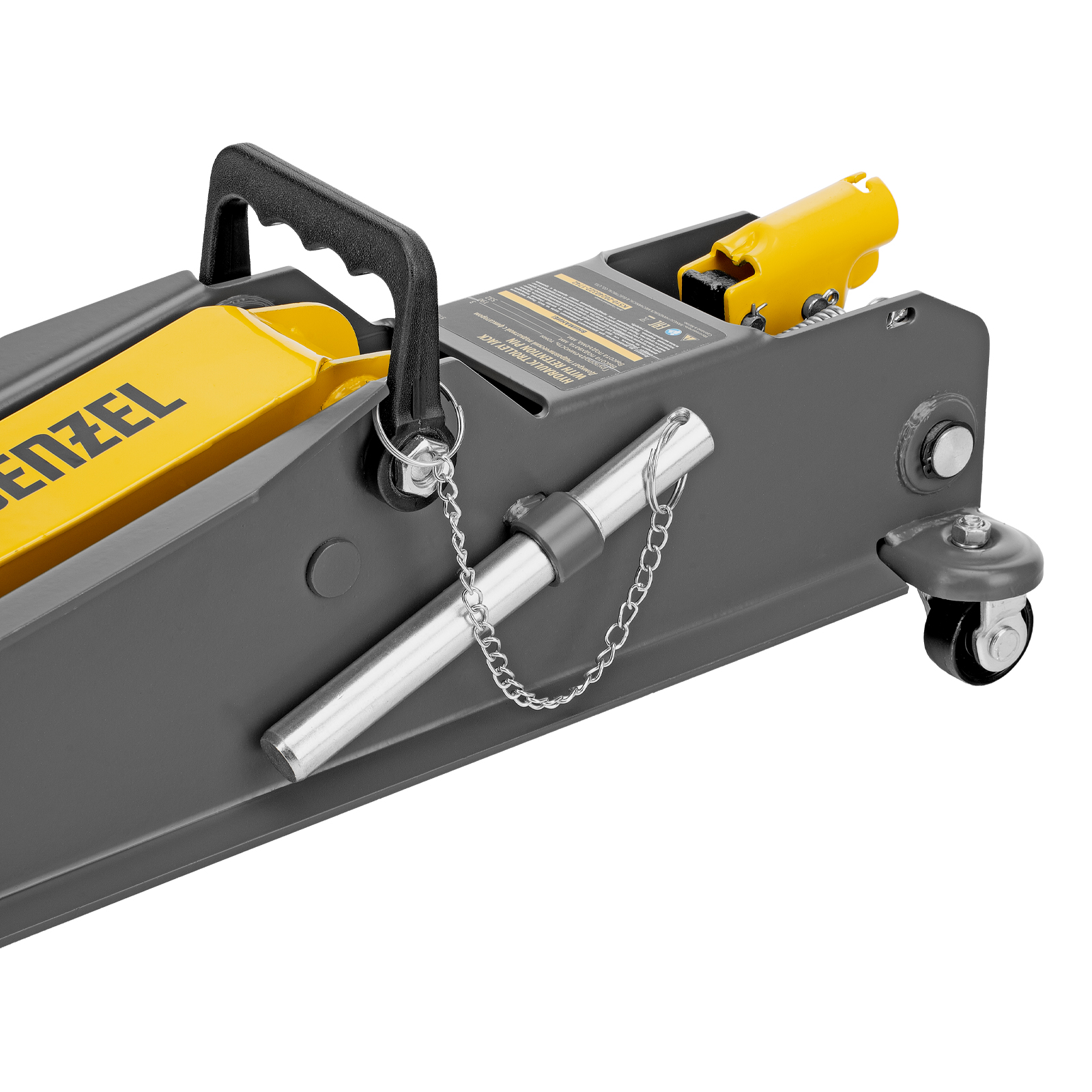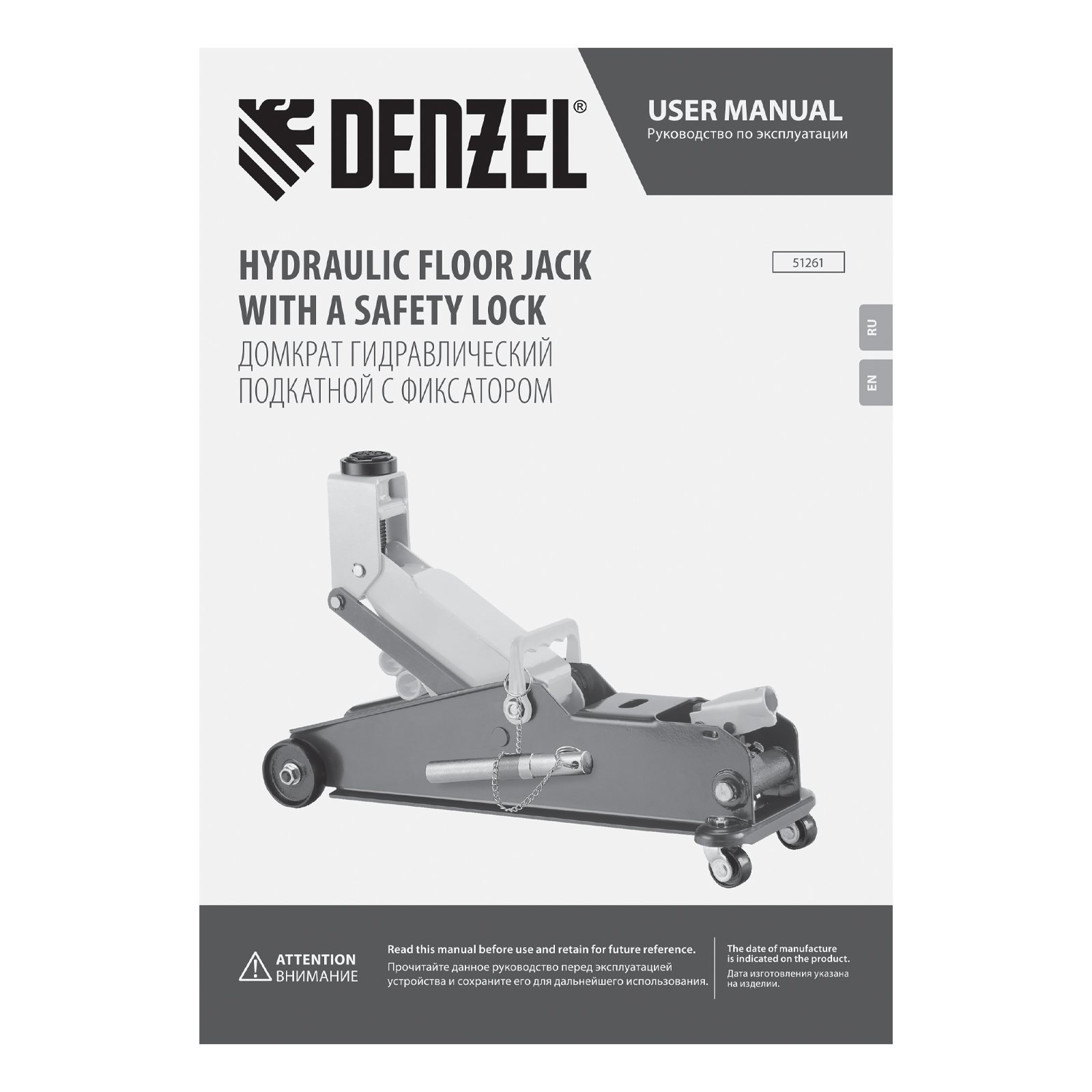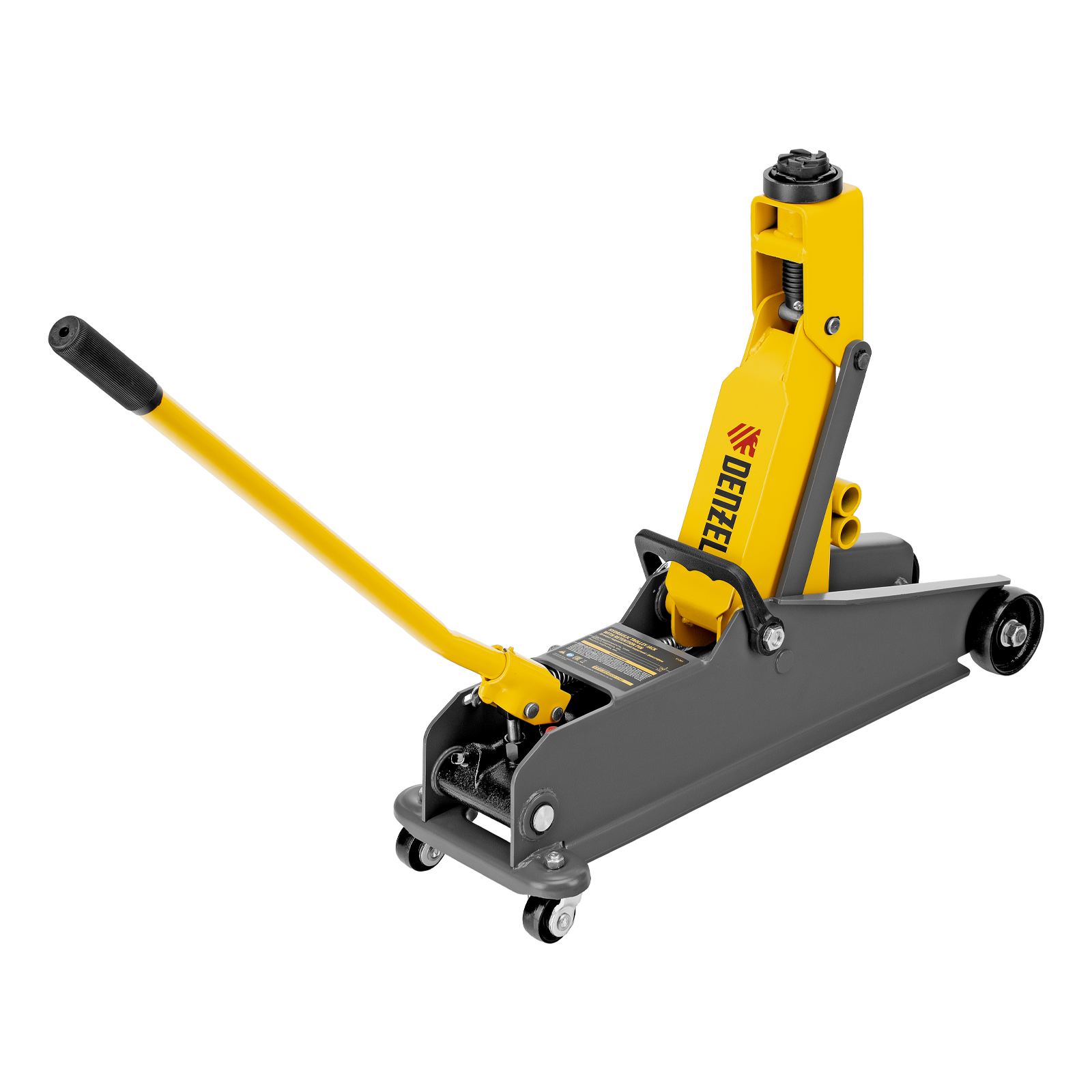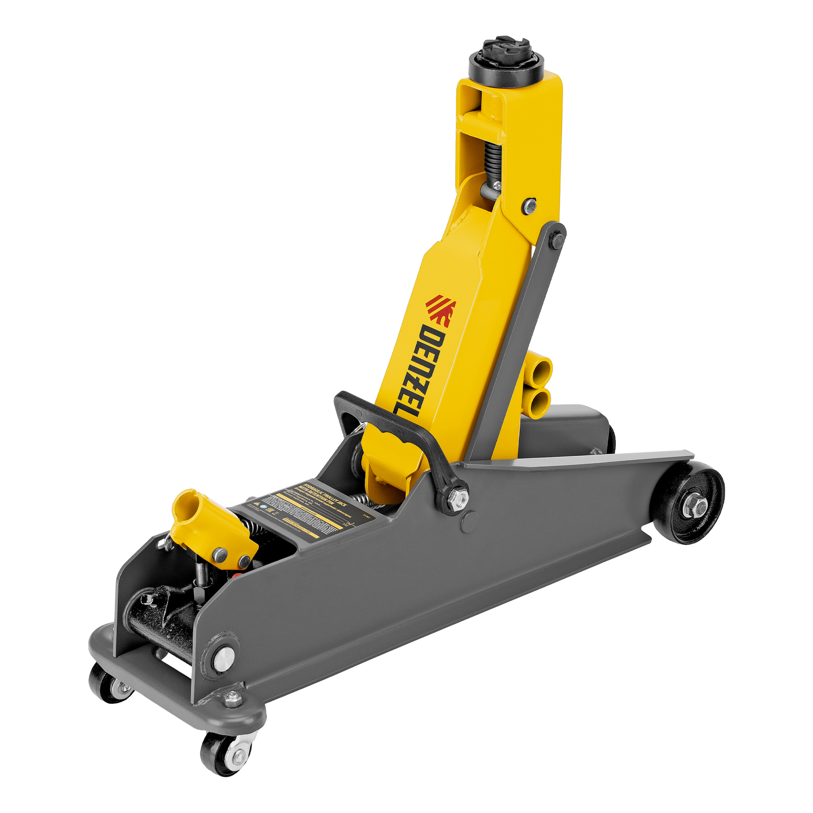 Гидравлический подкатной домкрат Denzel 51261 с фиксатором имеет высоту подхвата 190 мм и предназначен для плавного подъема грузов массой до 3 т (в том числе автомобилей класса SUV) на высоту до 532 мм. Страховочный штифт позволяет фиксировать подъемный рычаг на высоте 410 и 450 мм для безопасной работы. Домкрат пригодится владельцам легковых автомобилей со стандартным клиренсом.