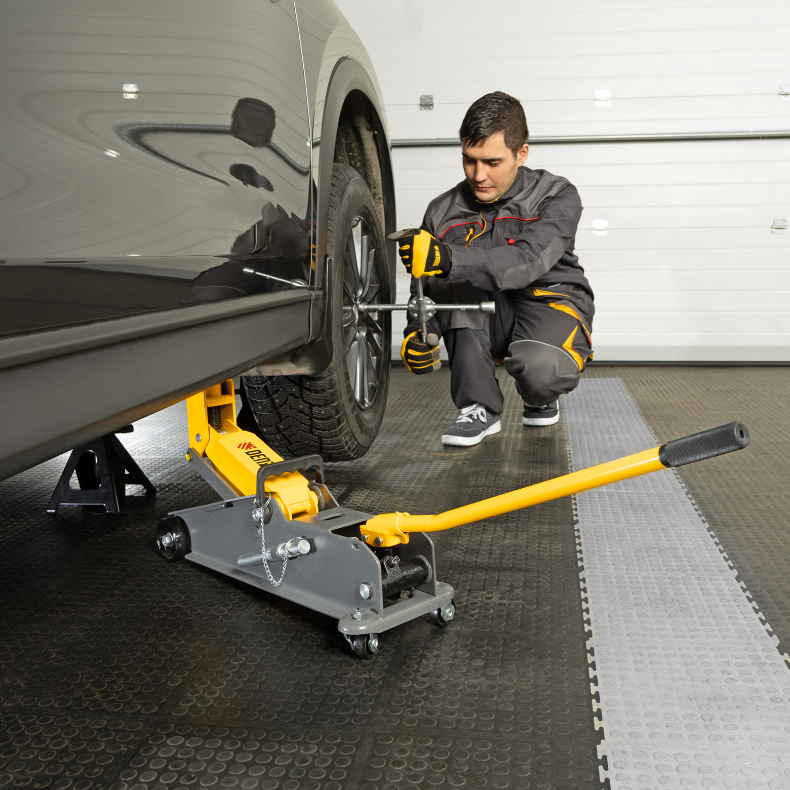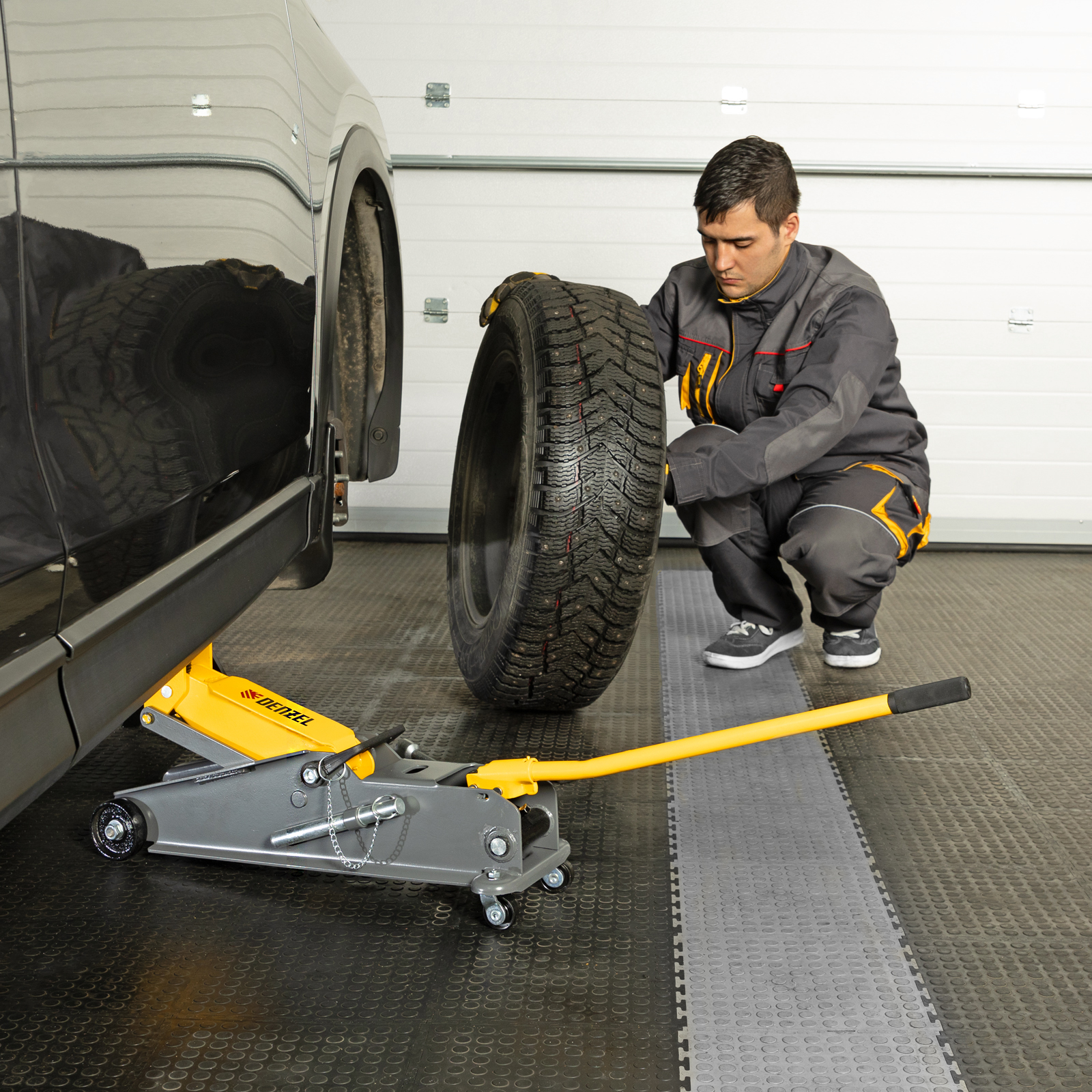 - Аккуратная работа — резиновая опора защищает днище автомобиля от нежелательных повреждений.