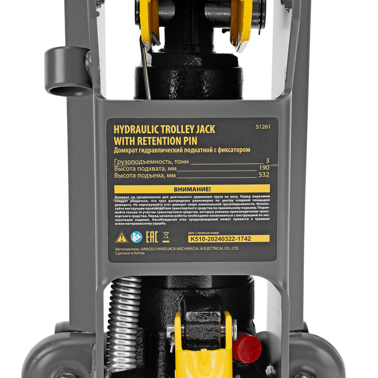 - Защита от поломки — предохранительный клапан не допускает подъема груза массой более 3 т.