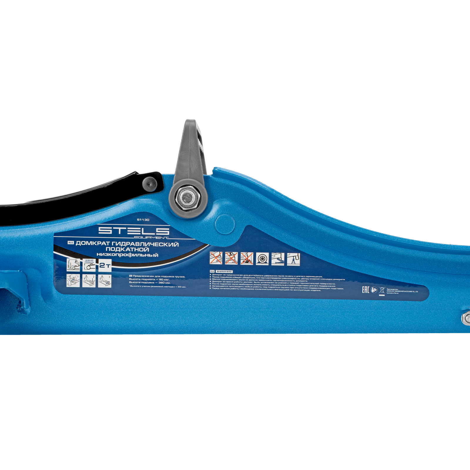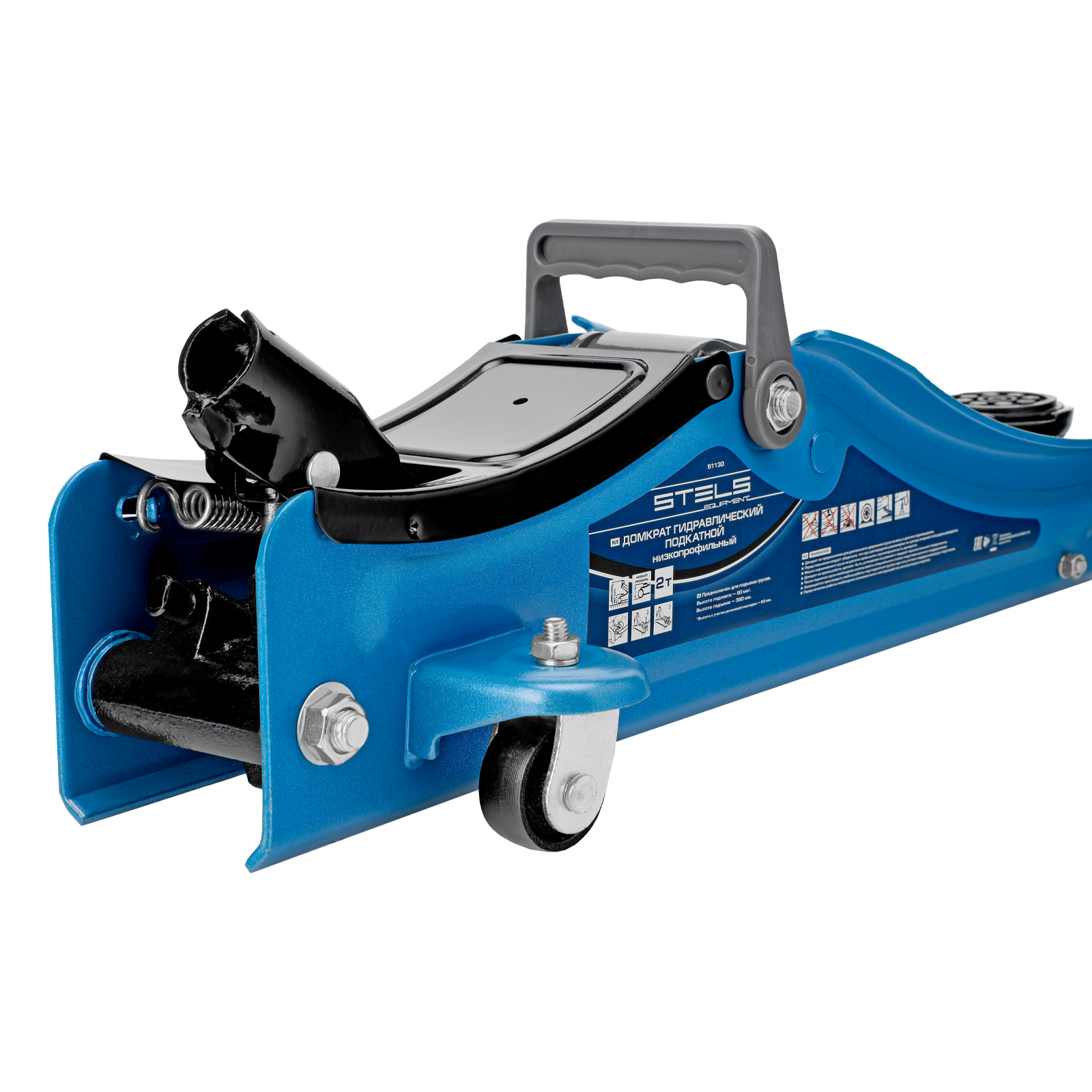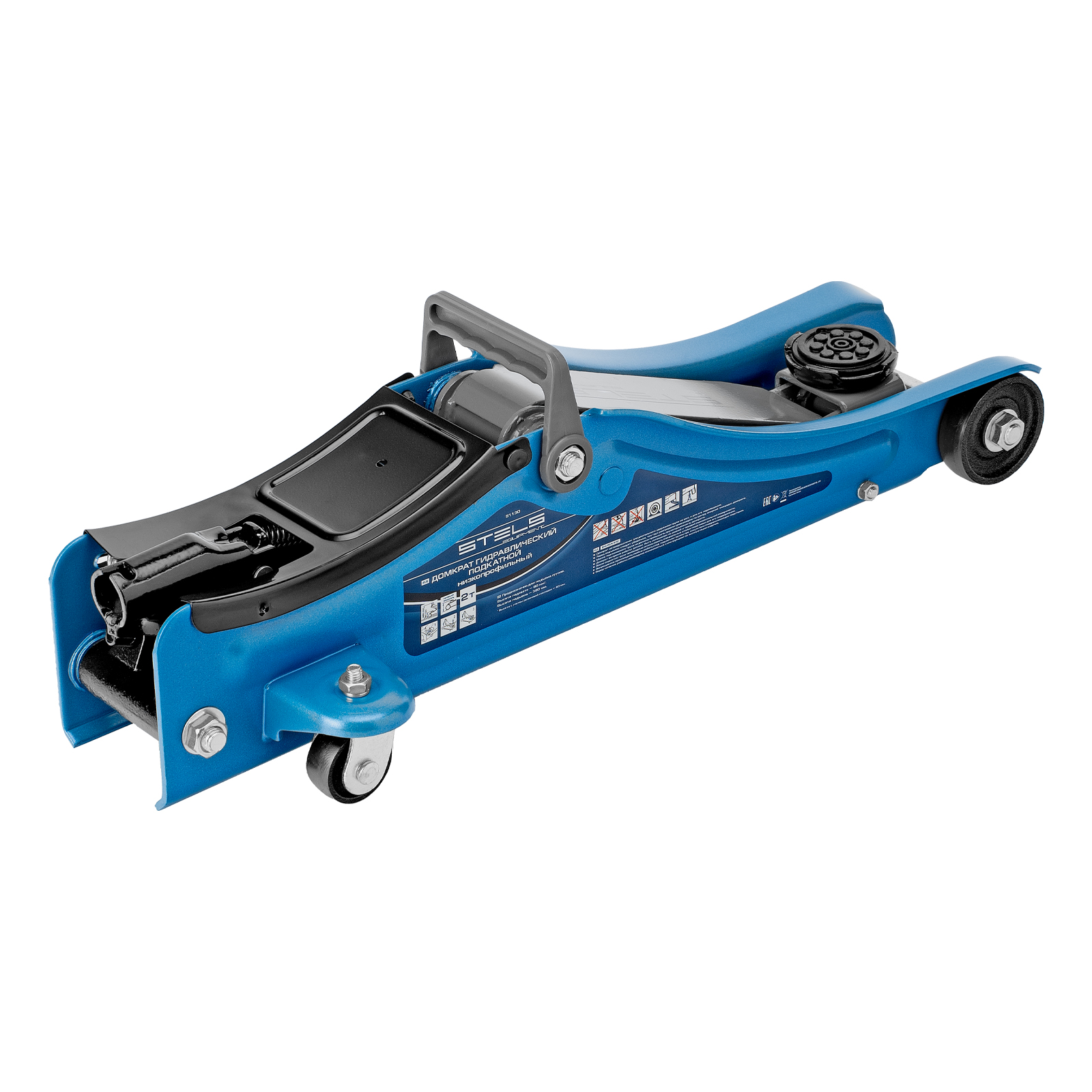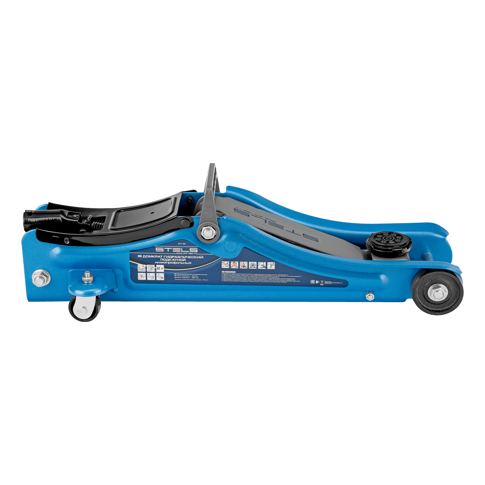 - Удобная эксплуатация — переставная ручка облегчает перемещение и выкатывание домкрата из-под груза.