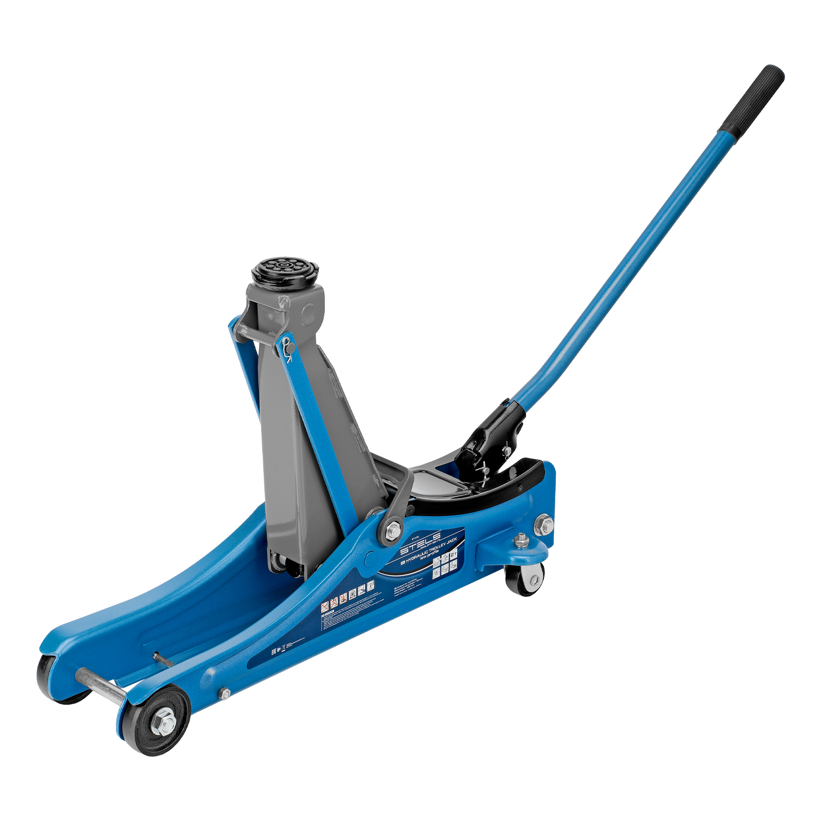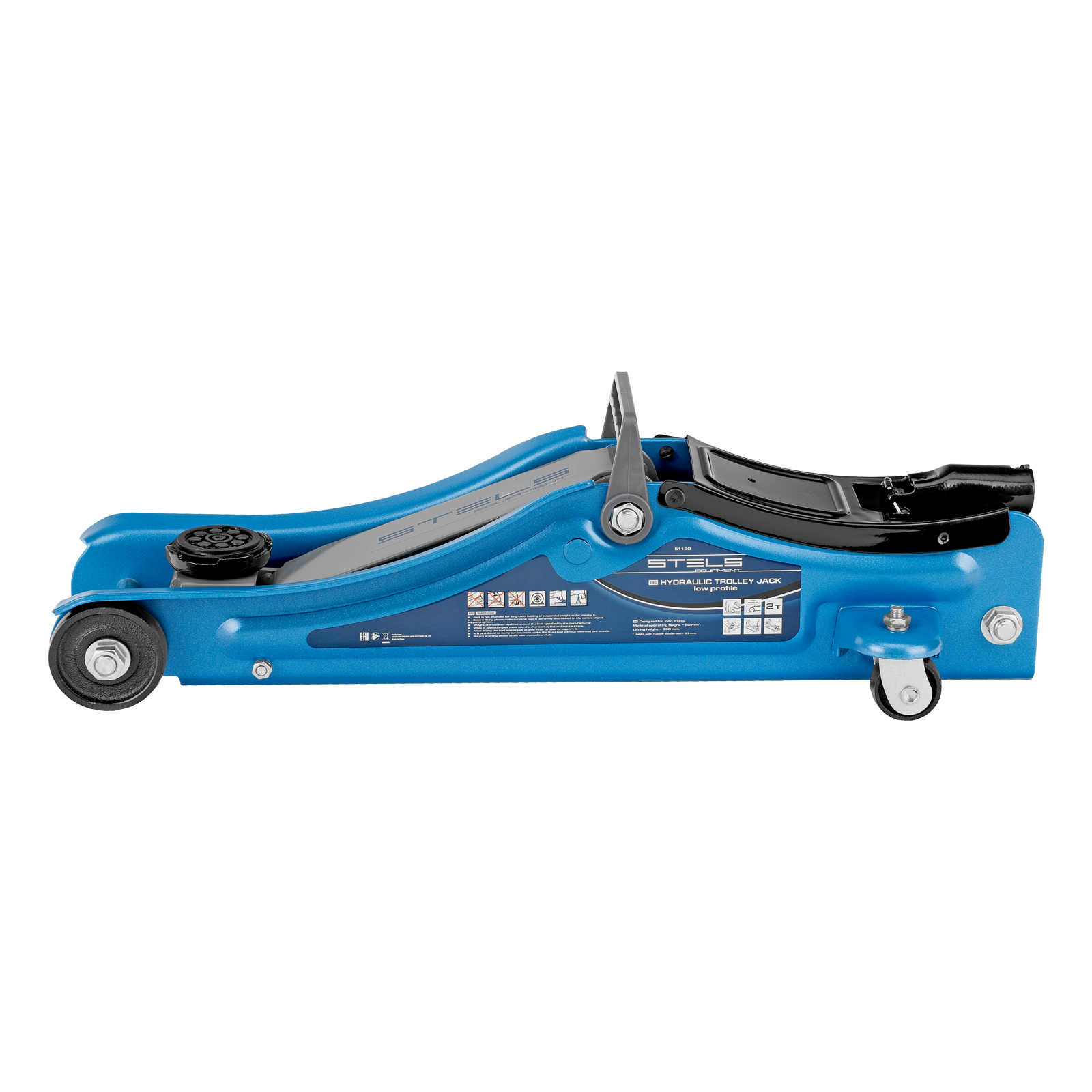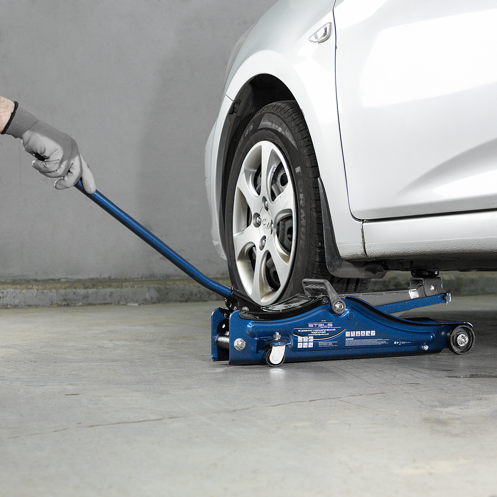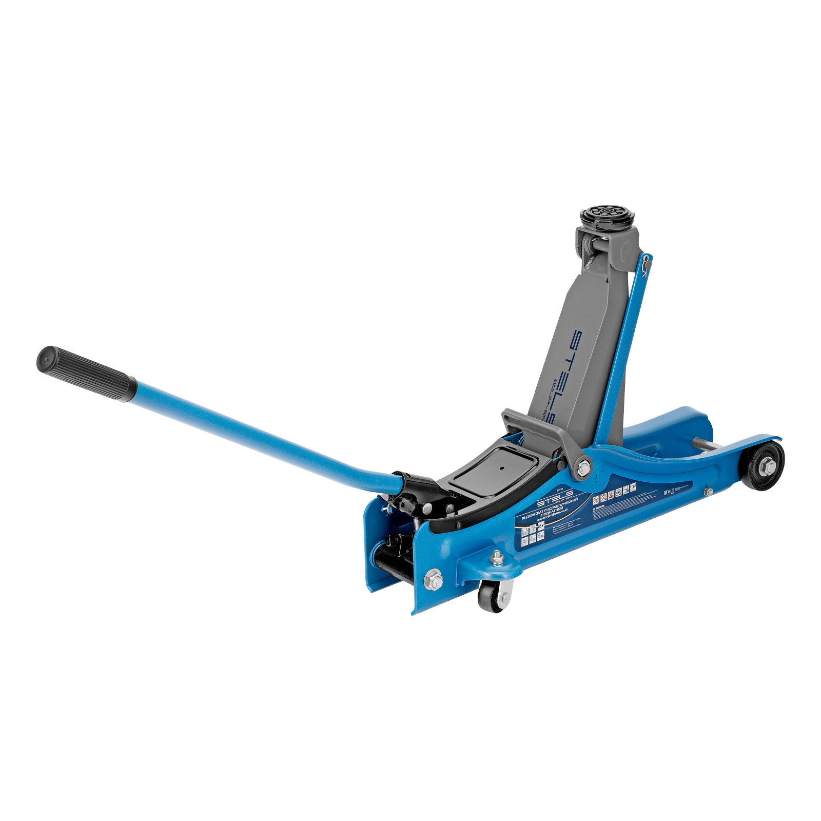 - Удобная эксплуатация — переставная ручка облегчает перемещение и выкатывание домкрата из-под груза.
