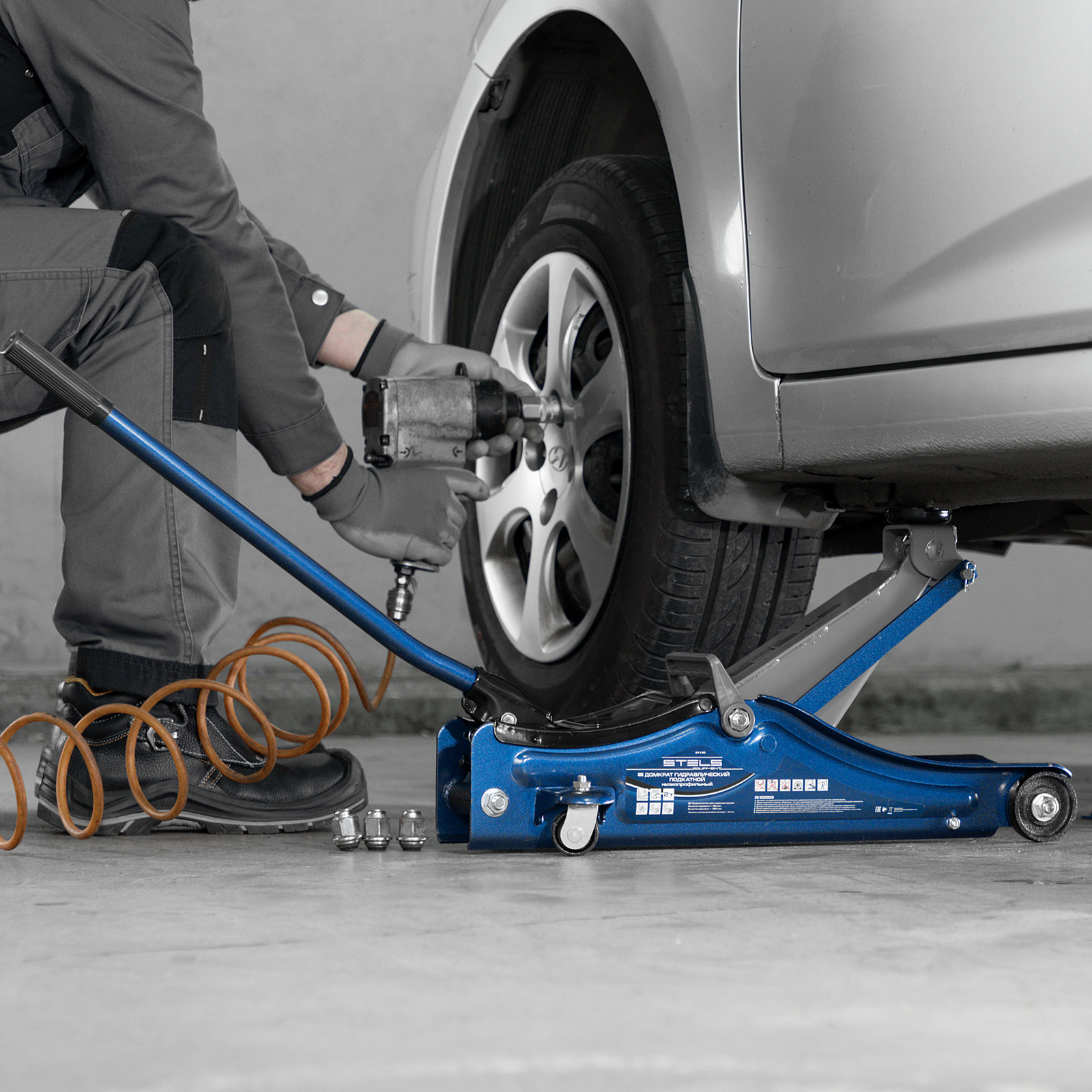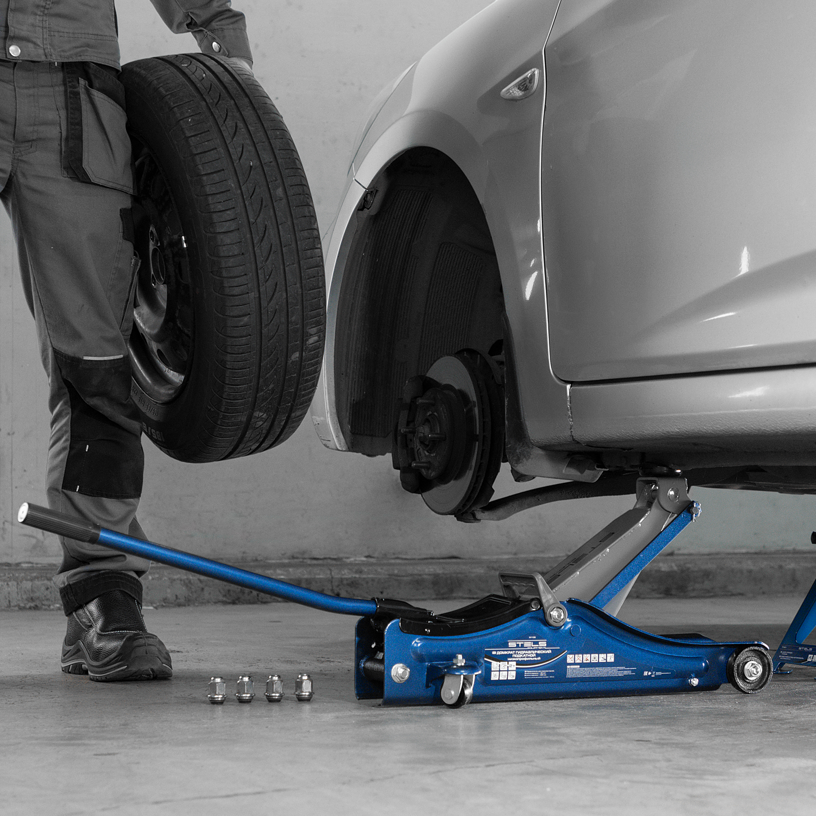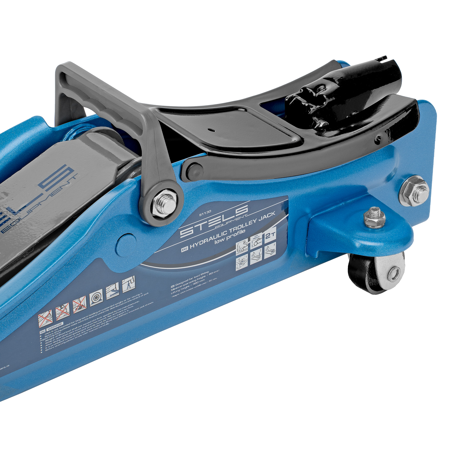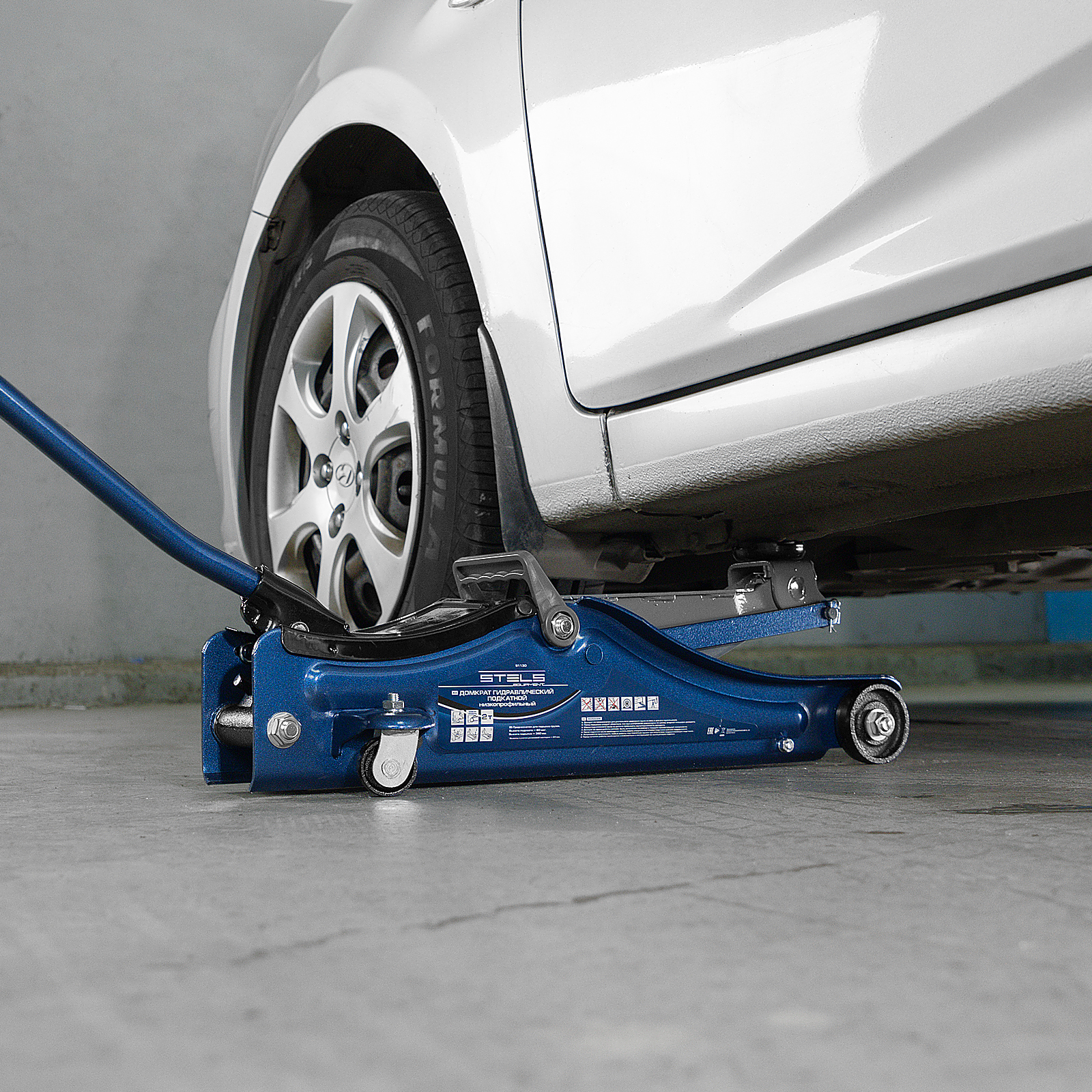 - Удобная эксплуатация — переставная ручка облегчает перемещение и выкатывание домкрата из-под груза.
