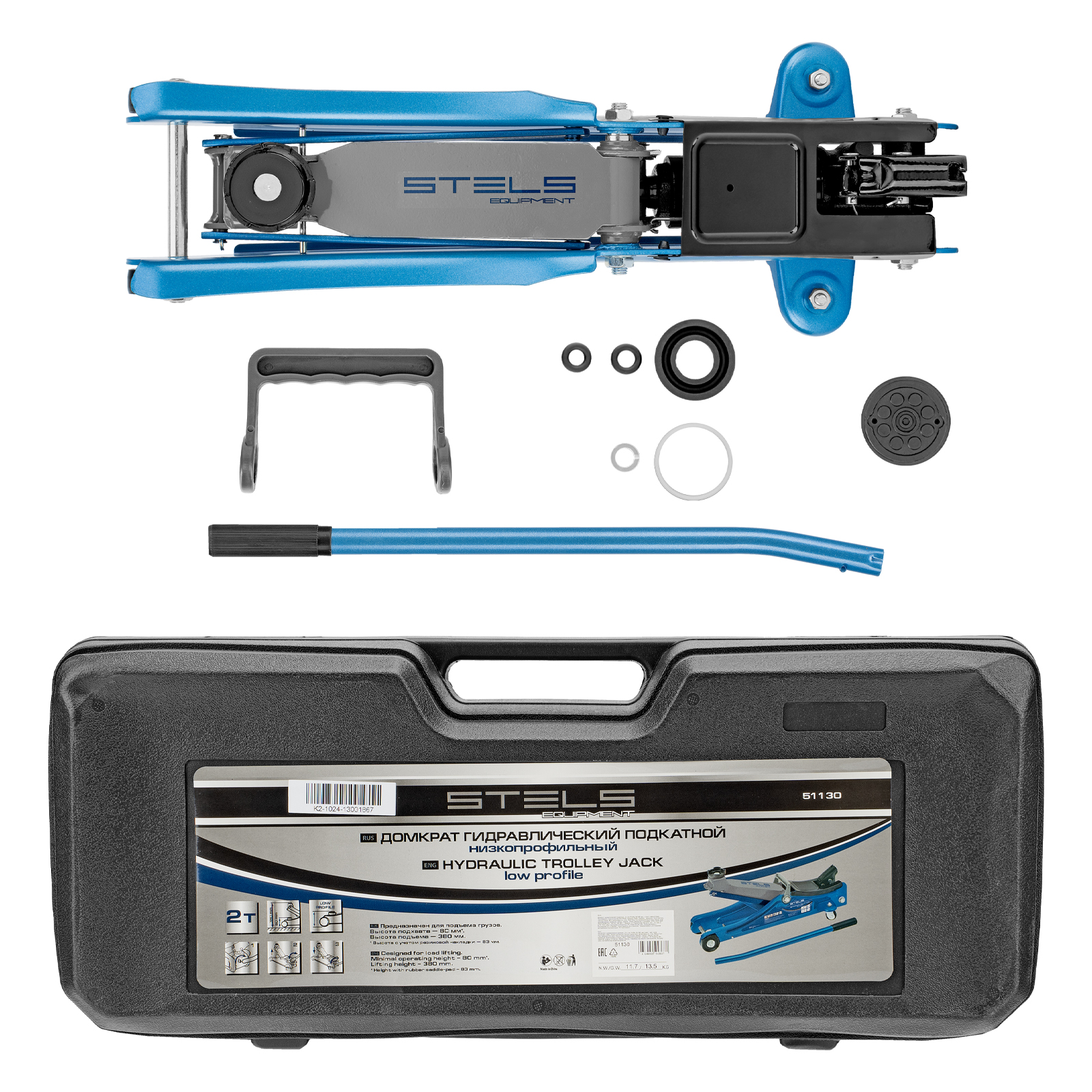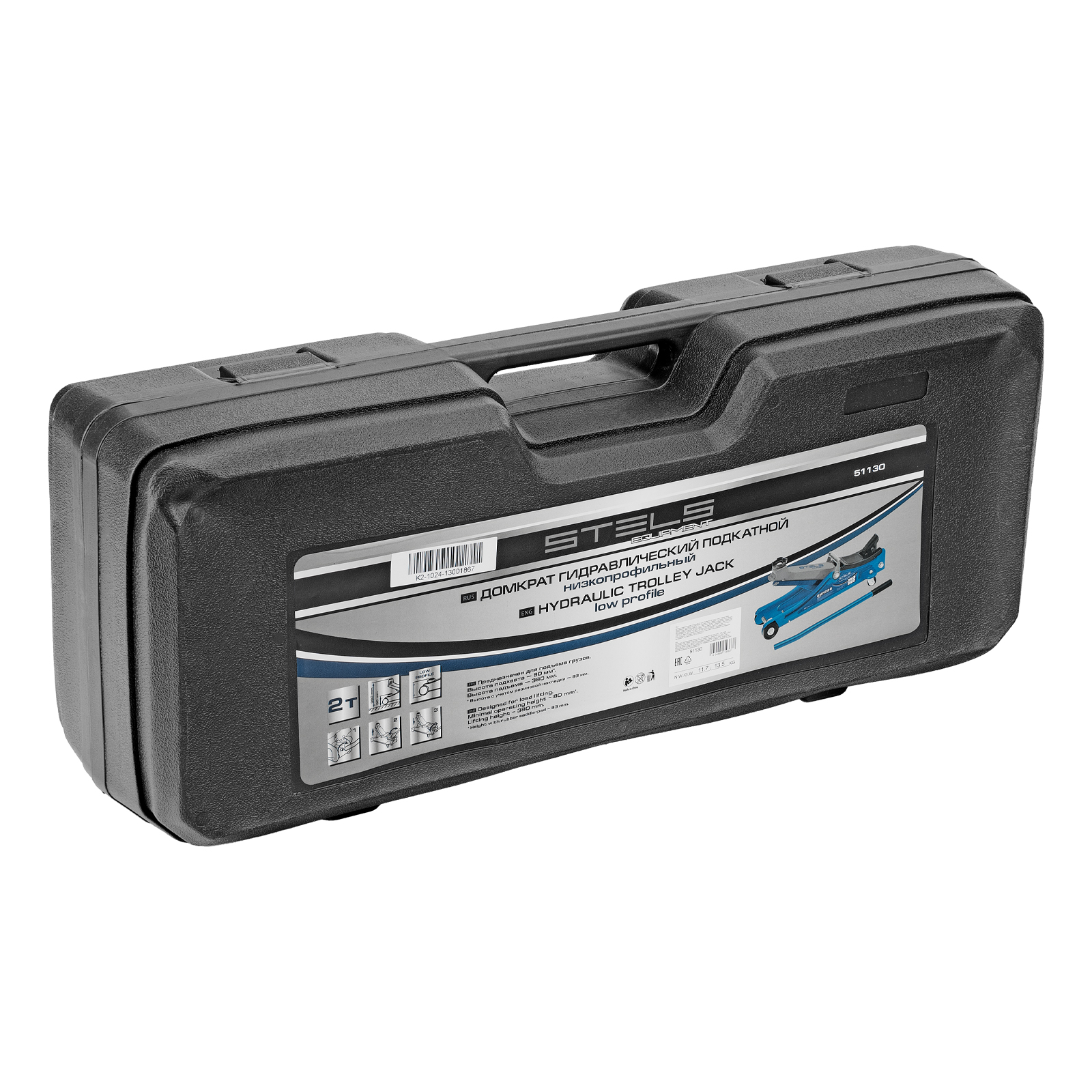 Домкрат гидравлический подкатной в пластиковом кейсе, 2 т, Low Profile, 80-380 мм Stels в Воронеже