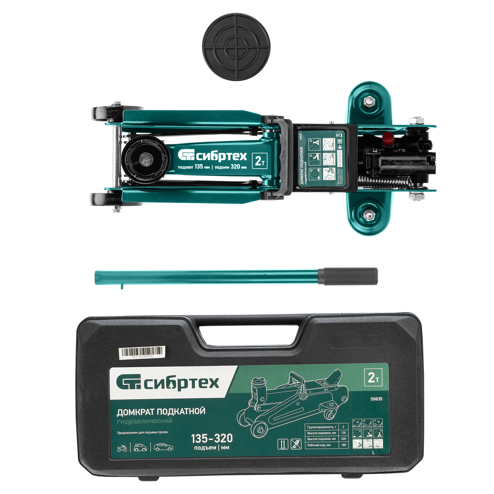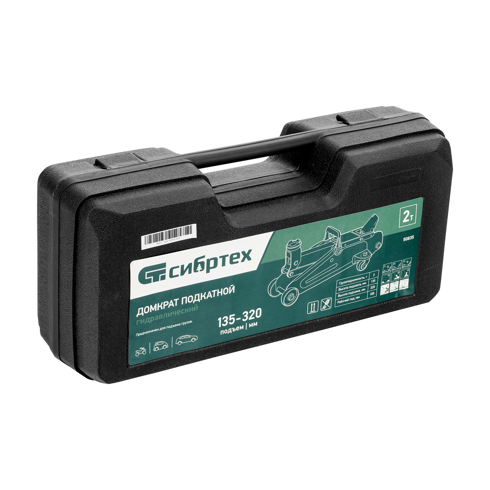 Гидравлический подкатной домкрат Сибртех 50835, поставляющийся в пластиковом кейсе, с высотой подхвата 135 мм, предназначен для подъема грузов массой до 2 т на высоту до 330 мм. Применяется для обслуживания автомобилей со стандартным клиренсом. Компактный домкрат подходит для самостоятельного использования автовладельцами.