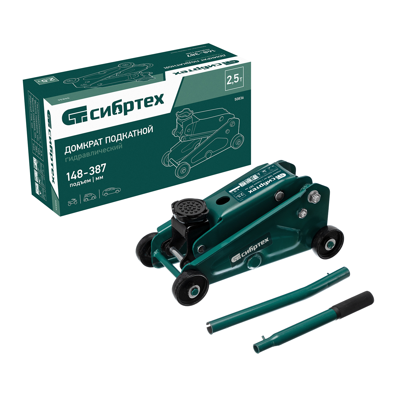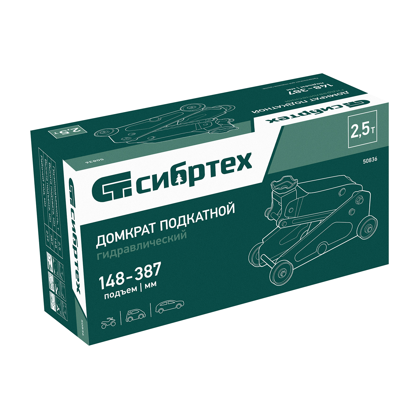 Гидравлический подкатной домкрат Сибртех 50836 с высотой подхвата 148 мм предназначен для подъема грузов массой до 2,5 т на высоту до 387 мм. Применяется для обслуживания автомобилей со стандартным клиренсом. Компактный домкрат подходит для самостоятельного использования автовладельцами.