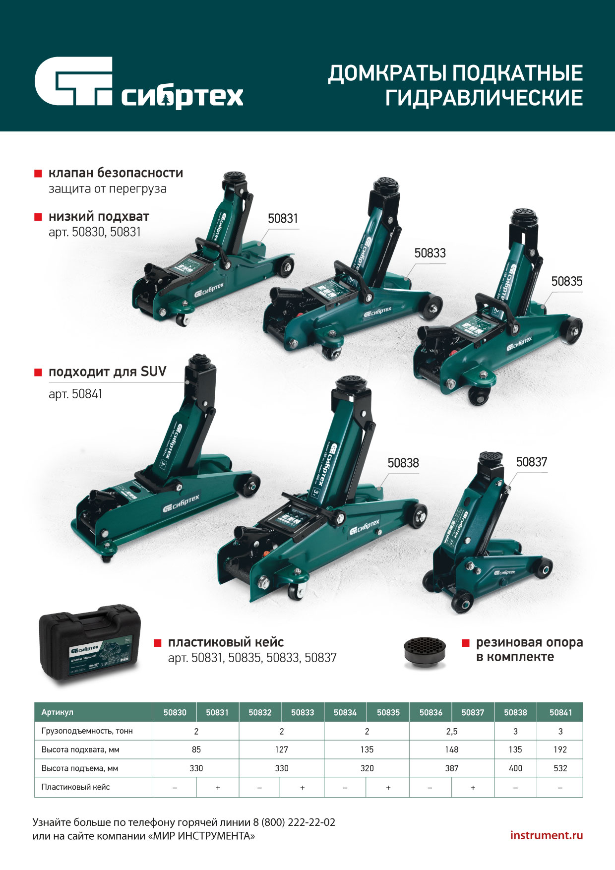 - Безопасность — клапан сброса избыточного давления защищает домкрат от перегрузки, предотвращая подъем груза массой более 2,5 т.