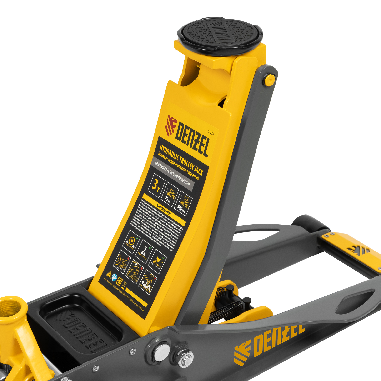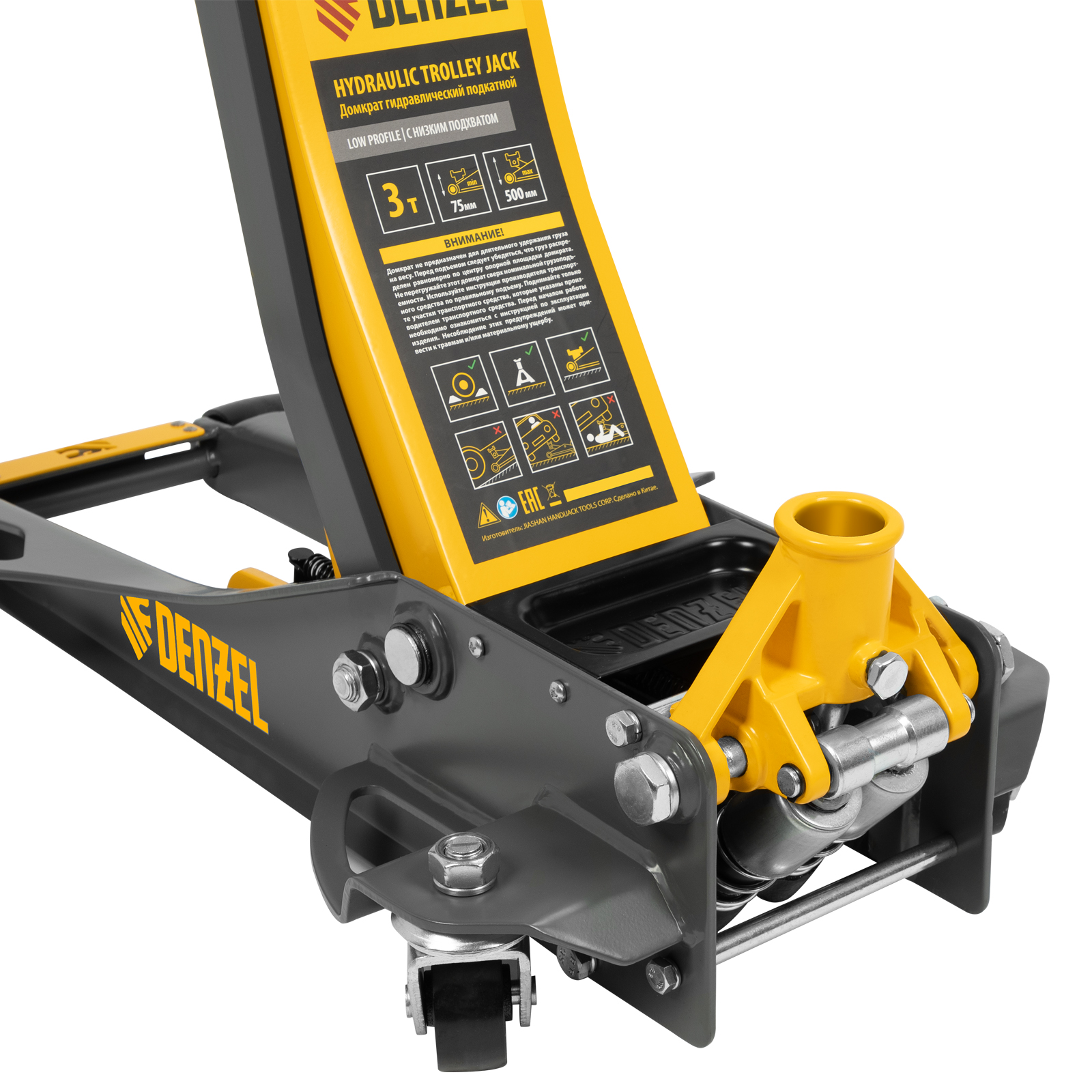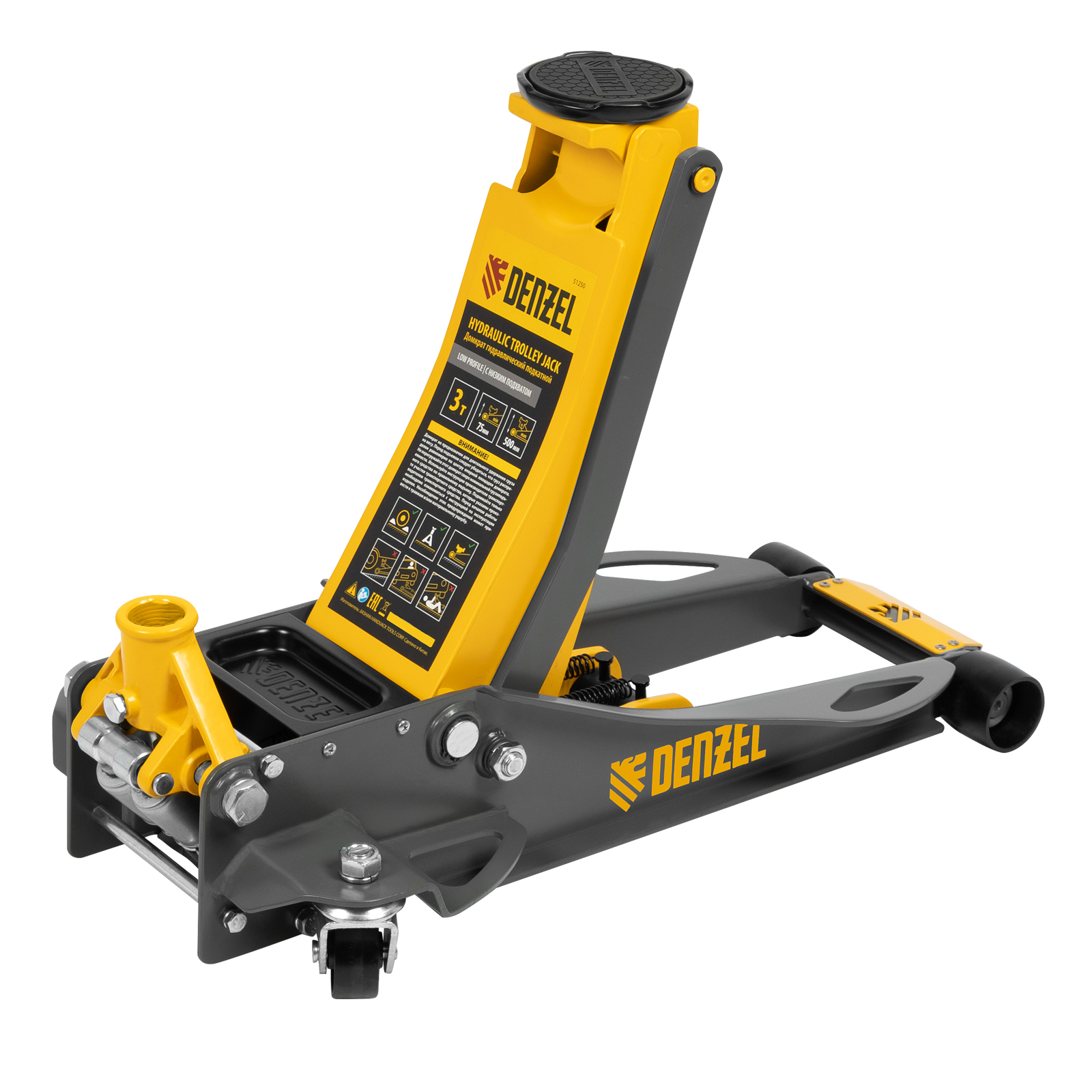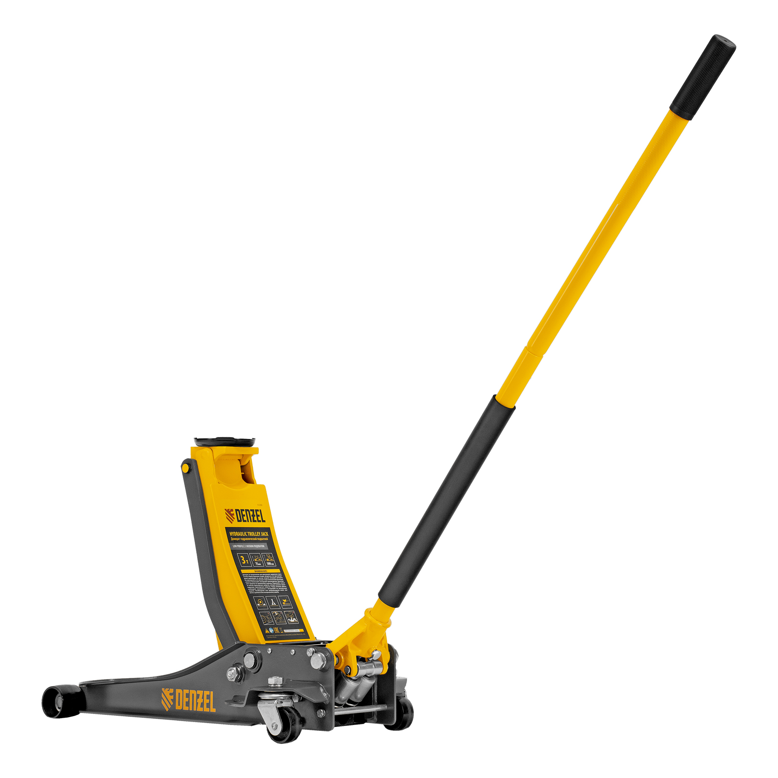 Домкрат гидравлический подкатной, 3 т, 75-500 мм, быстрый подъем, низкий подхват, проф. Denzel в Воронеже