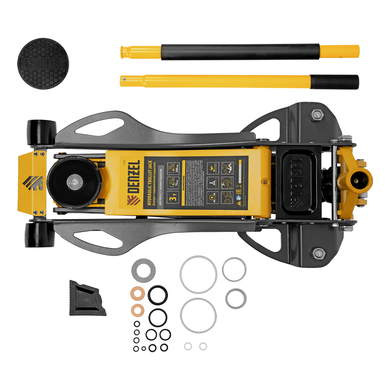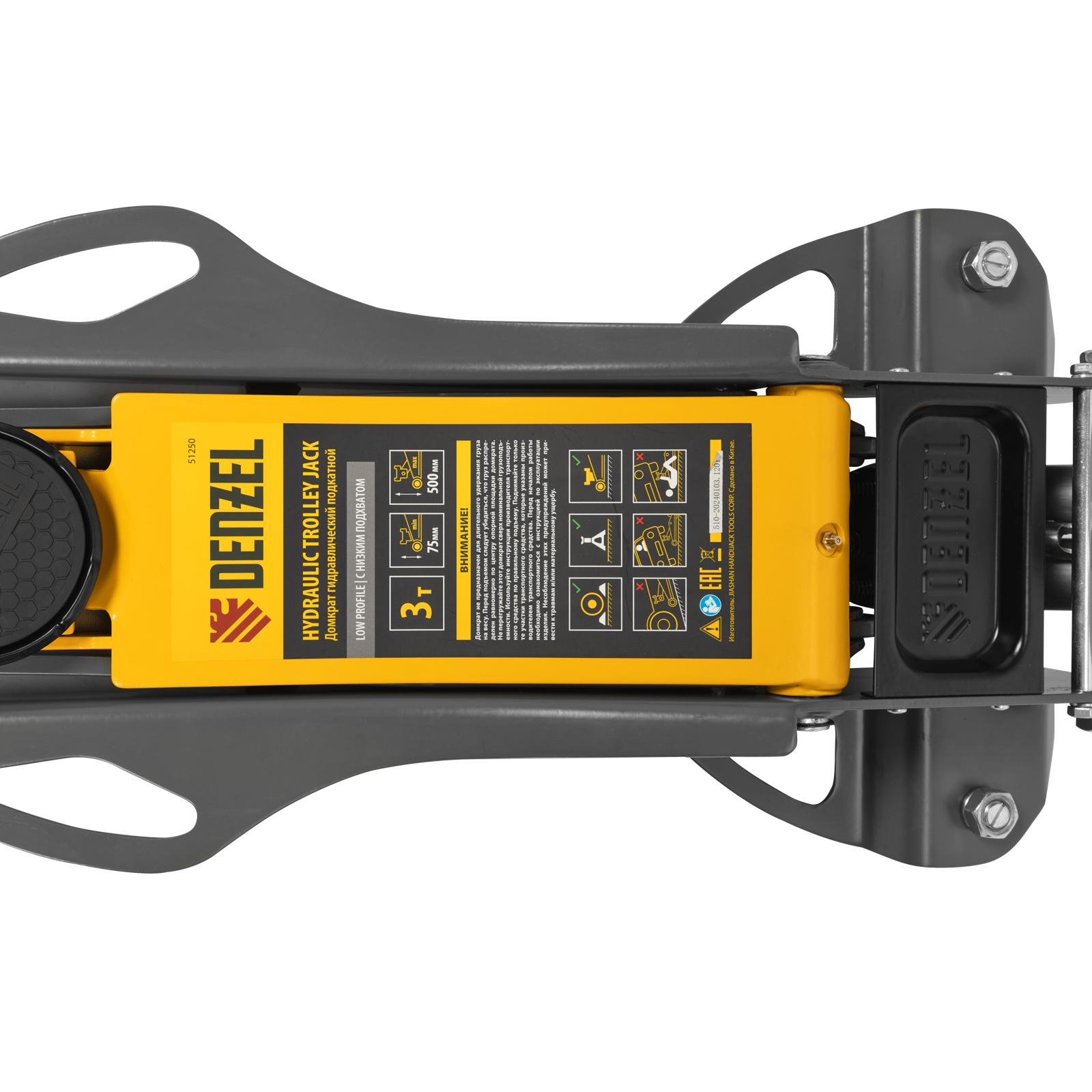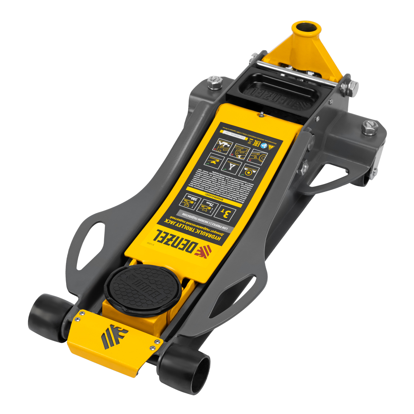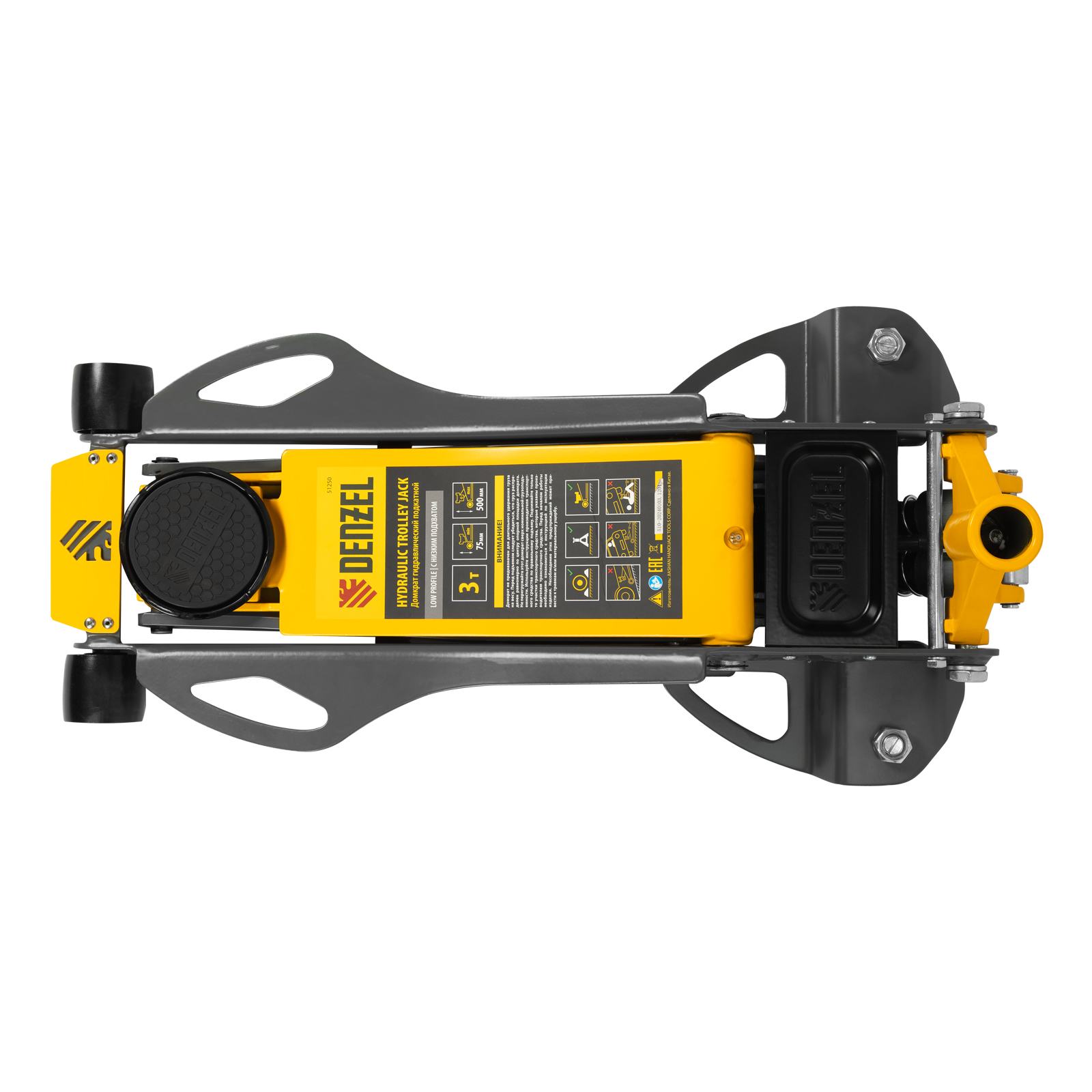 Домкрат гидравлический подкатной, 3 т, 75-500 мм, быстрый подъем, низкий подхват, проф. Denzel в Воронеже