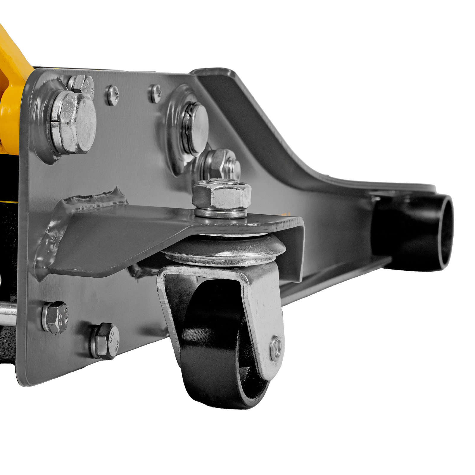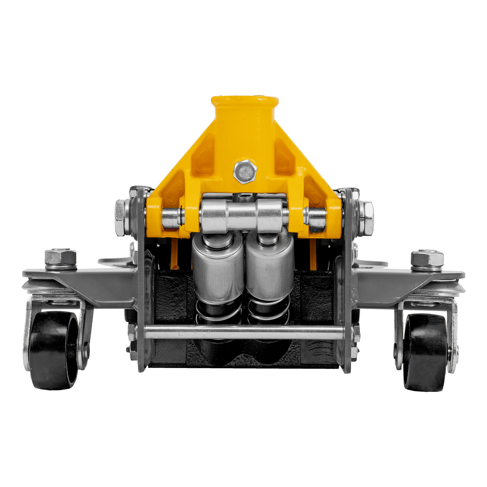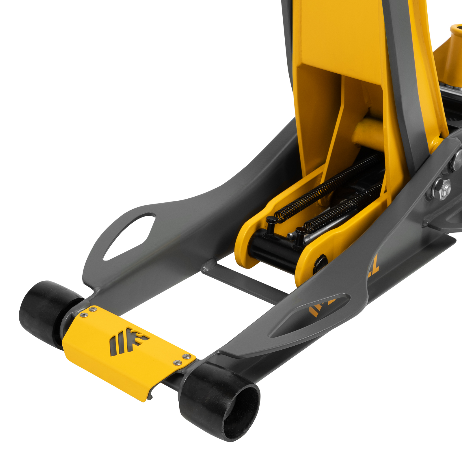 - Инновационная усиленная конструкция — боковые крылья обеспечивают дополнительную жесткость и увеличивают металлоемкость, а также повышают удобство подката и регулировки домкрата под автомобилем.
