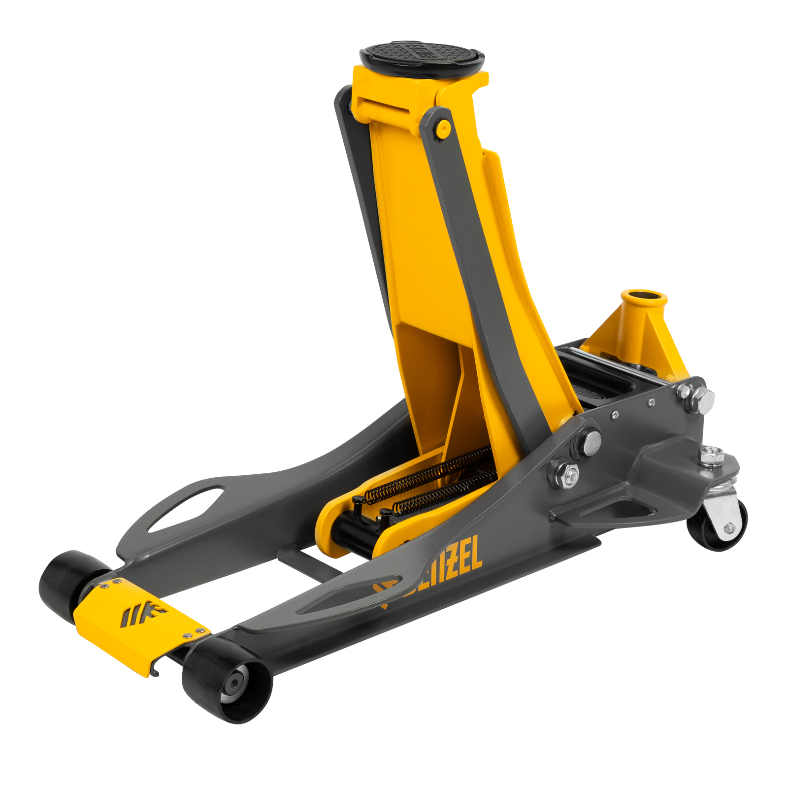 - Высокий ресурс — масленка на подъемном рычаге позволяет легко смазывать инструмент для снижения трения между движущимися механизмами, что повышает эффективность работы домкрата и продлевает его срок службы.