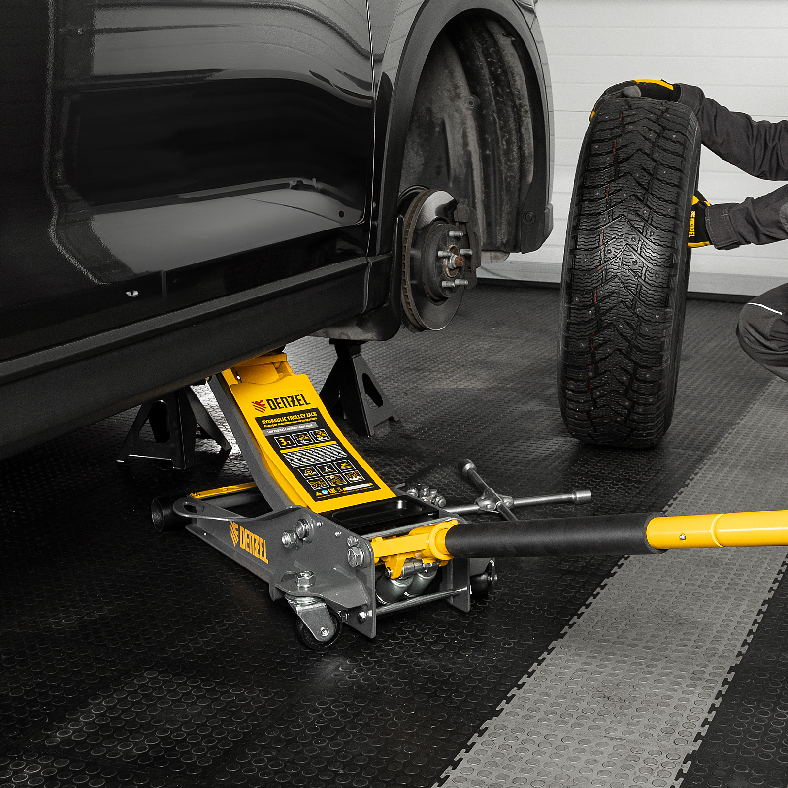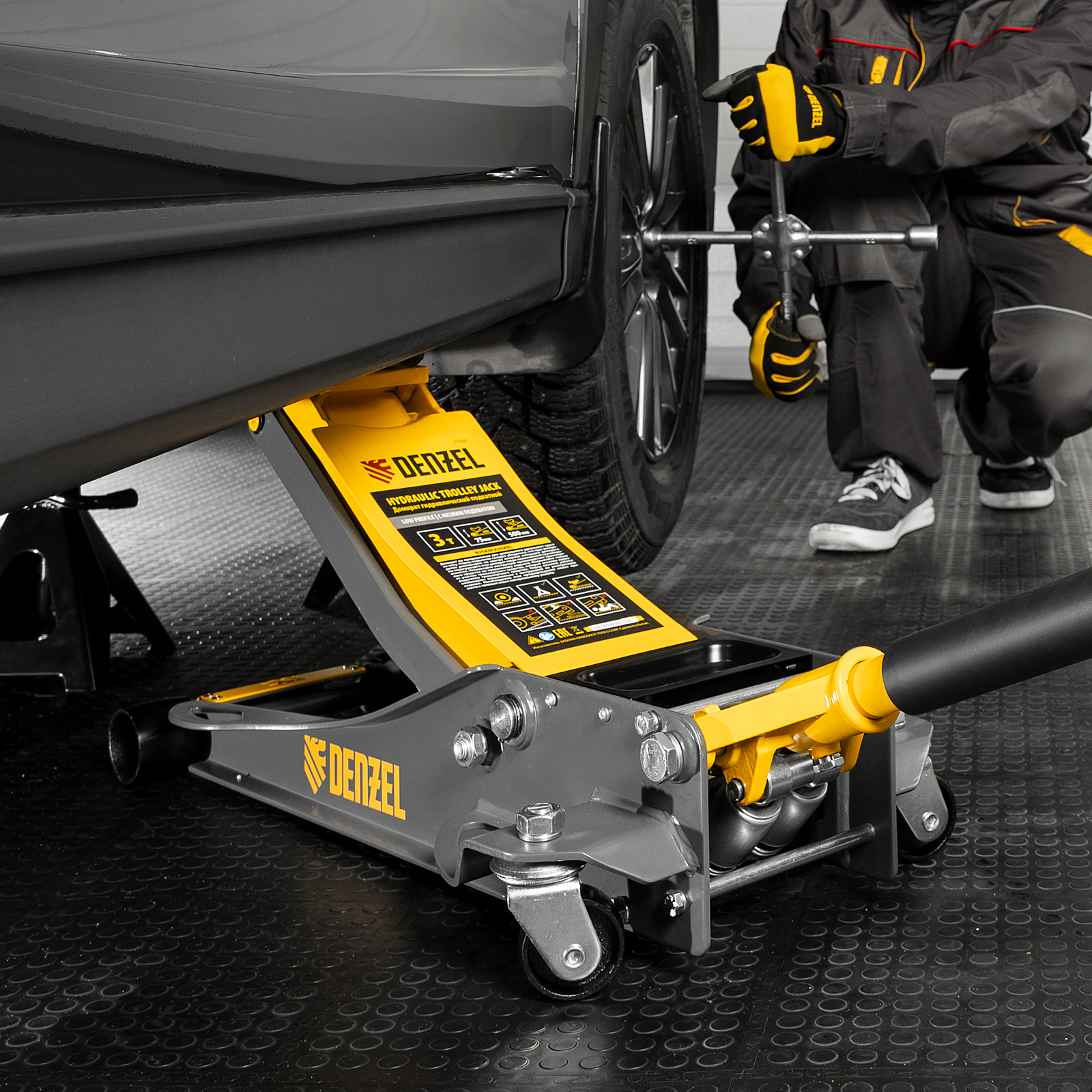 - Аккуратная работа — резиновая опора и прорезиненная рукоятка защищают кузов и днище автомобиля от нежелательных повреждений.