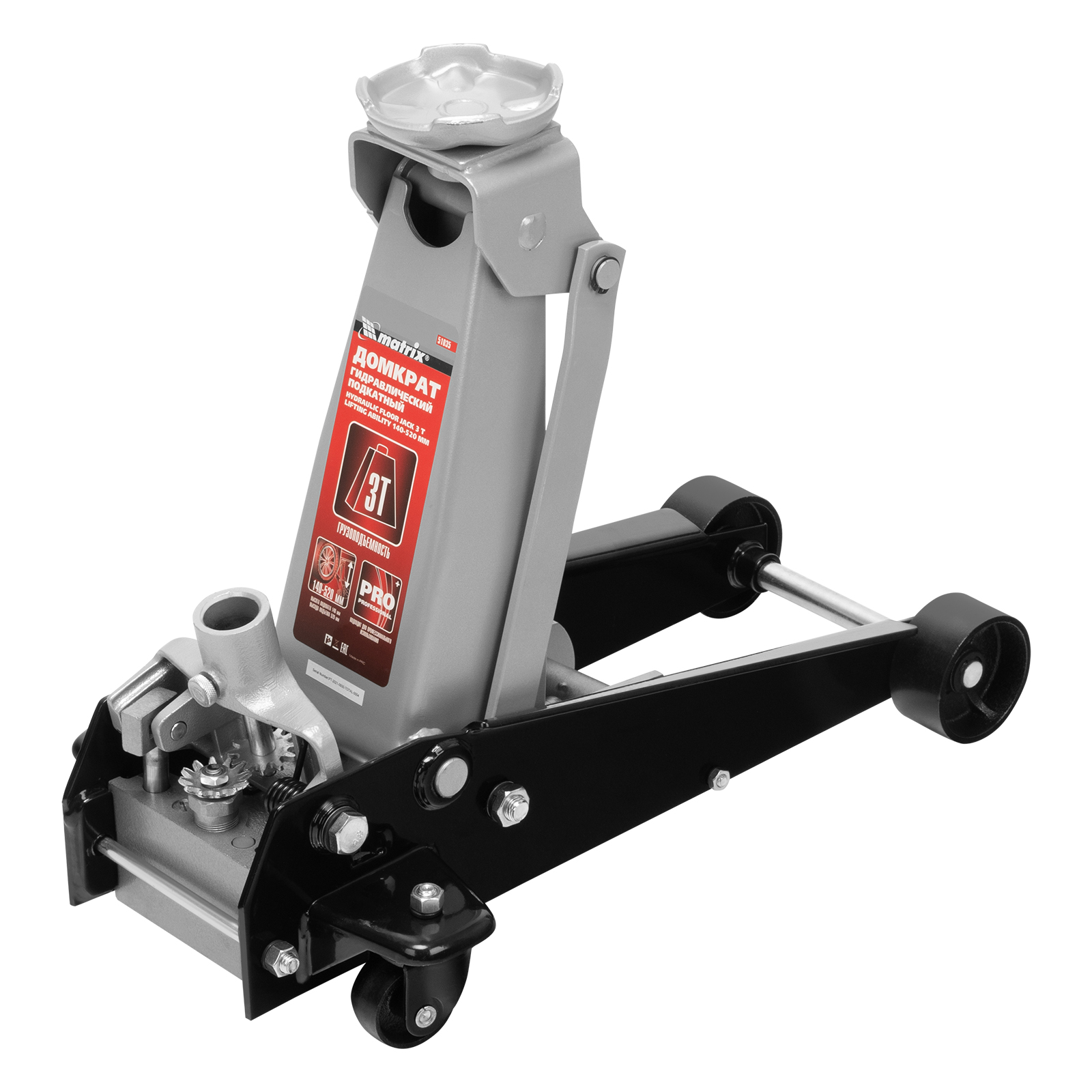 Домкрат гидравлический подкатной, 3 т, высота подъема 140-520 мм Matrix в Воронеже