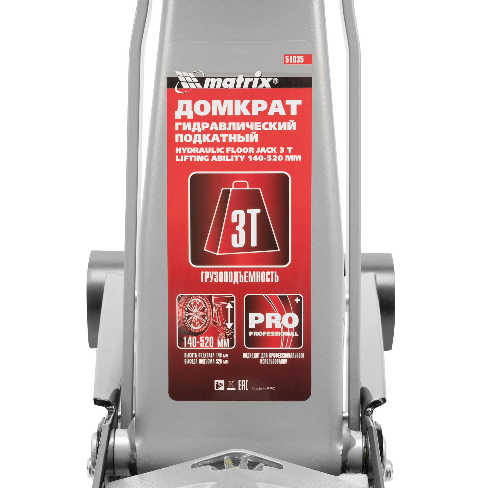 Подкатной гидравлический домкрат Matrix 51035 с высотой подхвата 140 мм, — полупрофессиональное гаражное оборудование, способное поднимать груз массой до 3 т на высоту до 520 мм. Высота подхвата 140 мм позволяет использовать домкрат для автомашин со стандартным клиренсом. Домкрат будет полезен как в автомастерской, так и в частном гараже.