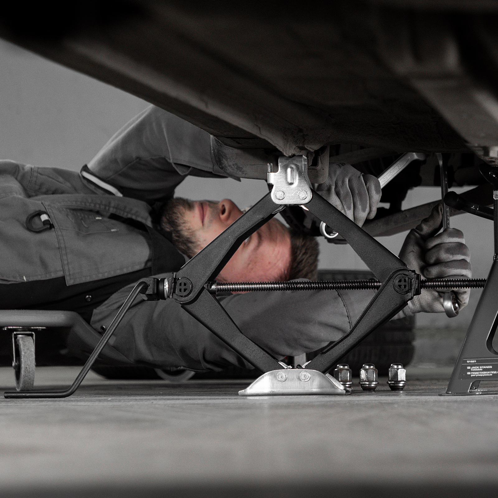 - Надежность и долговечность — контактные площадки из оцинкованной стали и корпус с лакокрасочным покрытием не боятся коррозии, домкрат выдерживает эксплуатацию при низкой температуре.