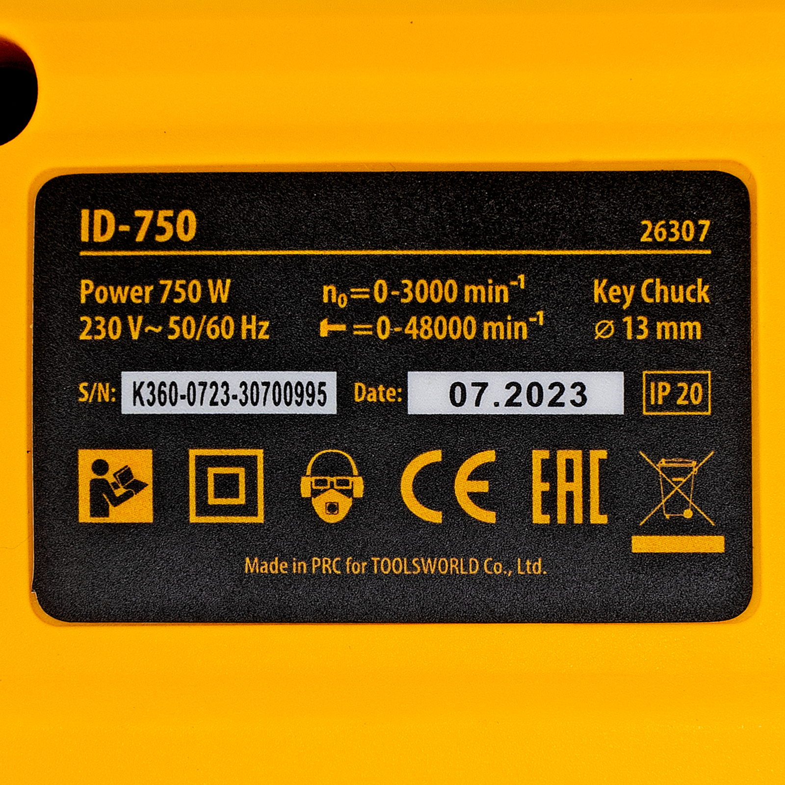 Ударная дрель Denzel ID-750 26307 мощностью 750 Вт поддерживает скорость вращения оснастки 0-3000 об/мин и частоту ударов 48000 уд/мин. Используется для ручного или ударного сверления металла, древесины, легкого бетона, кирпича, плитки или пластика. Сверлит отверстия диаметром до 25 мм в древесине, до 13 мм в бетоне и до 13 мм в металле. Эффективное сверление твердых материалов обеспечивает массивный промщит ударного механизма. Дрель работает со сверлами с диаметром хвостовика 1,5-13 мм, что позволяет эффективно решать различные задачи.