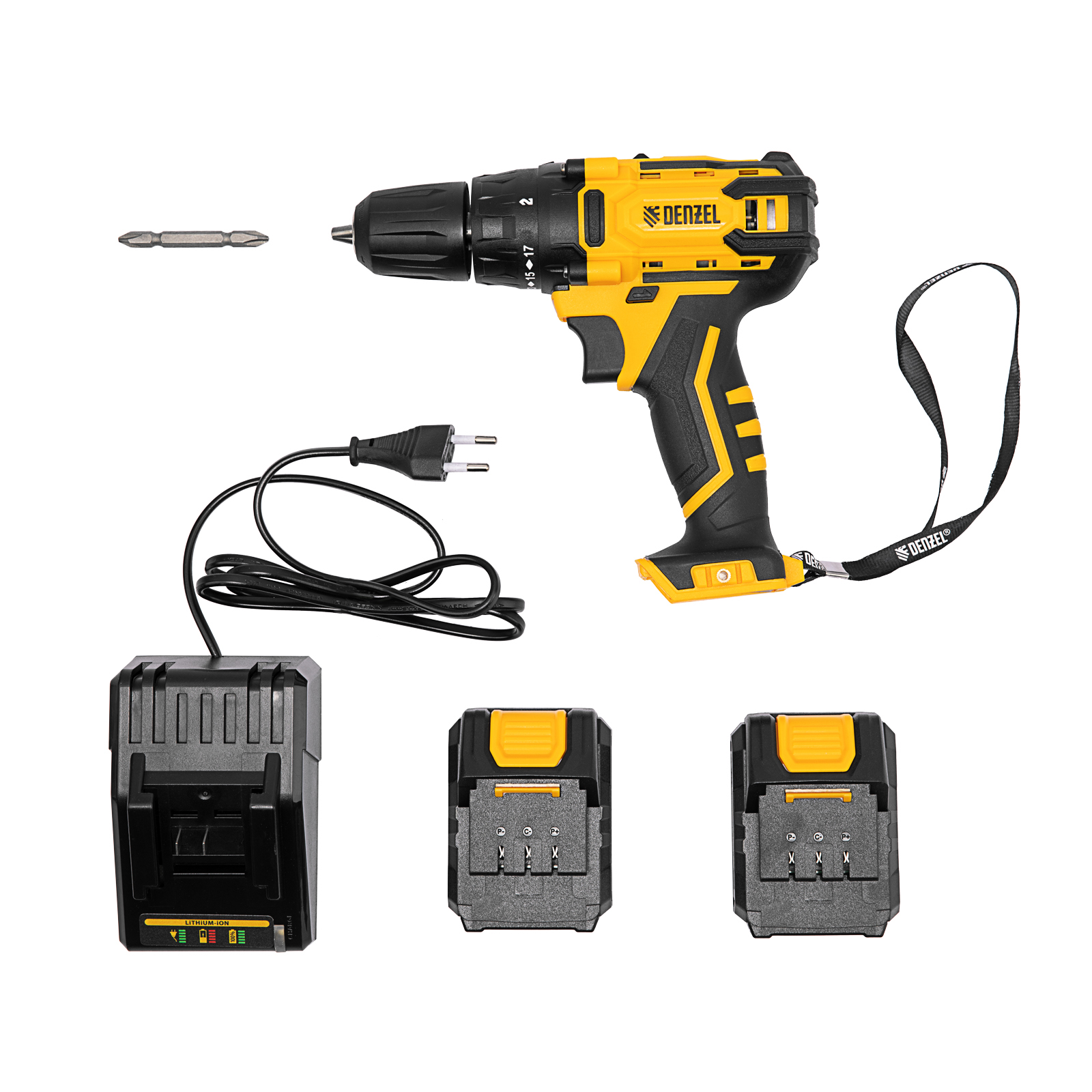 Аккумуляторная дрель-шуруповерт Denzel CDL-12-02BM 26105 с 2 батареями Li-Ion 12 В предназначена для монтажа и демонтажа резьбовых соединений, cверления отверстий в металле (до 10 мм), древесине (до 16 мм), пластмассе и других материалах. Инструмент пригодится профессионалам и любителям на строительной площадке, дома или на даче.,Надежные литий-ионные аккумуляторы без эффекта памяти и защитой от глубокого разряда обеспечивают долгий срок службы инструмента. Дрель не зависит от сети питания, что делает удобной работу на строительных объектах, на высоте и в отдаленных участках дома.