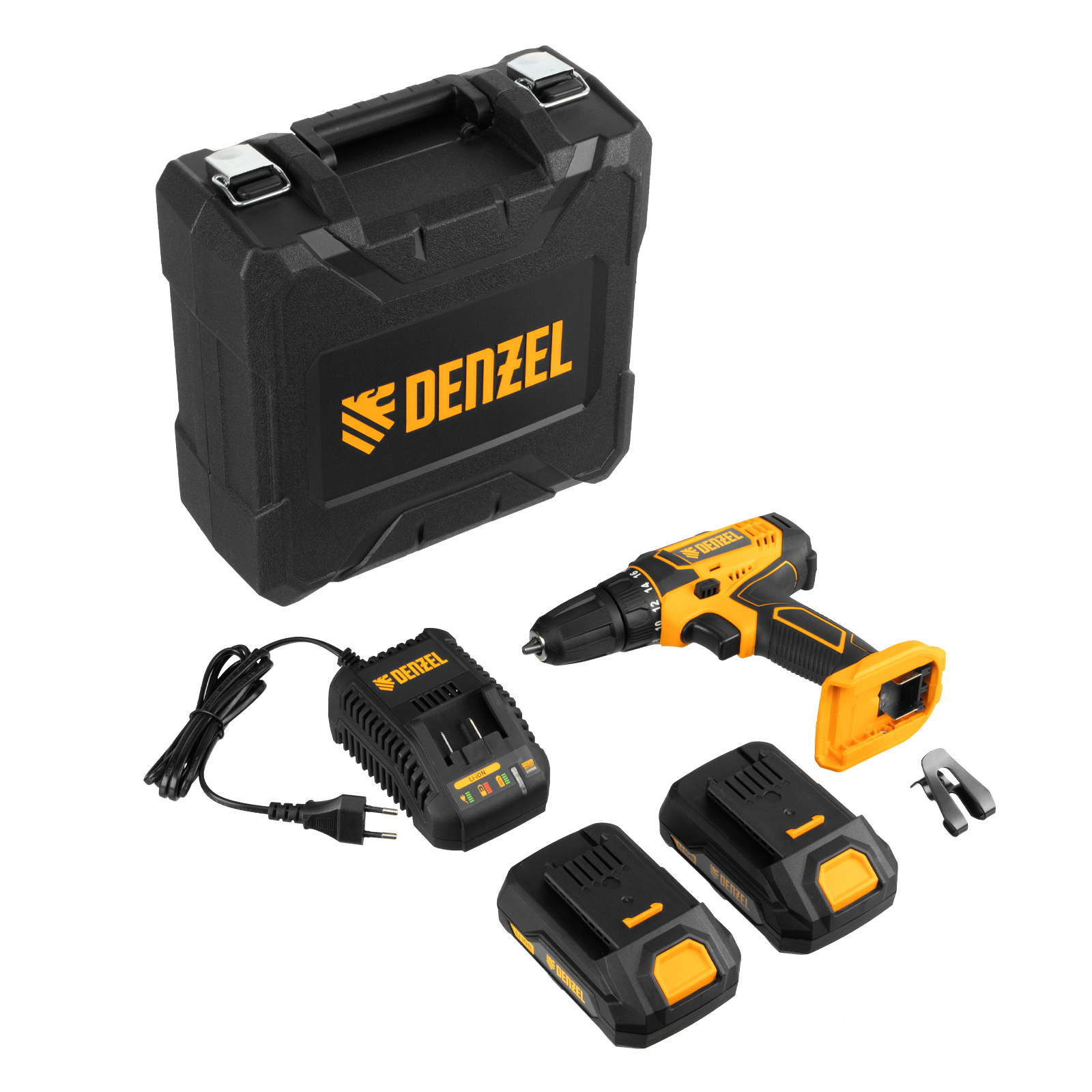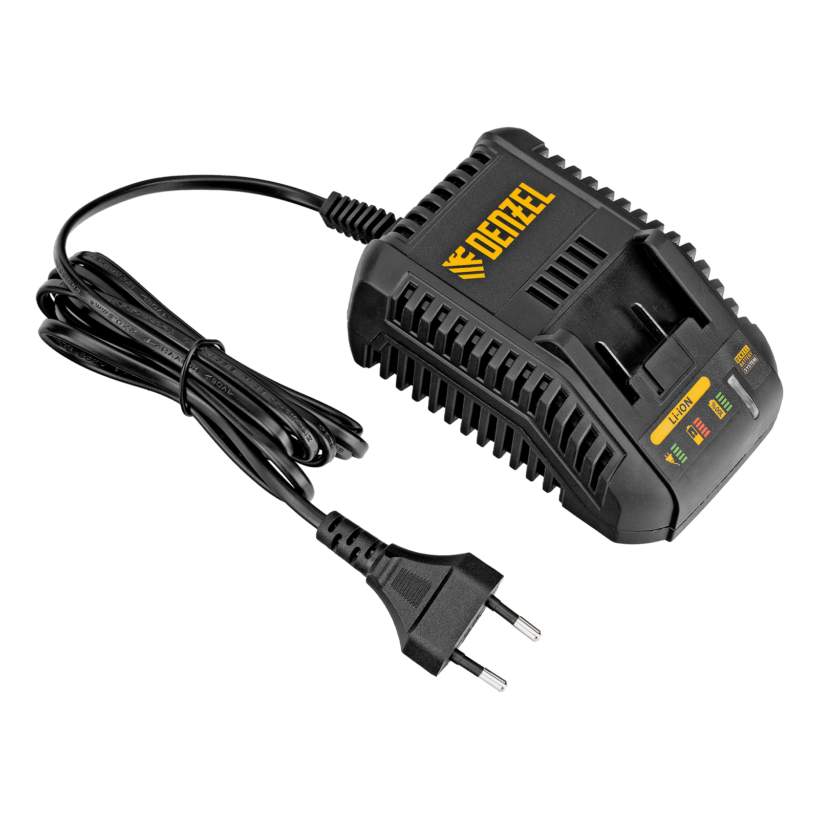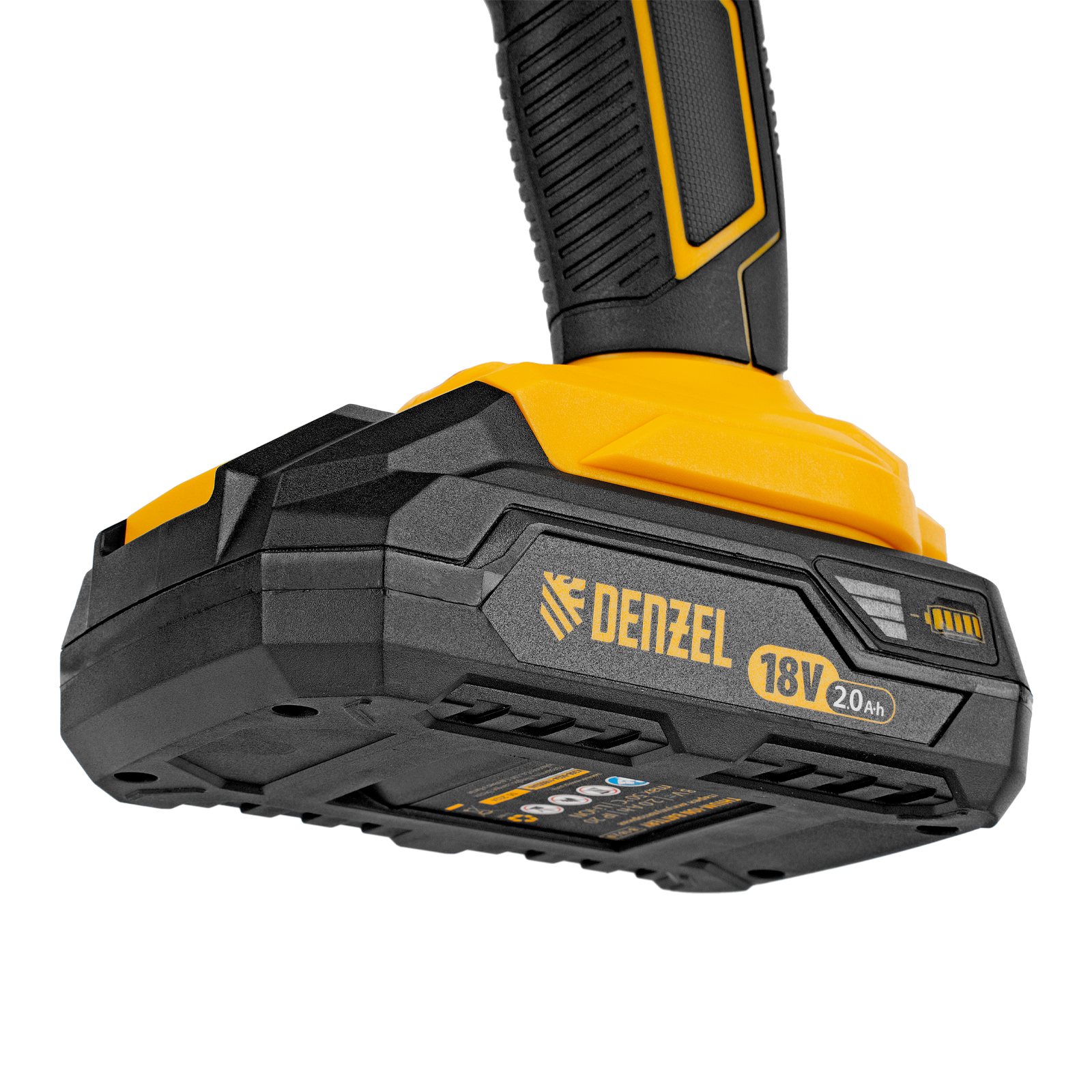 - Универсальность — аккумуляторные батареи Li-ion емкостью 2 Ач совместимы с любым инструментом из модельного ряда единой платформы Denzel Battery System 18V.