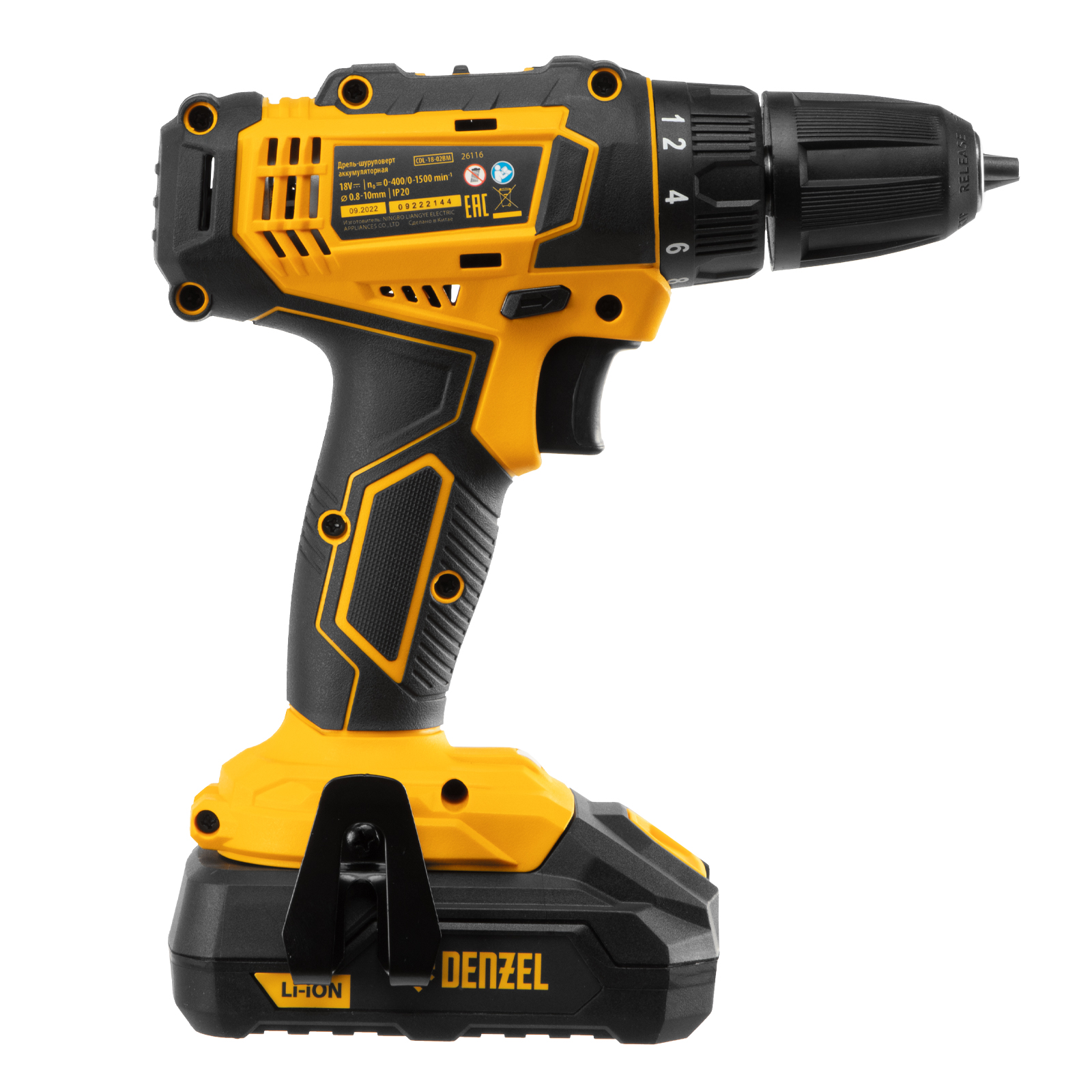Дрель-шуруповерт аккумуляторная CDL-18-02BM, Li-Ion, 18 В, 2 аккумулятор Denzel в Воронеже