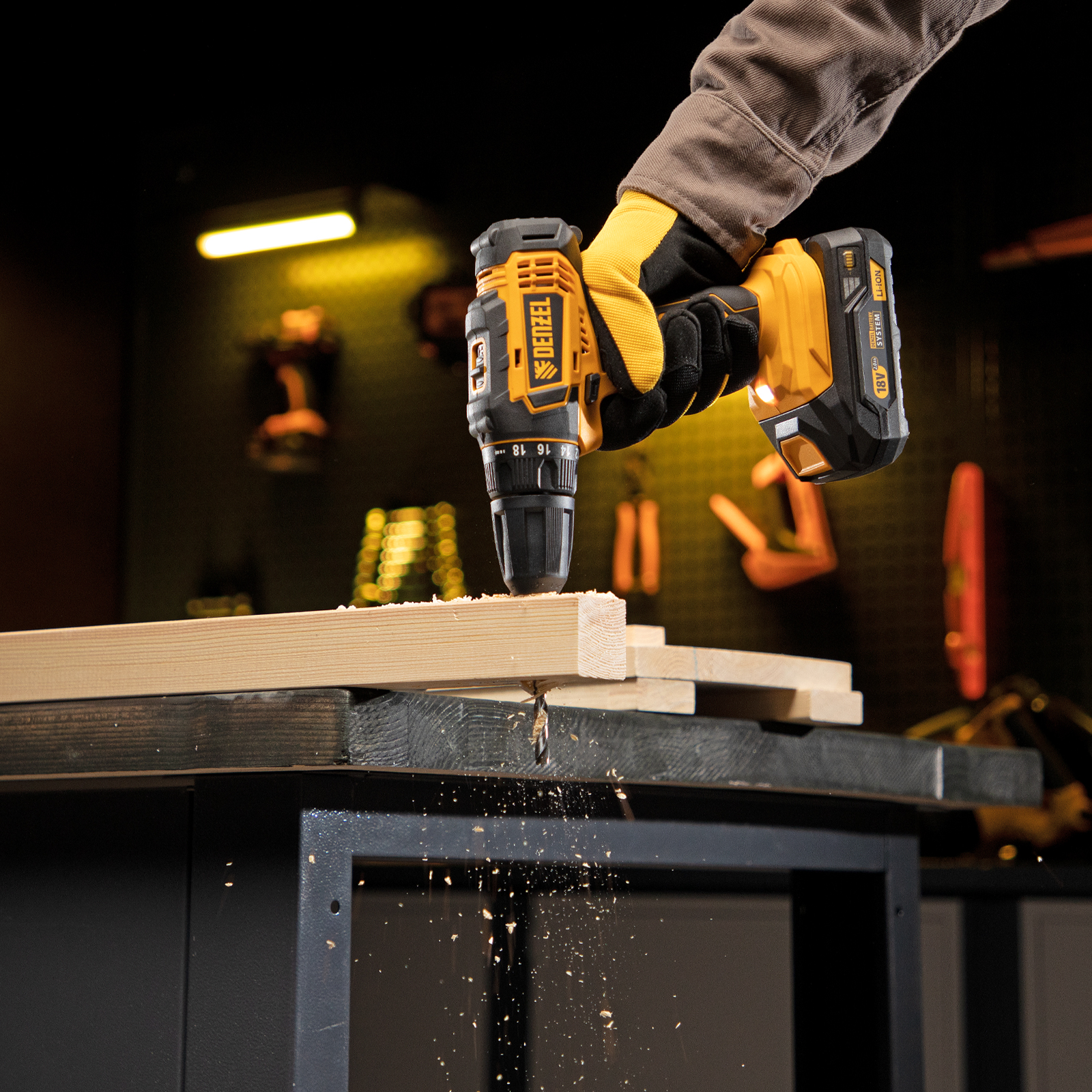 - 18+1 ступень регулировки — дрель-шуруповерт удобно настроить под материалы разной жесткости и получить высококачественный результат.