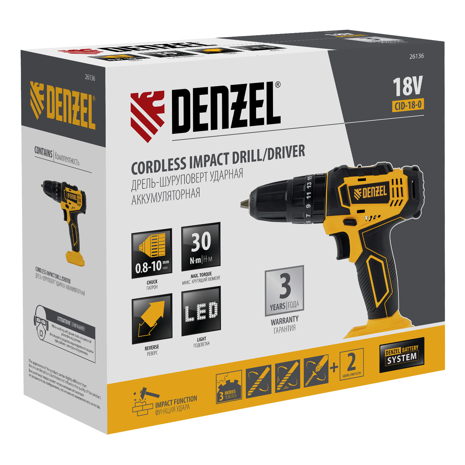 Дрель-шуруповерт аккумуляторная ударная CID-18-0, Li-Ion, 18 В Denzel в Воронеже
