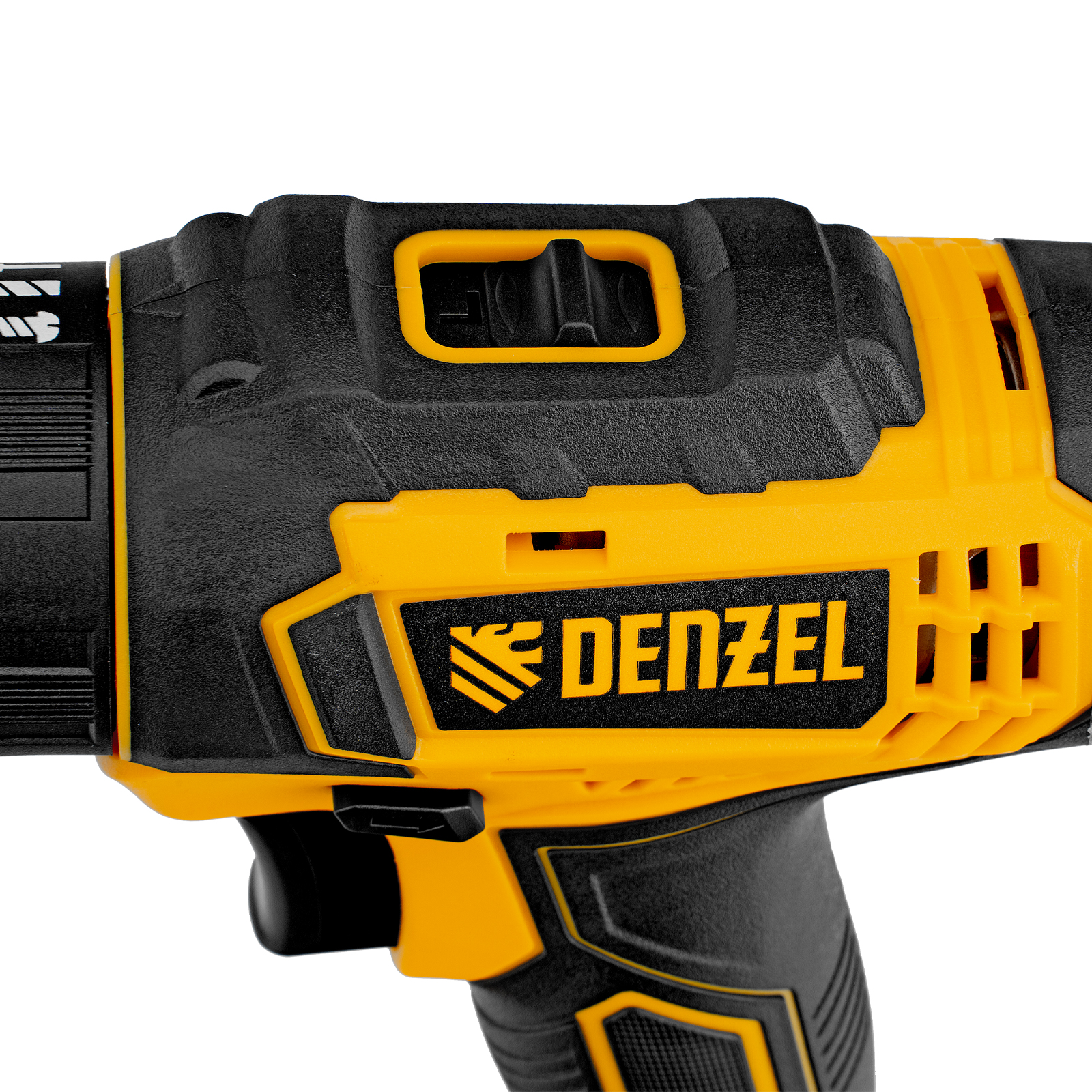 - Универсальность — дрель-шуруповерт совместима с любым Li-Ion аккумулятором и зарядным устройством единой платформы Denzel Battery System 18V.