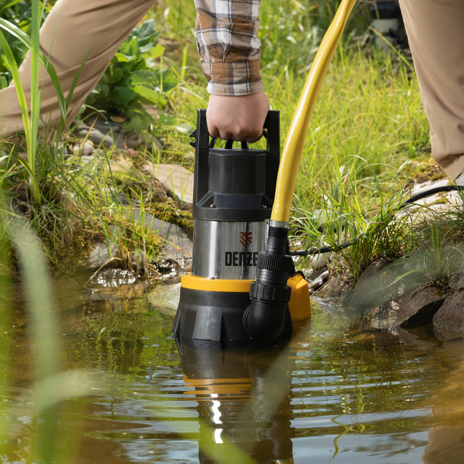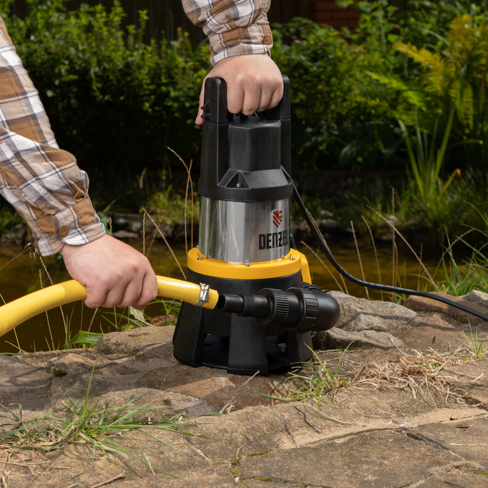 - Комфортное использование — сетевой кабель длиной 10 м удобен для подключения к удаленной розетке, ручка на корпусе облегчает транспортировку и погружение.