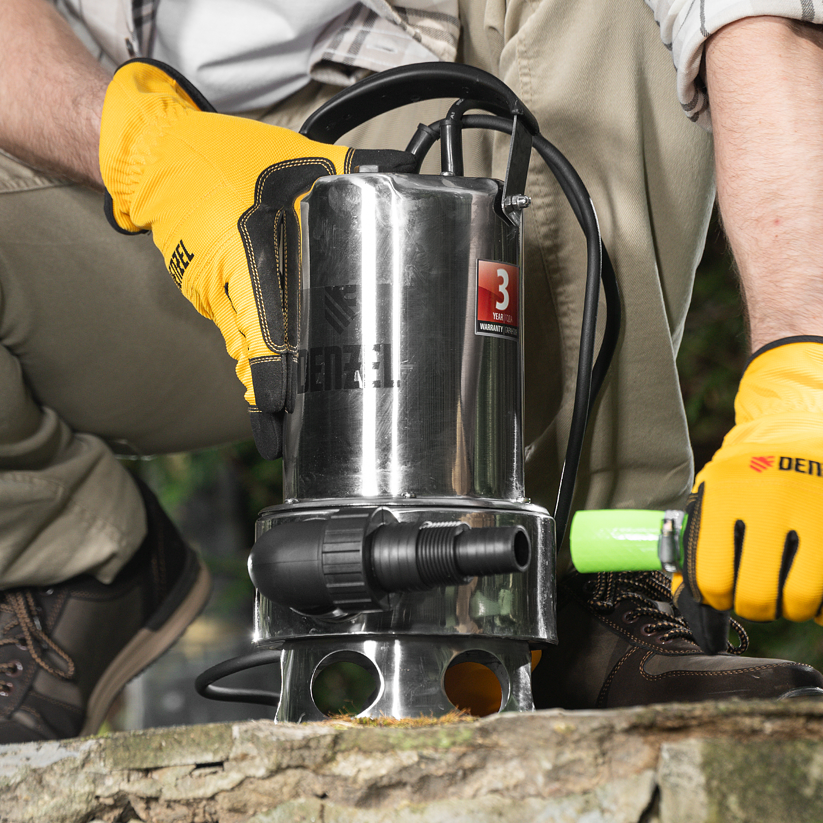 Дренажный насос Denzel DPL800X 97324 мощностью 800 Вт и производительностью 16500 л/ч обеспечивает подъем грязной воды на высоту до 7 м и используется для откачивания сточных вод из затопленных подвальных помещений. Максимальная глубина погружения составляет 7 м. Насос подходит для воды, содержащей твердые и мягкие включения диаметром до 35 мм. Также может использоваться для подачи воды из колодца или открытого водоема с целью орошения сада или огорода.