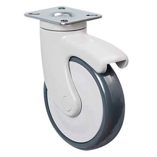 Аппаратное колесо EC01 MBT 125 предназначено для установки на медицинскую мебель, торговые тележки и другое передвижное оборудование, которое используется в условиях повышенных санитарных требований. Обод в модели изготовлен из прочного полипропилена, шинка — из серой резины. Диаметр колеса составляет 125 мм, максимальная нагрузка — 90 кг, температурный режим использования — от -20 до +60 °С .