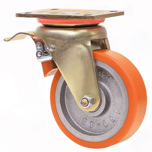 Большегрузное колесо EMES ED01 VBP 200 F имеет поворотный кронштейн с ножным тормозом. Полиуретановая шинка устойчива к истиранию и механическим повреждениям. Максимальная грузоподъемность колесной опоры составляет 900 кг, общая высота — 248 мм. Литой обод из чугуна хорошо распределяет нагрузку. Модель подходит для установки на платформенные тележки, передвижное большегрузное оборудование.