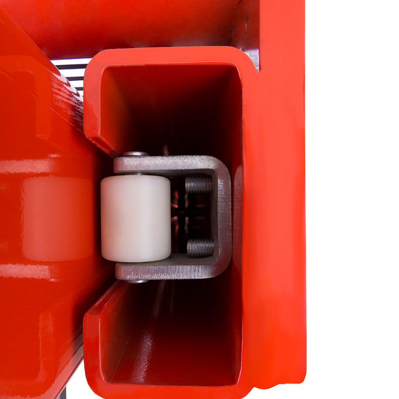 Наличие цепной связи между ручкой управления и поворотным колесом значительно усиляет маневренность. С целью повышения безопасности и комфорта работы сотрудника на штабелере установлены защитные кожухи на колесах, предотвращающие возможность наезда на ноги, решетчатый экран мачты, стояночный тормоз и прорезиненное покрытие на рукоятке управления, исключающее скольжение рук.