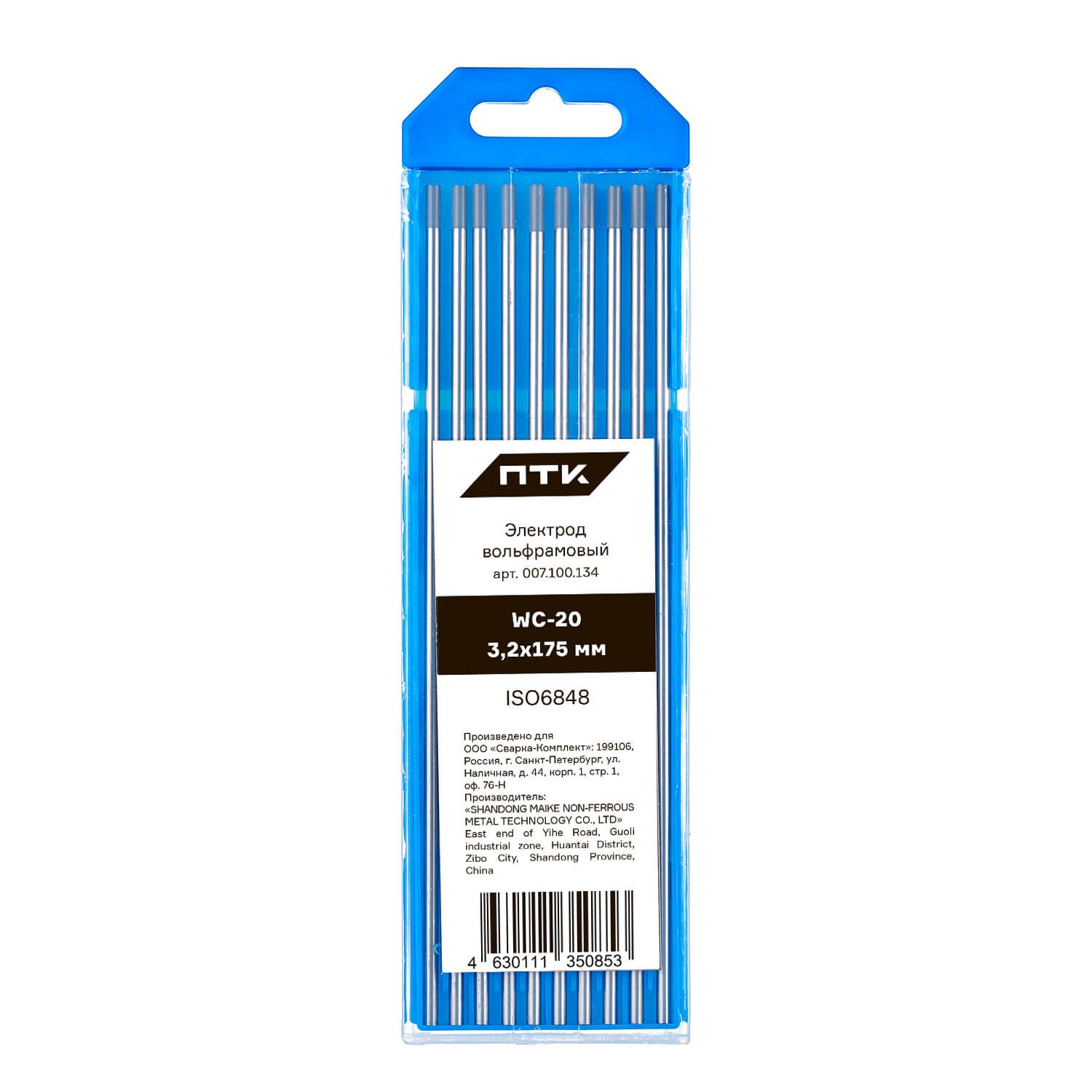 Электрод вольфрамовый ПТК WС-20-175мм Ø 3,2 в Воронеже