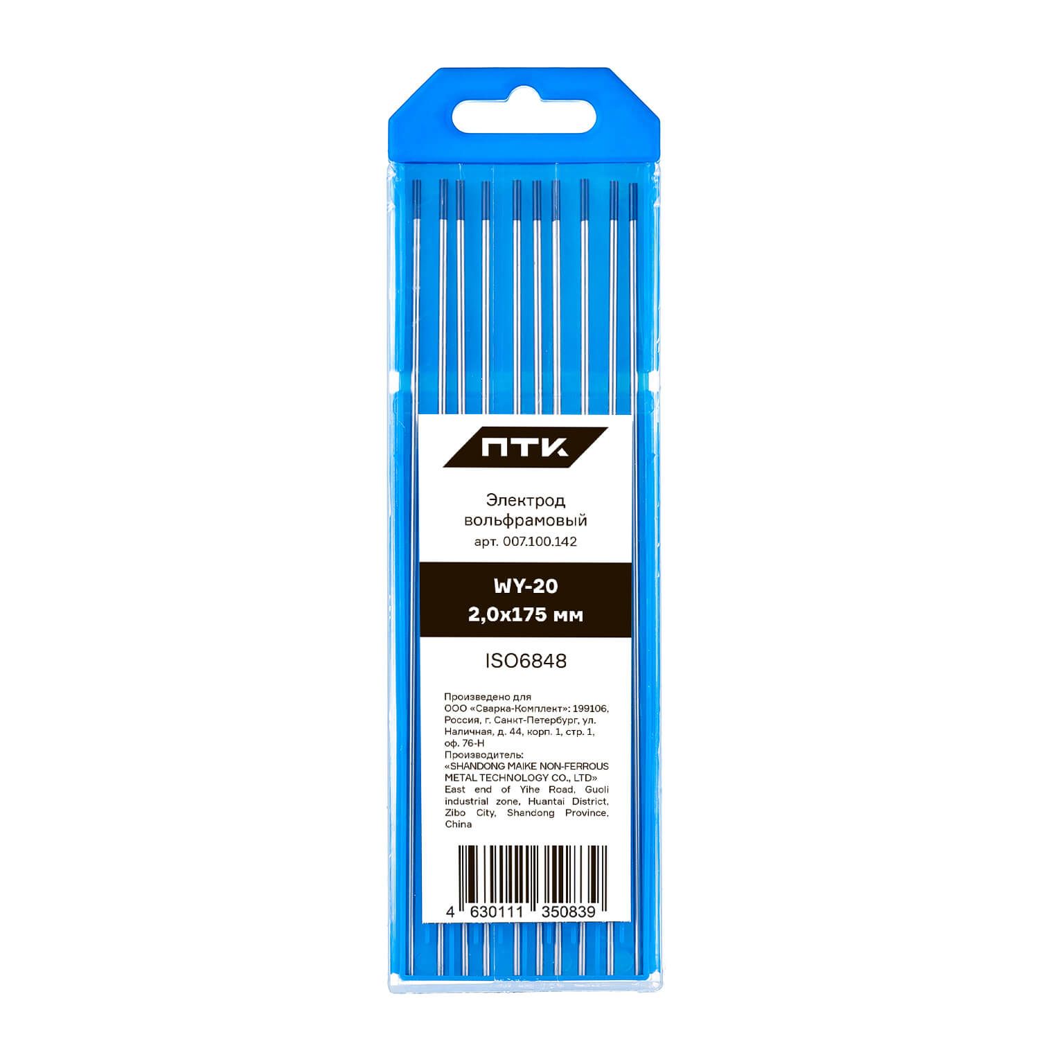 Диаметр электрода 2,0 мм, длина электрода 175 мм. Вольфрам имеет синий цветовой код. Поставляется в пластиковом пенале по 10 штук. В карточке с товаром указана цена за 1 вольфрамовый электрод.
